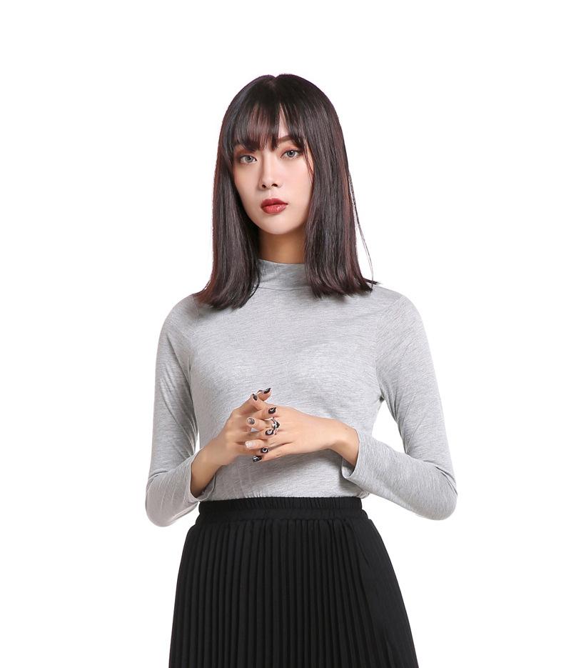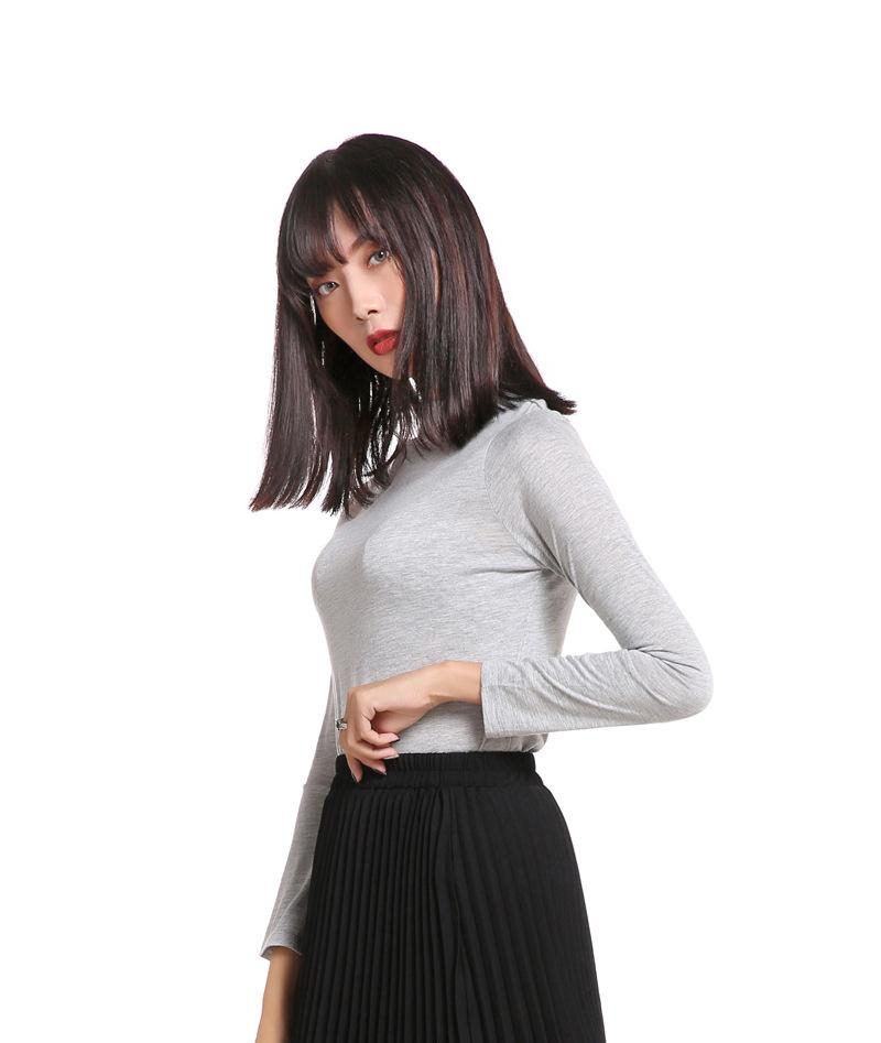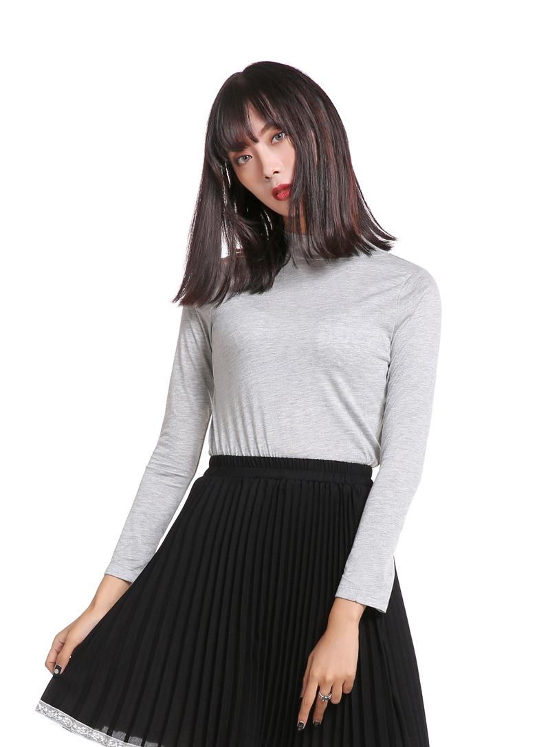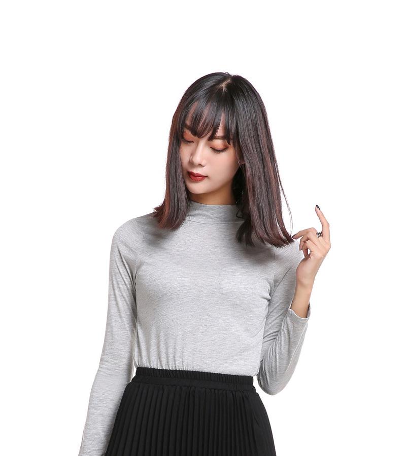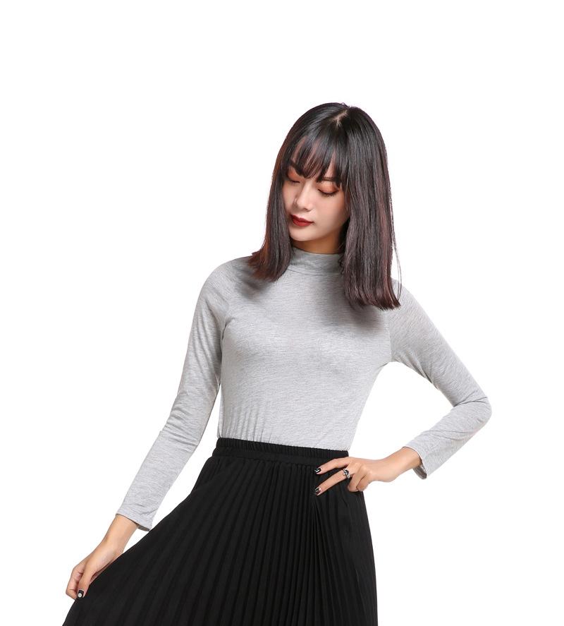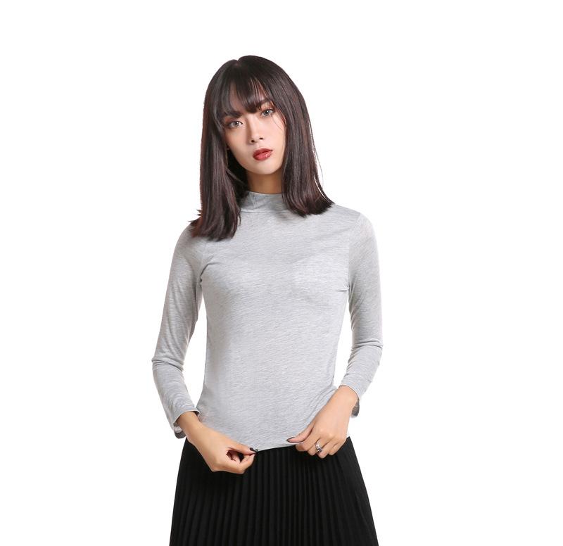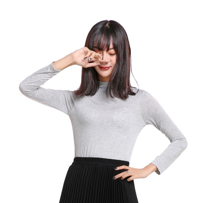 Qinglan Primavera y Otoño Estilo Japonés Algodón Puro Ultrasuave Camiseta Base Manga Larga Cuello Redondo para Mujer Top Térmico para Dama