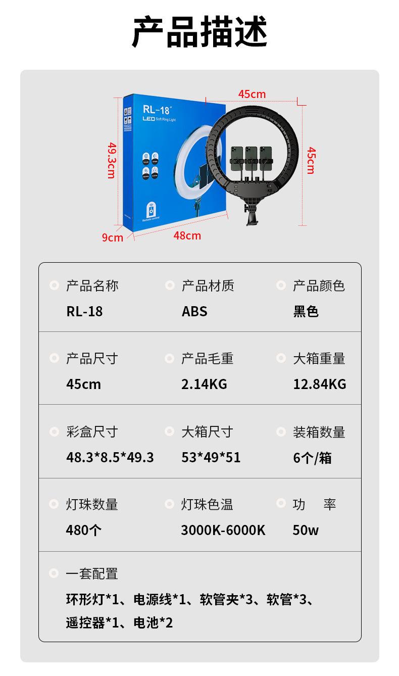 Productos genuinos RL18 pulgadas luz de belleza LED Internet celebridad Live led luz de relleno para fotografía profesional Pat Light Factory venta al por mayor
