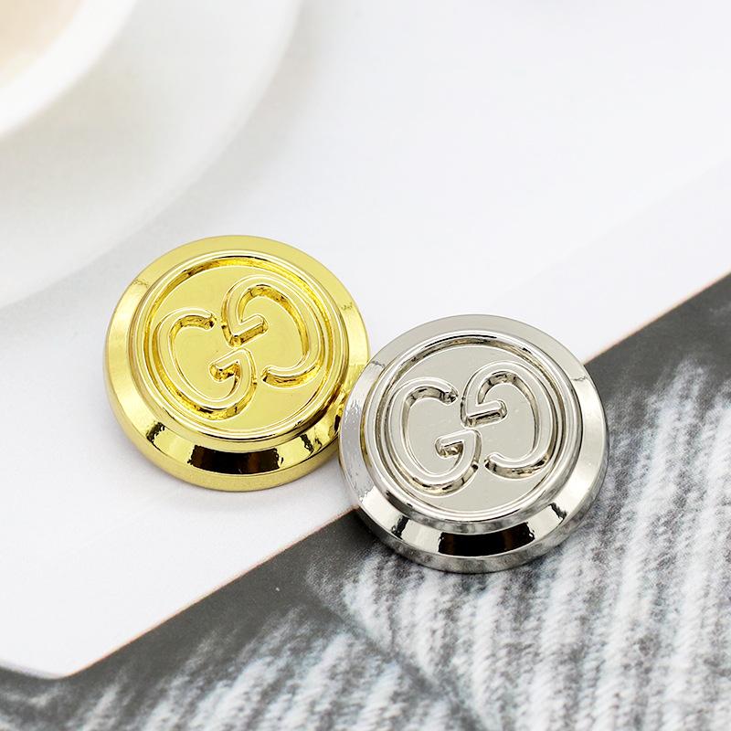 Abrigo retro de metal con botón nuevo cosido a mano palabra venta al por mayor G botones redondos decorativos para hombres y mujeres abrigo de temperamento gabardina