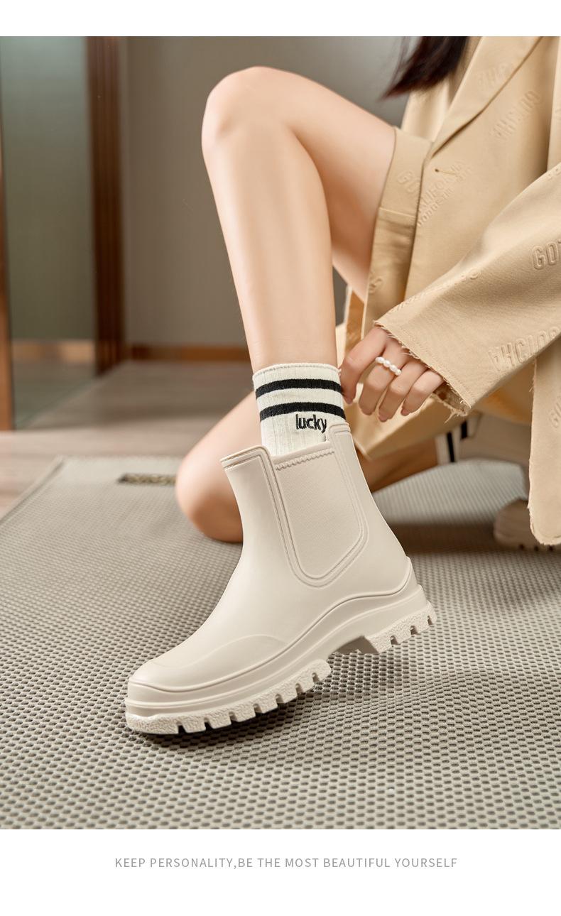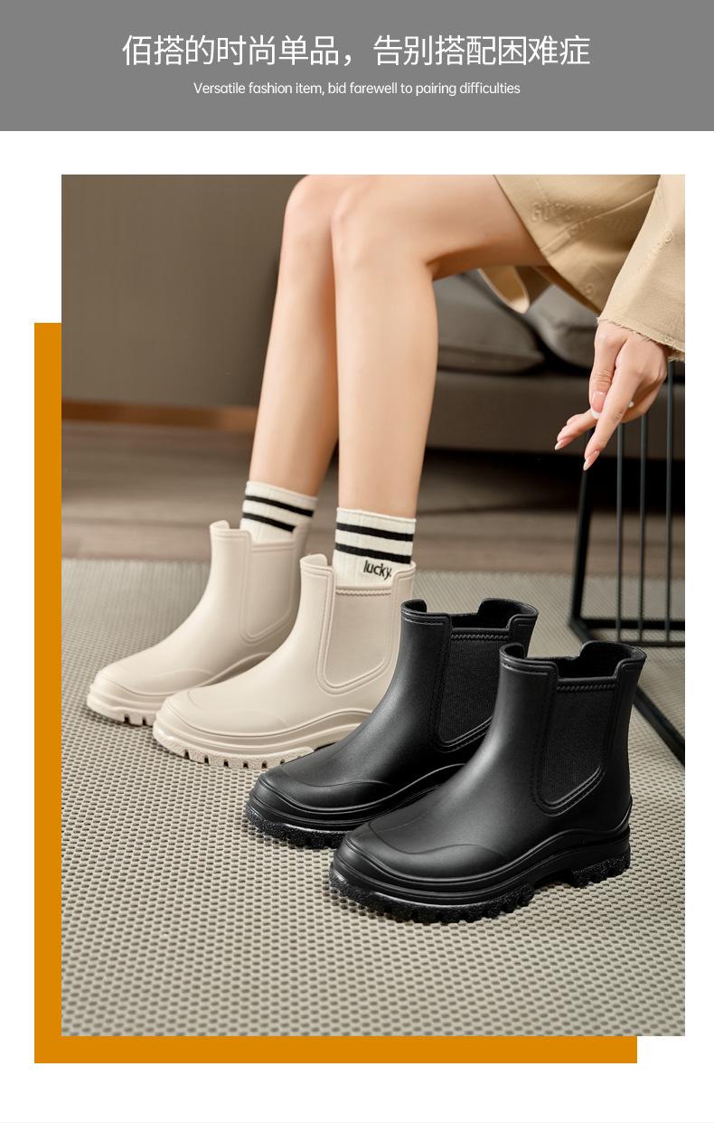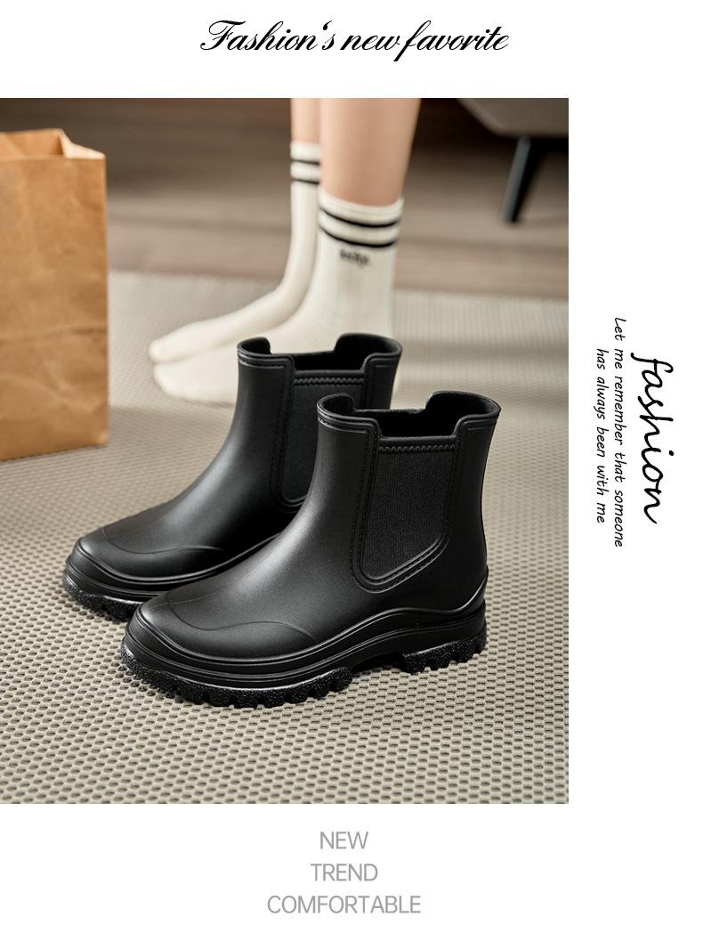 Botas de lluvia de estilo japonés para mujer, botas de lluvia cortas, nuevas botas de lluvia de moda para exteriores, zapatos de goma antideslizantes e impermeables para mujer, zapatos de agua atractivos para mujer