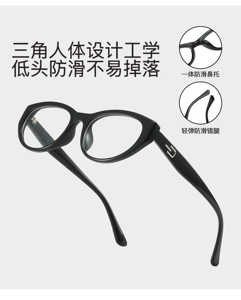 1281 montura de gafas para miopía con forma de ojo de gato, montura marrón, espejo liso, montura óptica retro negra, cara redonda, espejo a juego con luz azul para mujer