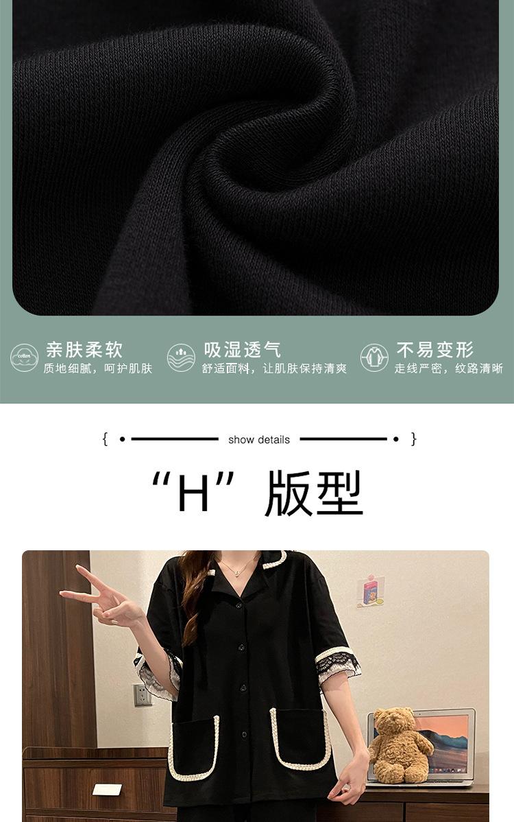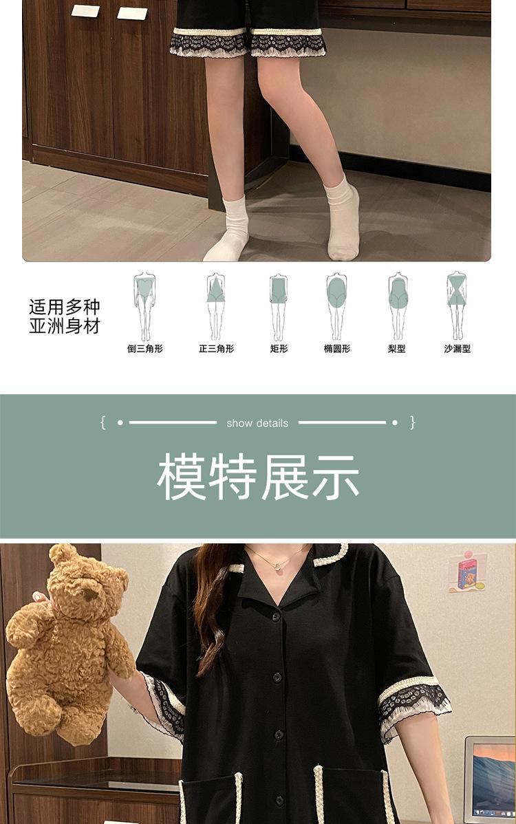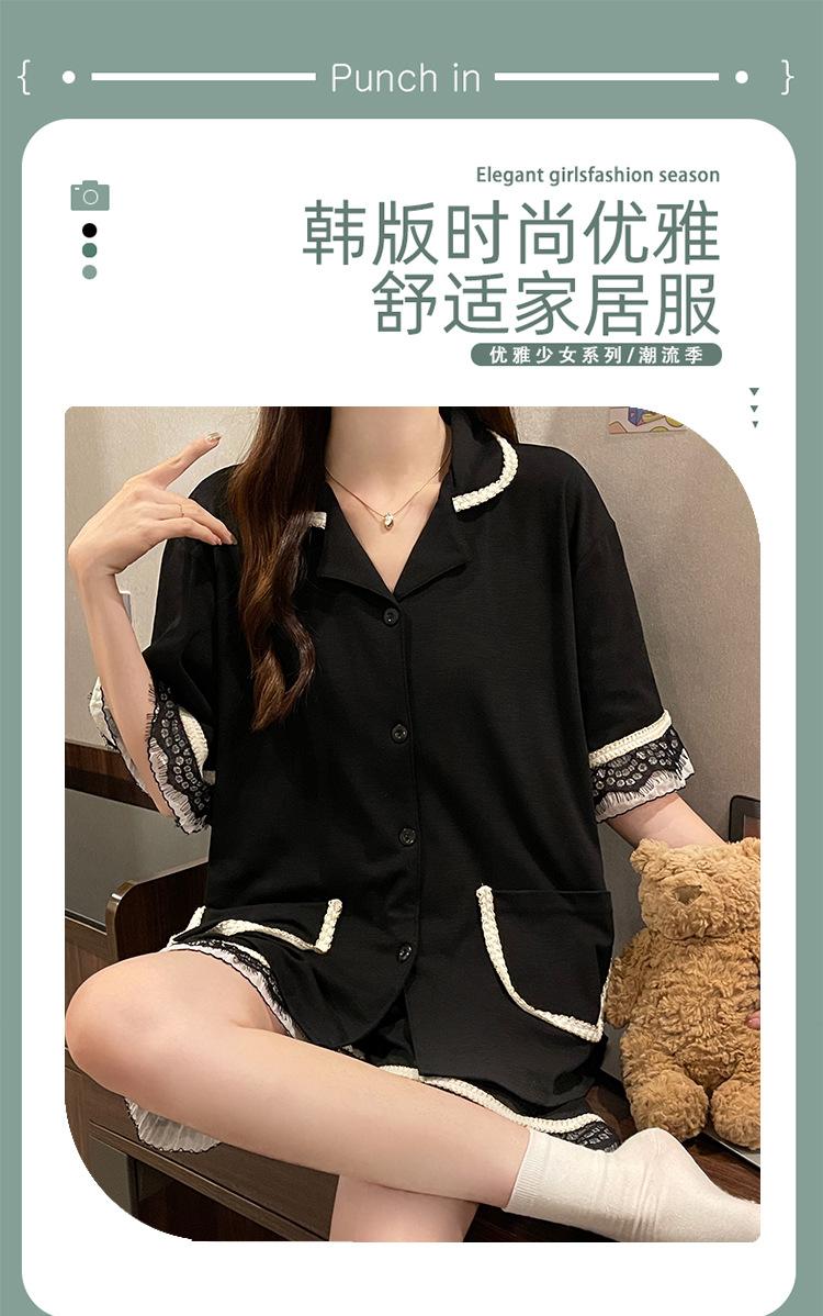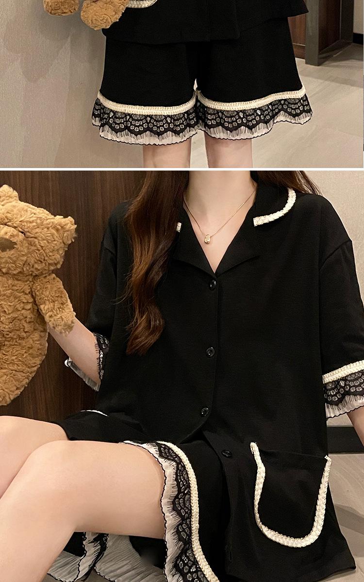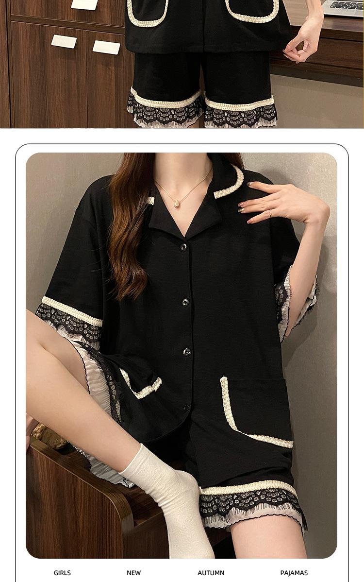Pijama de verano para mujer, de manga corta y shorts, holgado, estilo网红, talla grande, traje de verano, encaje sexy negro, ropa de casa
