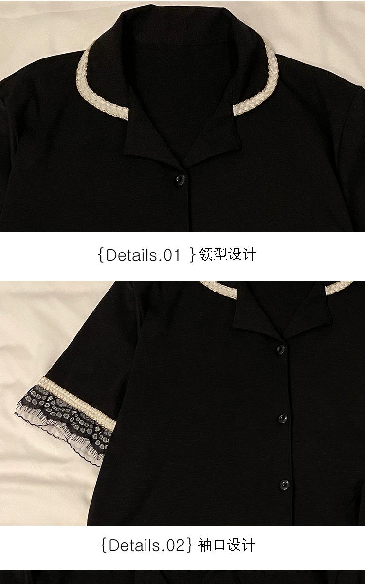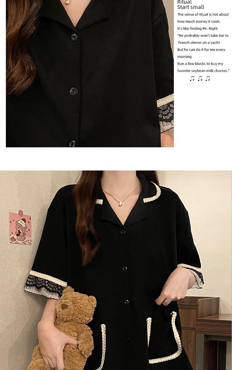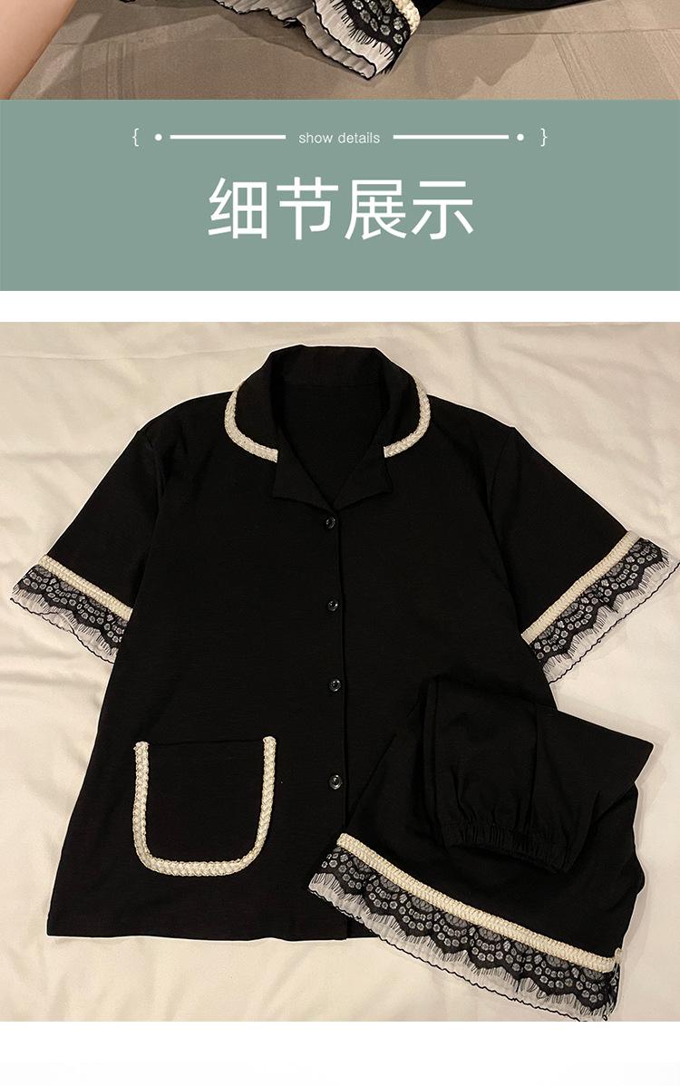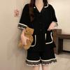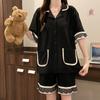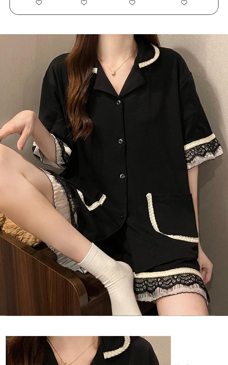 Pijama de verano para mujer, de manga corta y shorts, holgado, estilo网红, talla grande, traje de verano, encaje sexy negro, ropa de casa