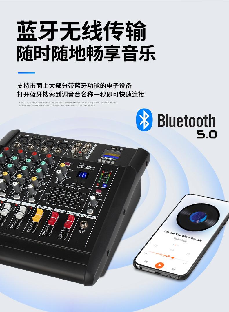 Mezclador Amplificador de Potencia de 4 Canales 500W Mezclador para DJ Equipo de Escenario Mezclador para Computadora Transmisión en Vivo por Teléfono Móvil Grabación Bluetooth