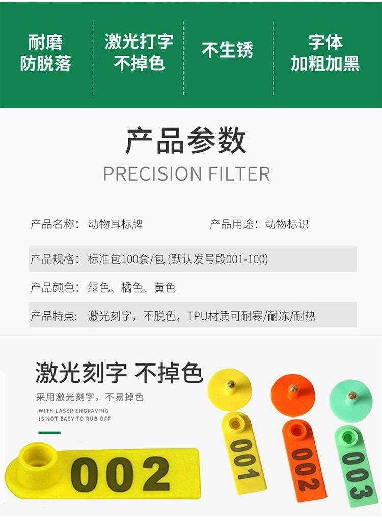 001-100 Orange sheep ear tag + boutique green ear tag pliers +2 ear tag needles