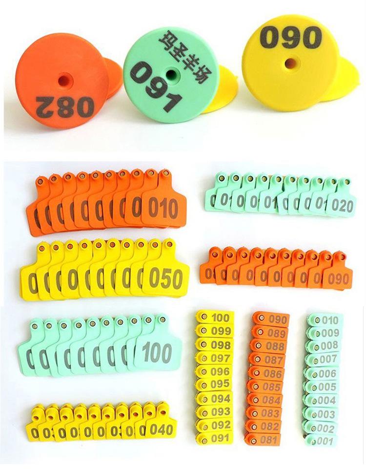 100 sets of yellow sheep ear tag + green ear tag pliers +2 ear tag needles, 100 sets Orange sheep ear tag + gr...