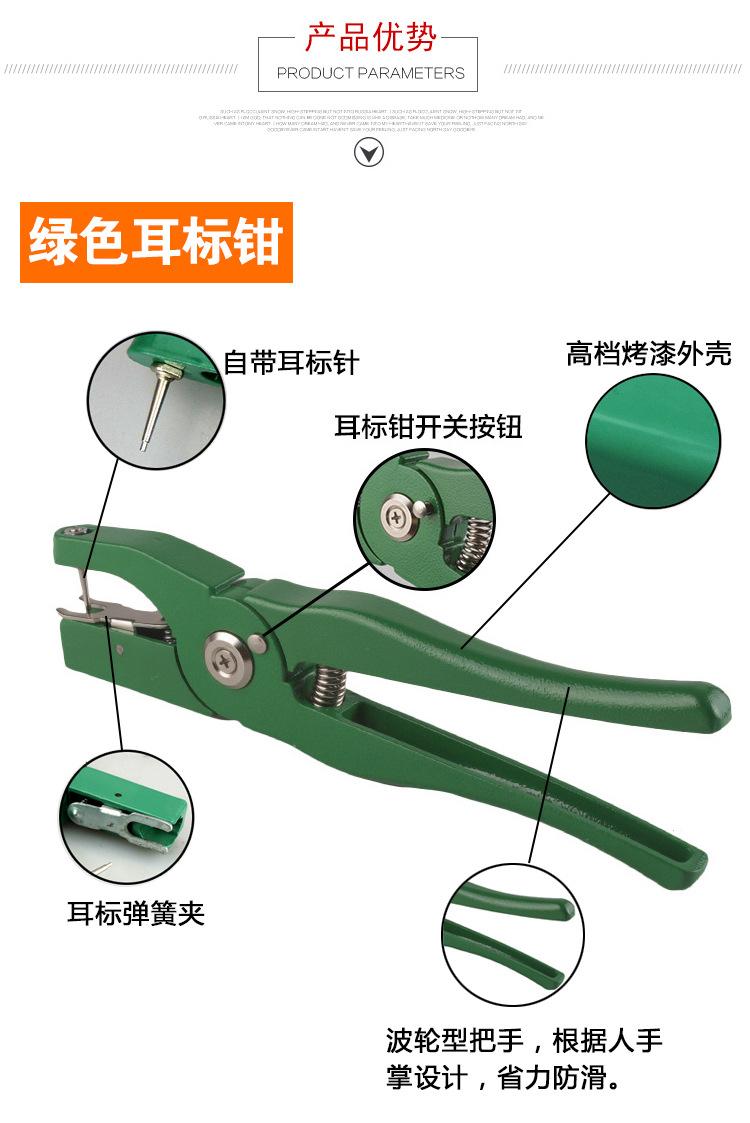 001-100 green sheep ear tag + boutique green ear tag pliers +2 ear tag needles