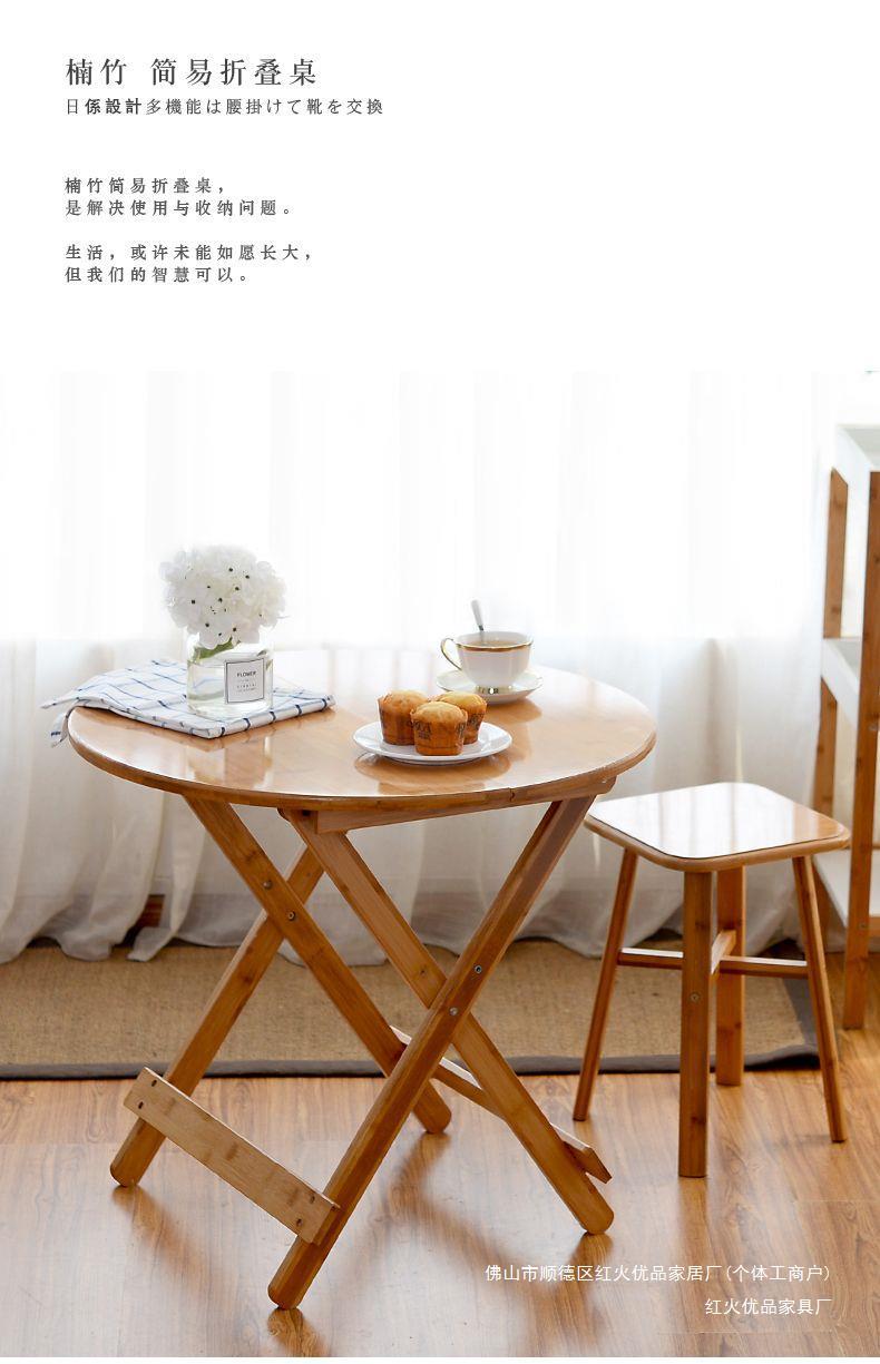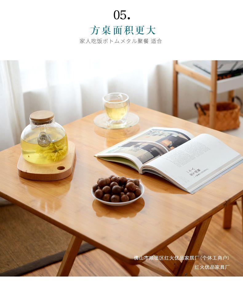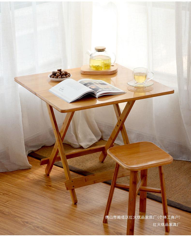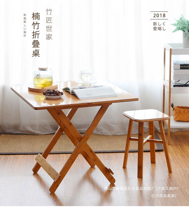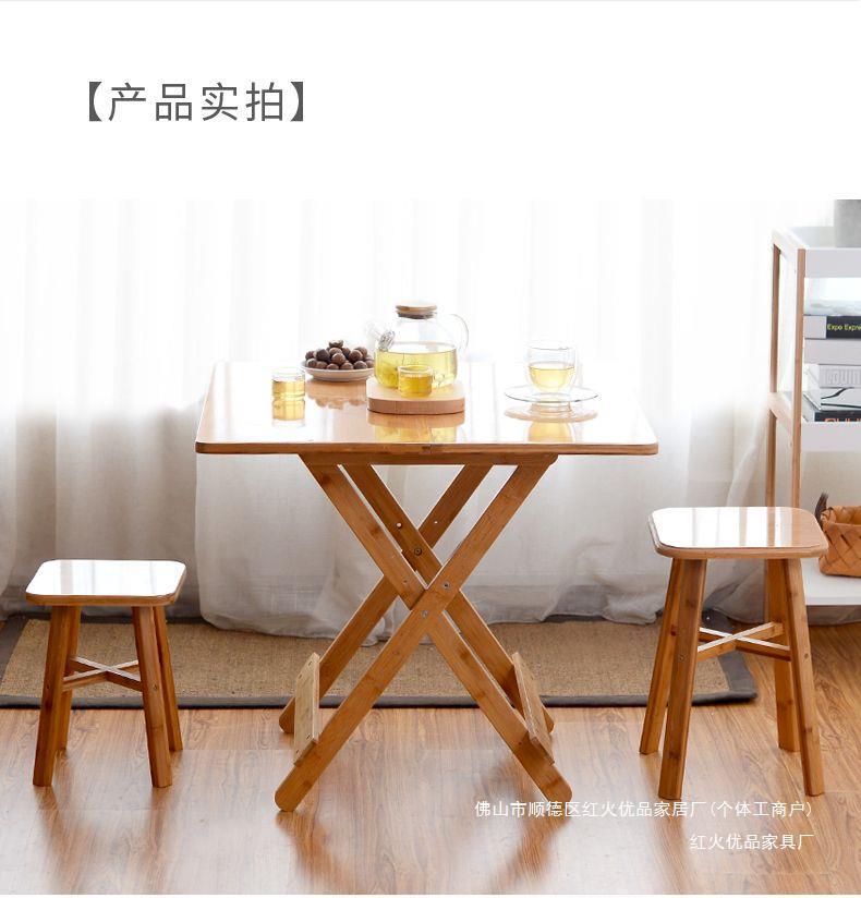 Mesa plegable de bambú, mesa pequeña portátil, mesa de comedor plegable sencilla, mesa de comedor para apartamentos pequeños, mesa cuadrada de madera maciza para el hogar