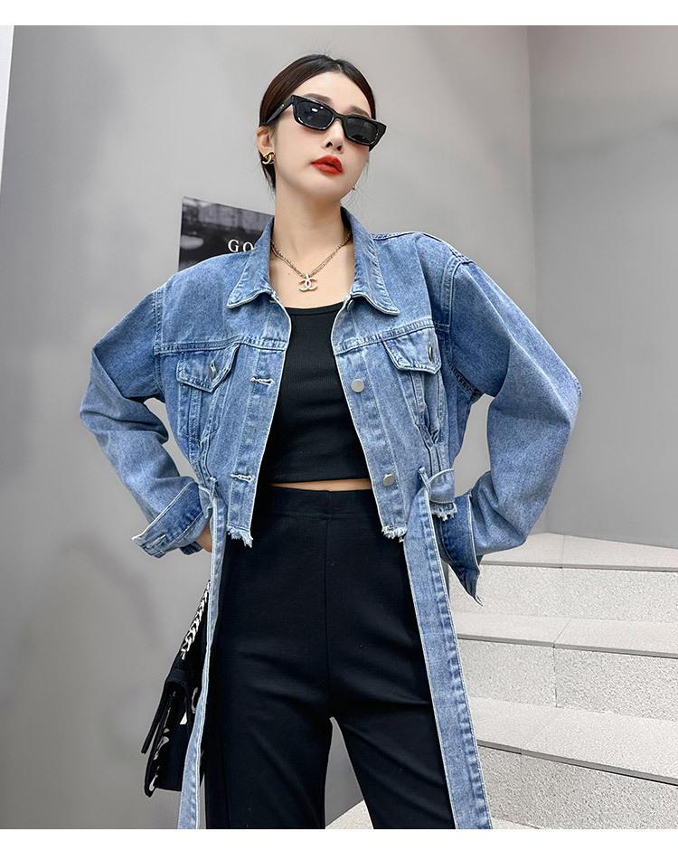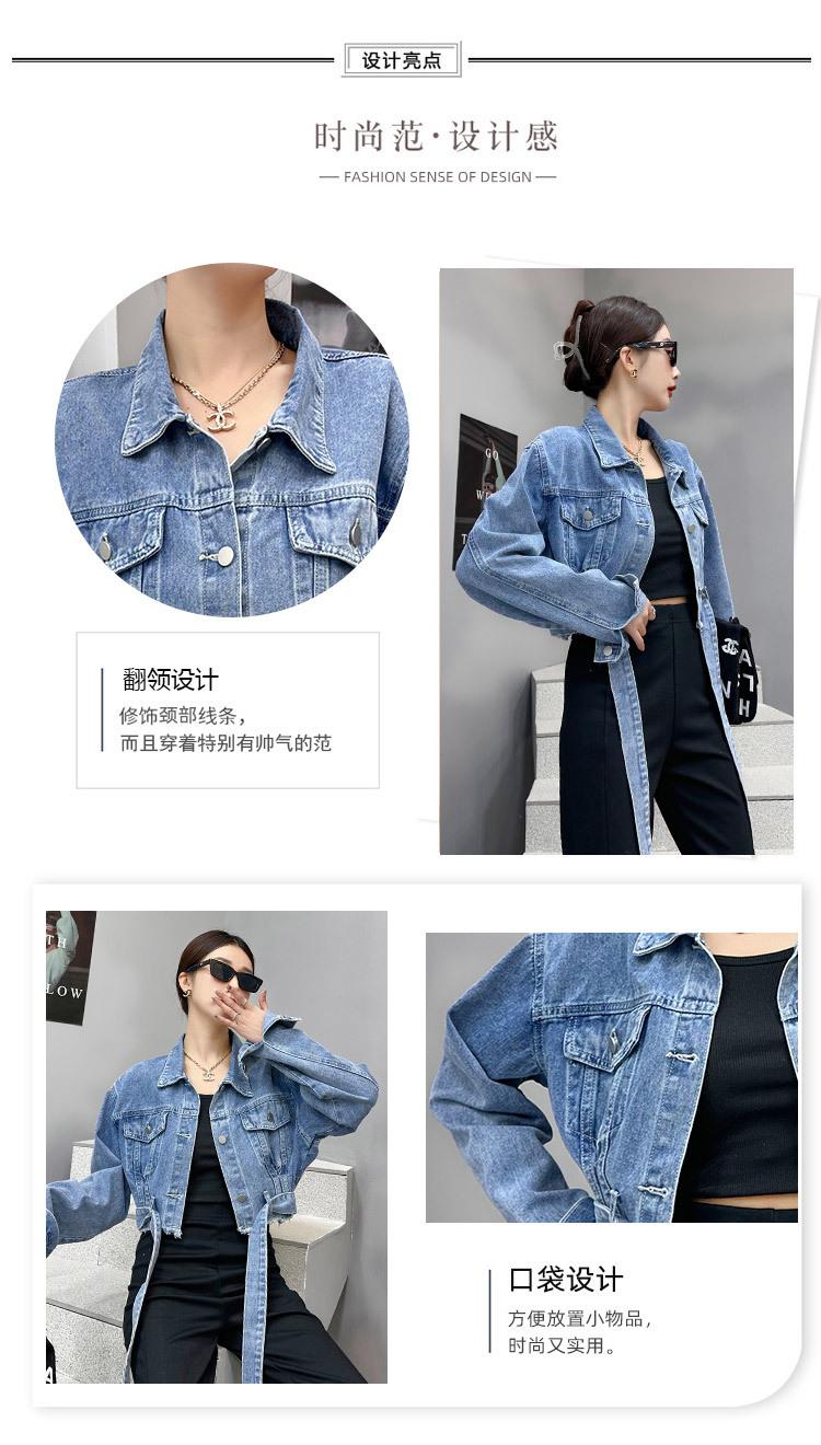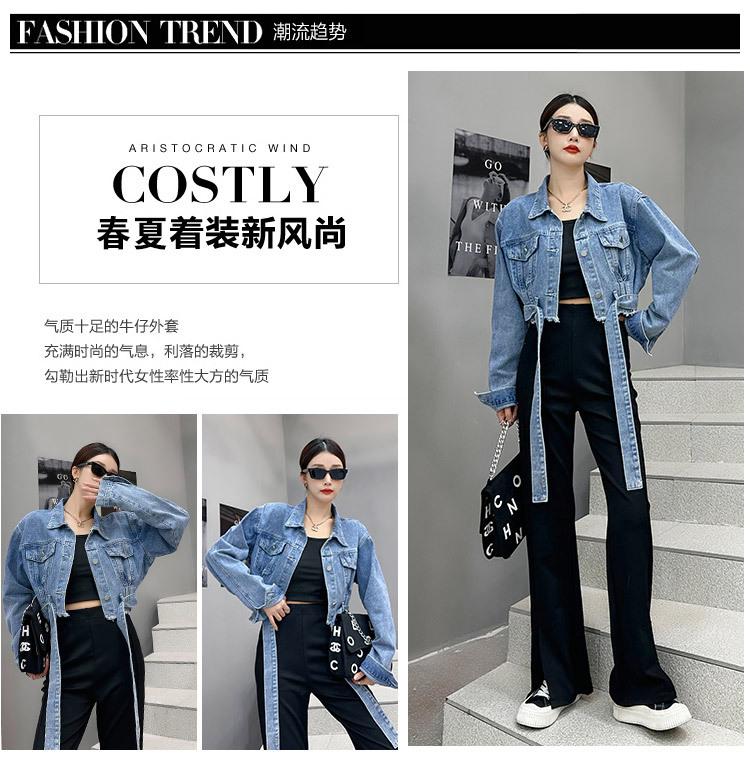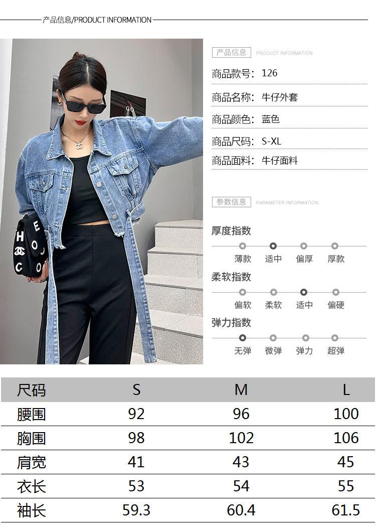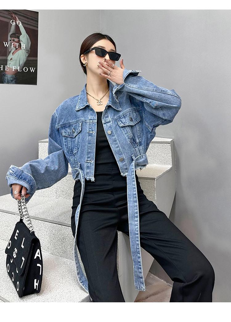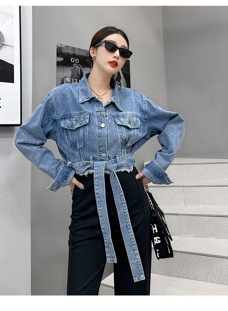 Chaqueta vaquera de estilo europeo para mujer, primavera 2023, nueva chaqueta de estilo coreano a la moda, ajustada, con cordones y corte entallado.