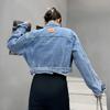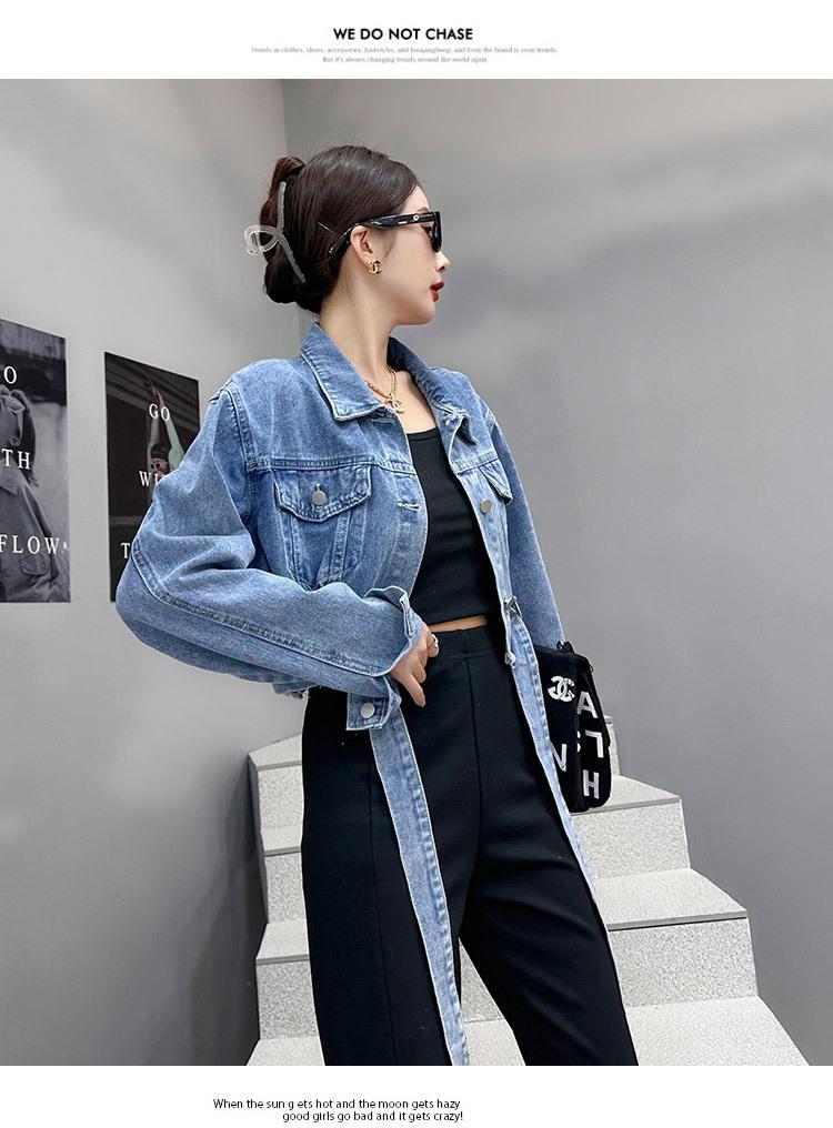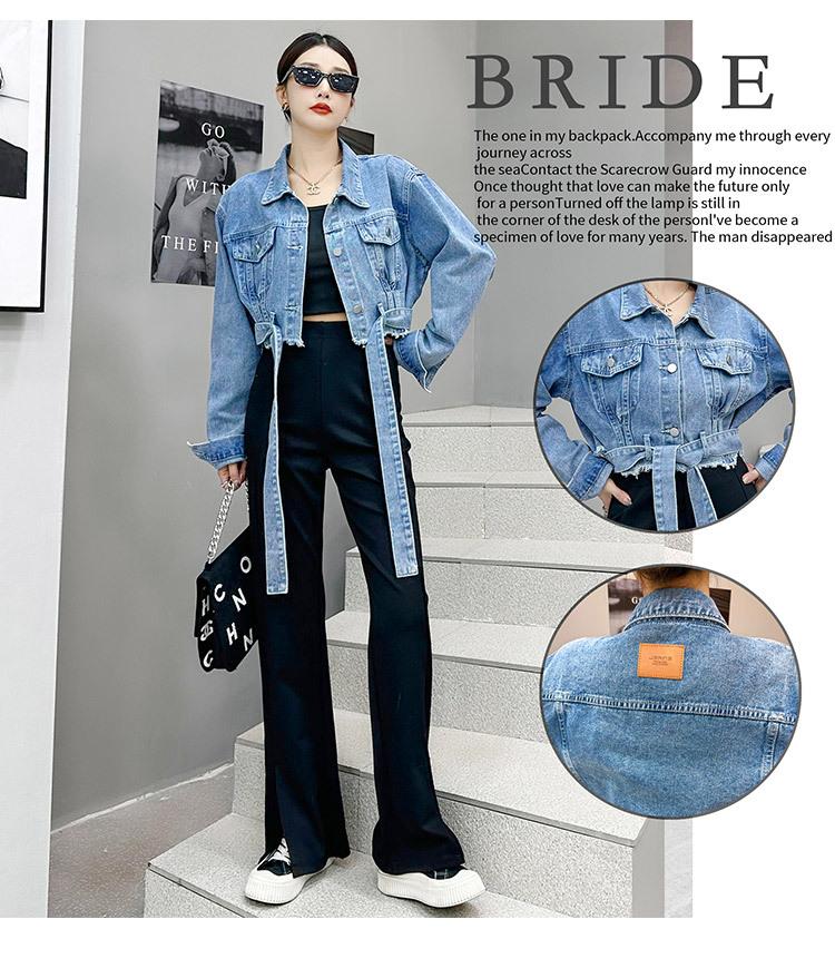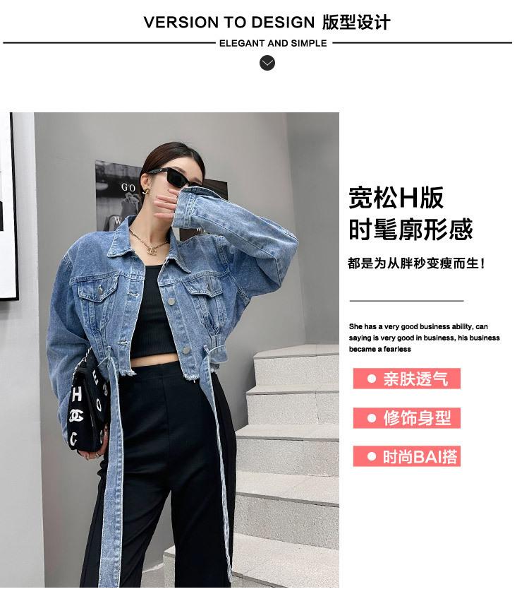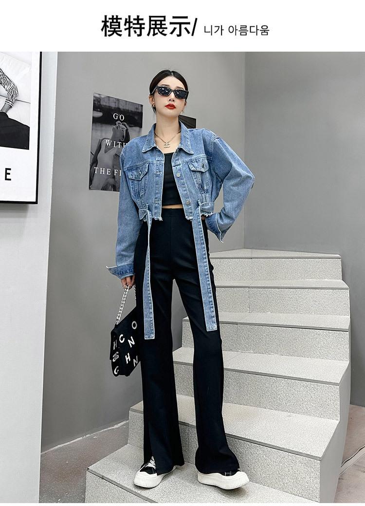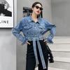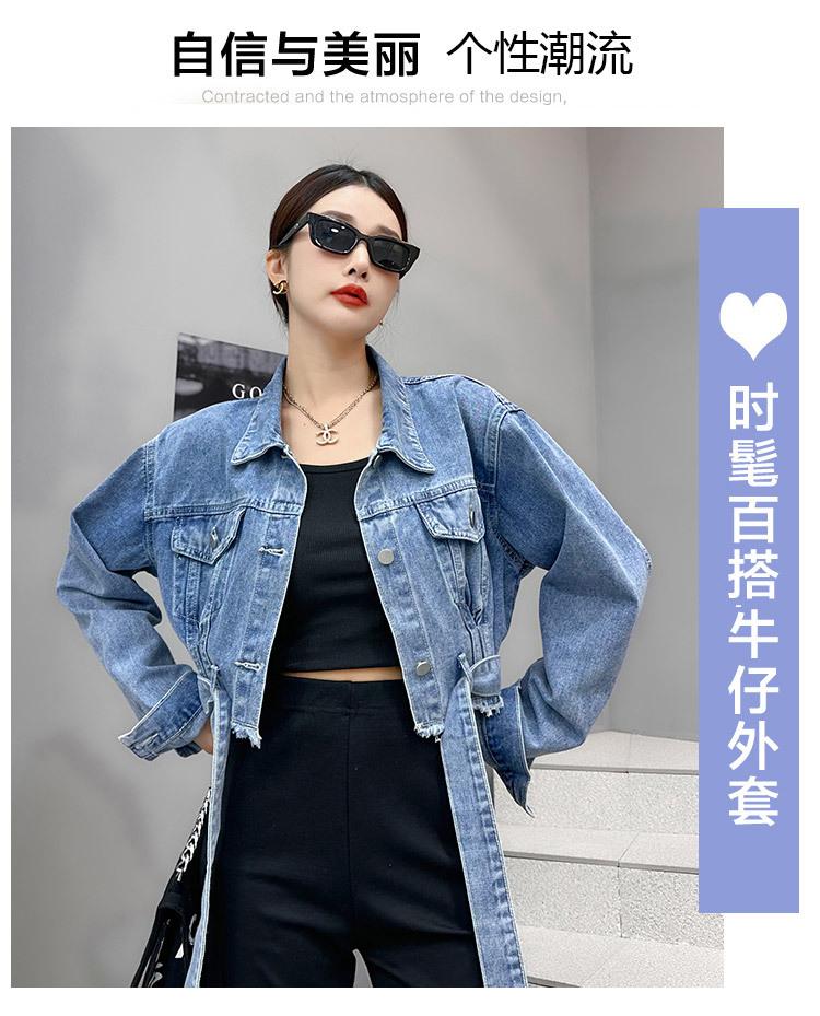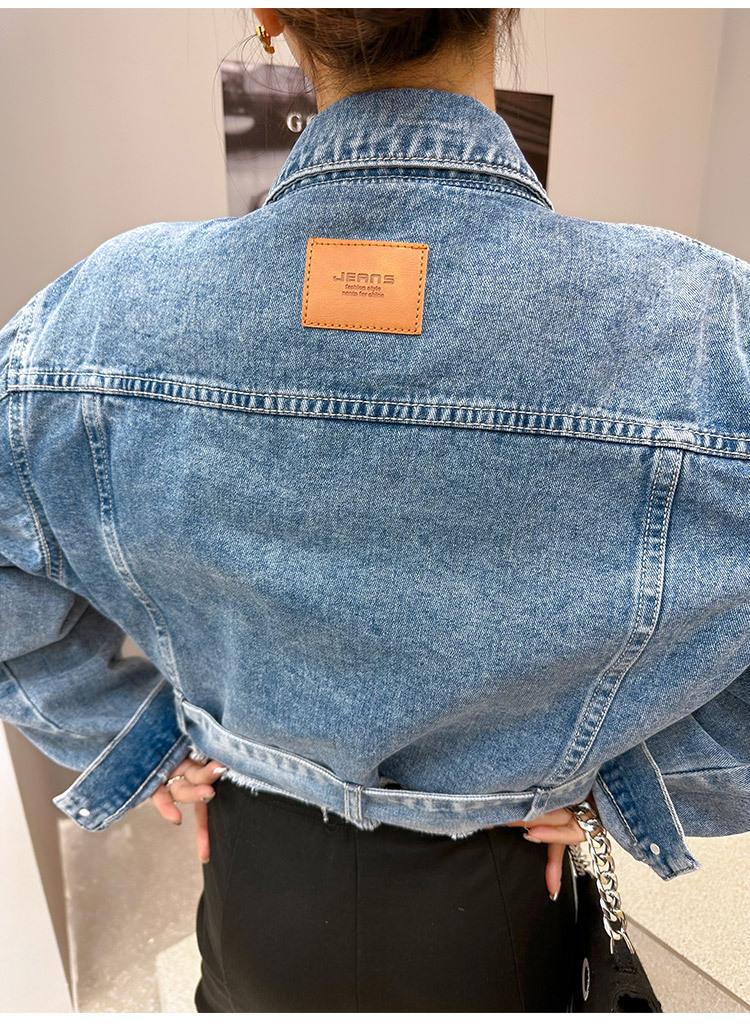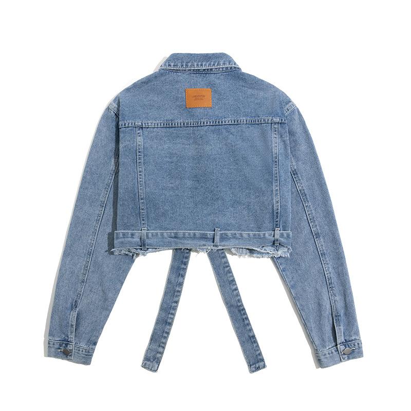 Chaqueta vaquera de estilo europeo para mujer, primavera 2023, nueva chaqueta de estilo coreano a la moda, ajustada, con cordones y corte entallado.