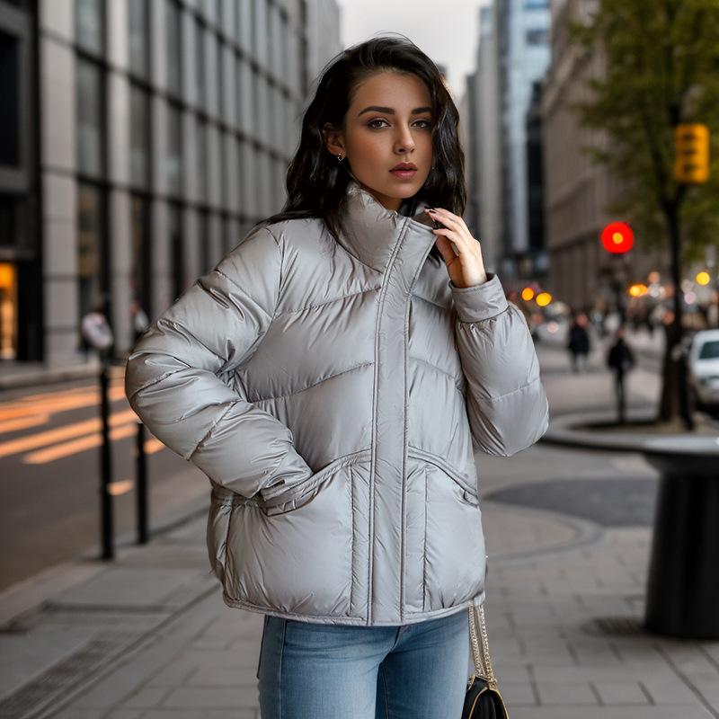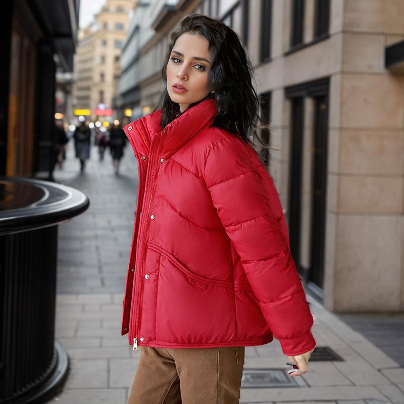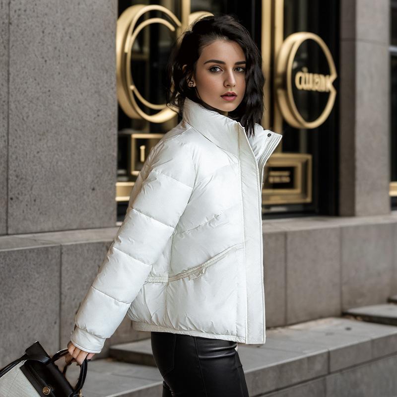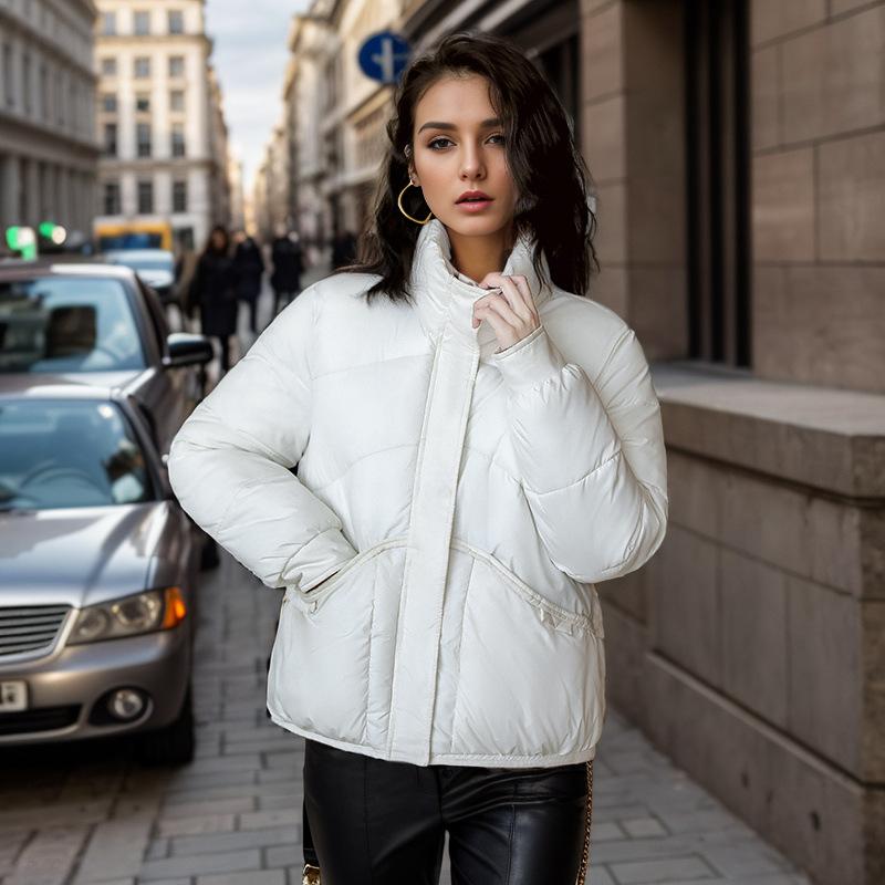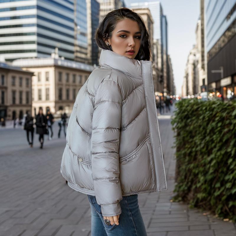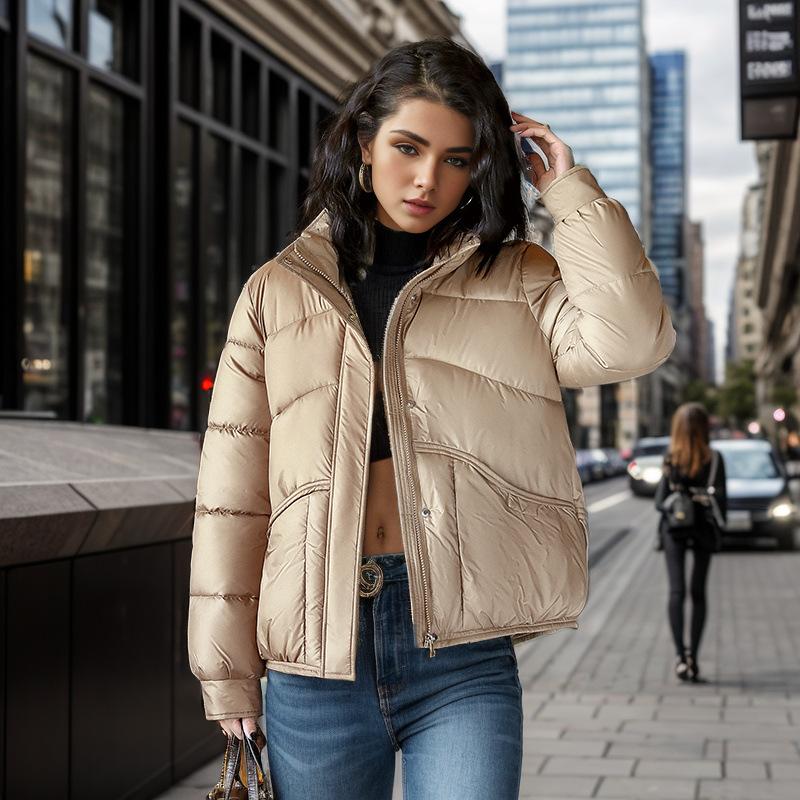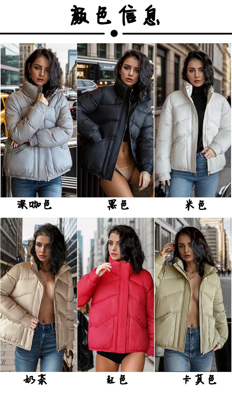 Chaqueta corta ligera de algodón acolchado de alta calidad para mujer, nueva chaqueta de invierno 2023 con cuello alto, informal, holgada, de talla pequeña y acolchada de algodón.