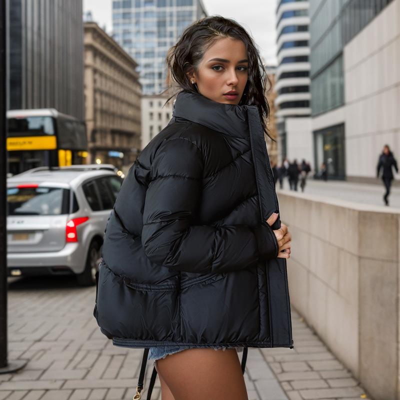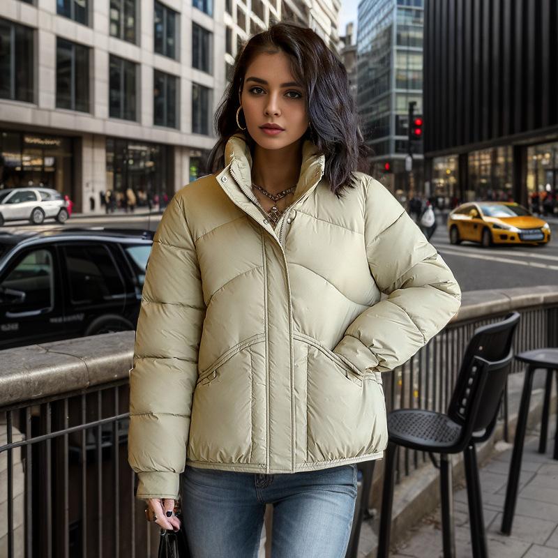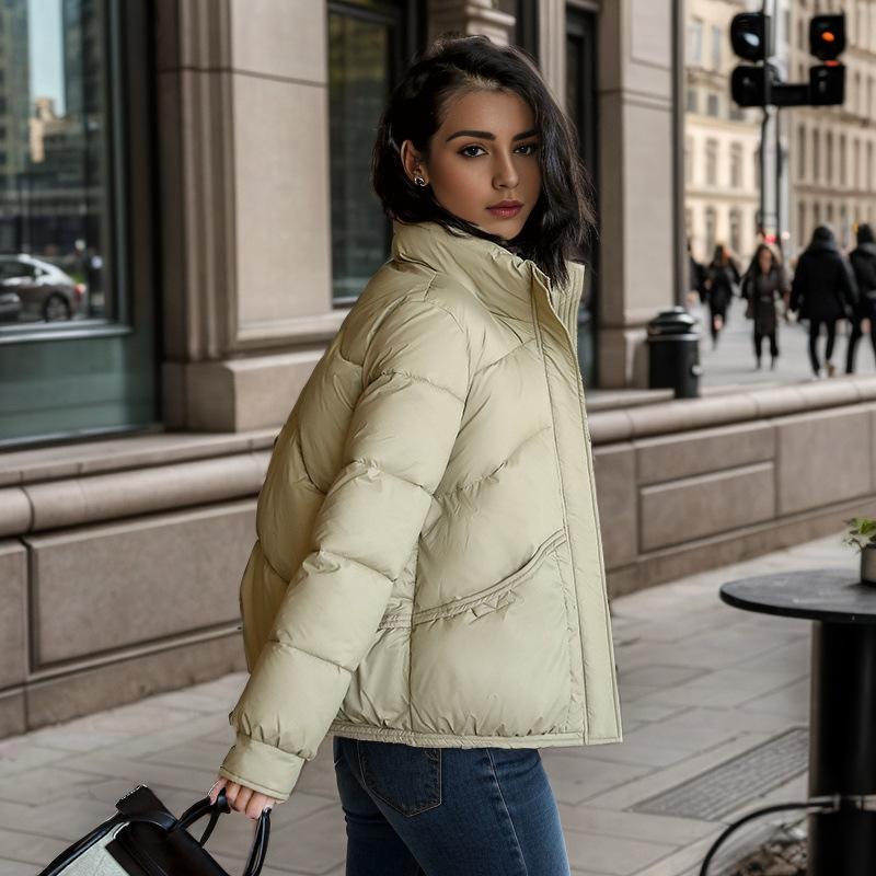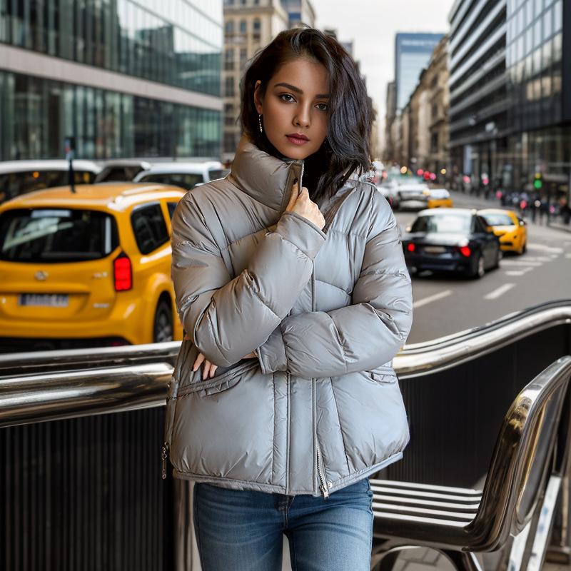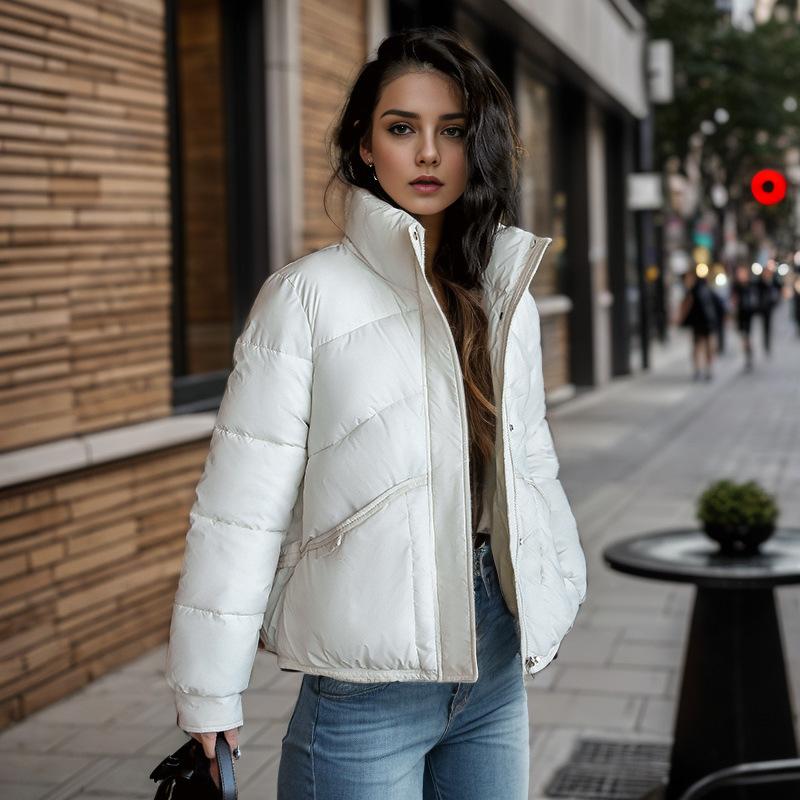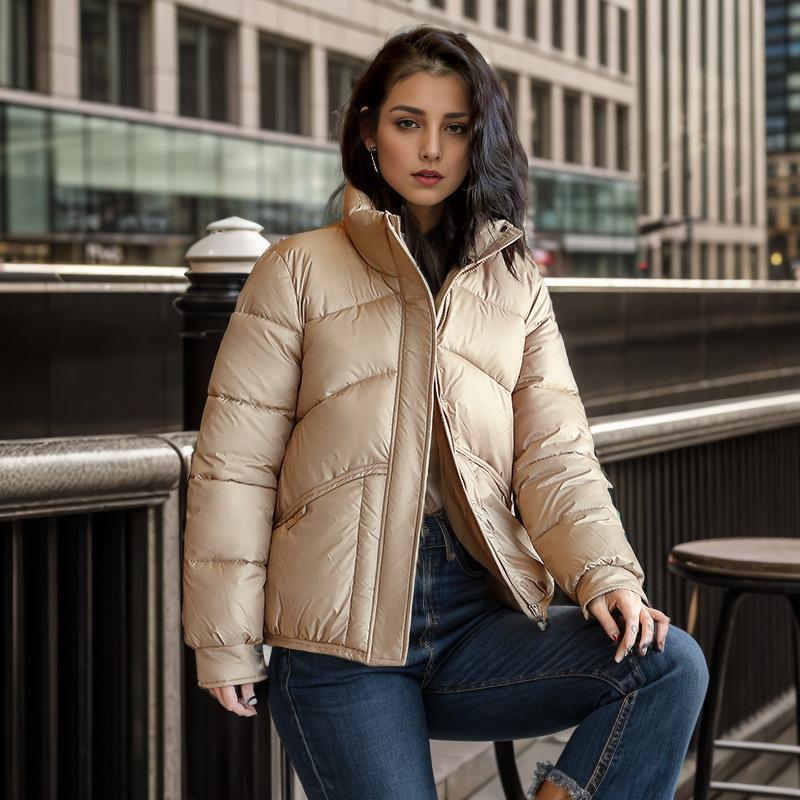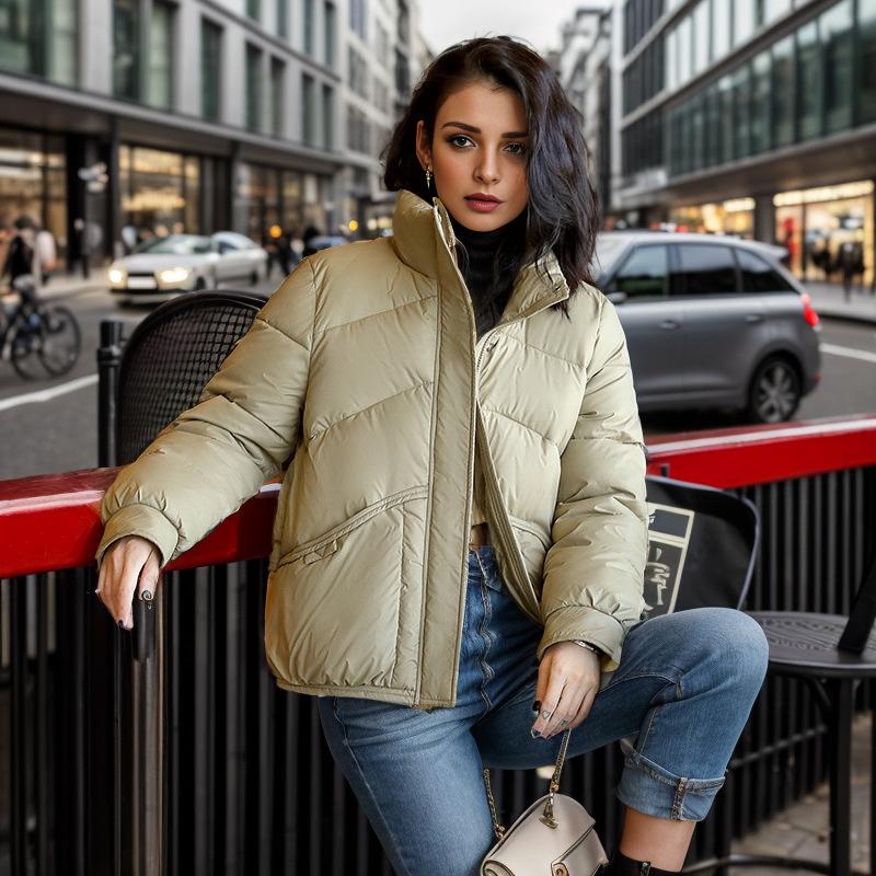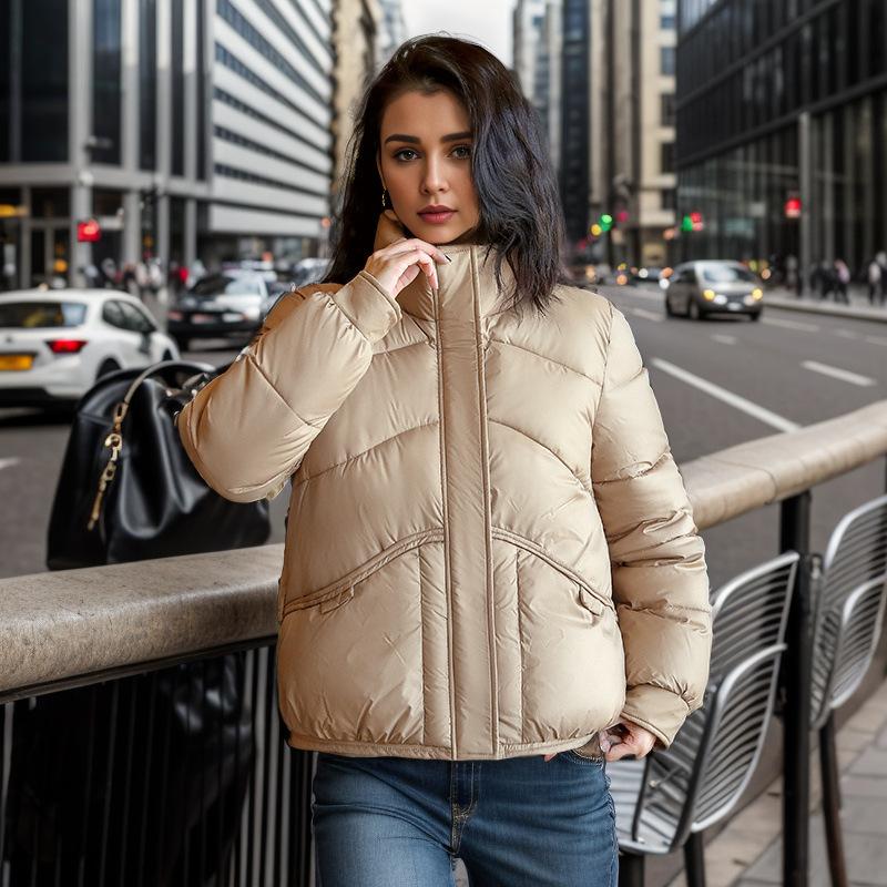 Chaqueta corta ligera de algodón acolchado de alta calidad para mujer, nueva chaqueta de invierno 2023 con cuello alto, informal, holgada, de talla pequeña y acolchada de algodón.