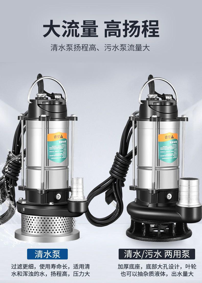 Bomba sumergible de 220 V para uso doméstico, pequeña bomba de agua de acero inoxidable, de gran elevación y gran caudal, para riego agrícola, bomba automática.