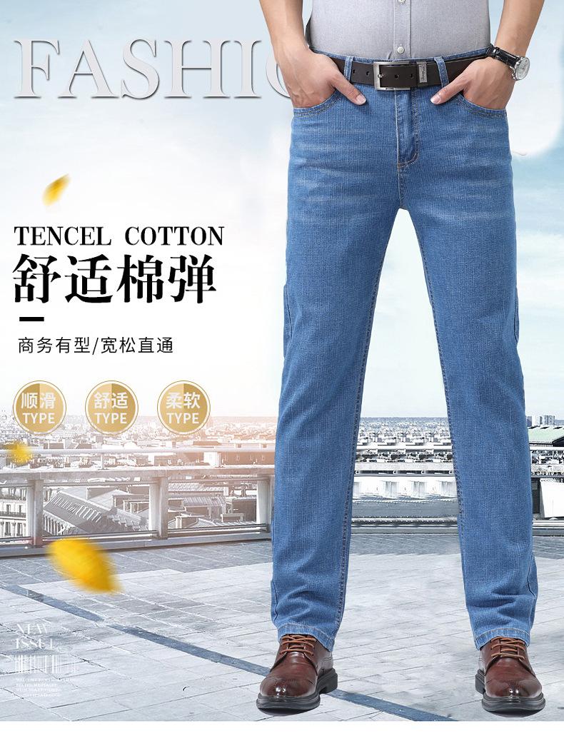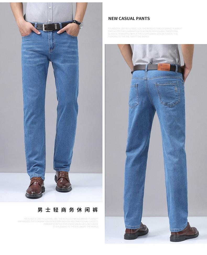 Pantalones vaqueros de verano para hombre, rectos, azul claro, holgados, elásticos, combinables, largos, recién llegados, ligeros, de lujo, de marca, ropa de hombre