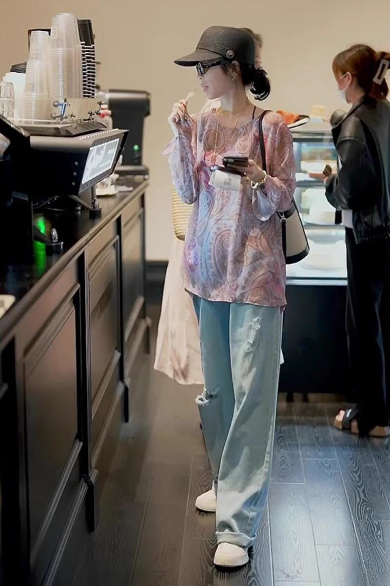 Camisa de gasa de manga larga estilo occidental, informal, de verano 2024, para mujer, con protector solar, holgada, fina y combinable.