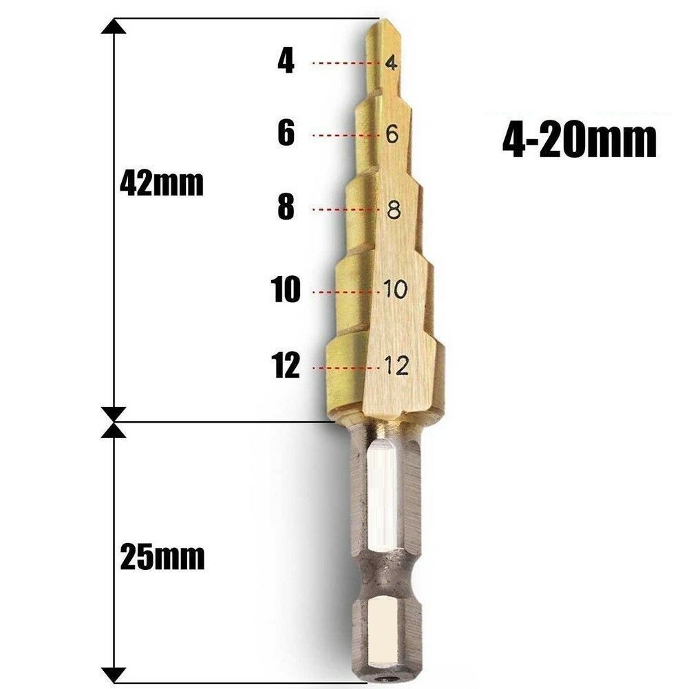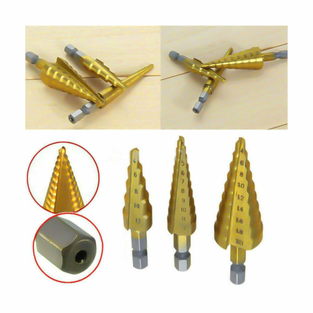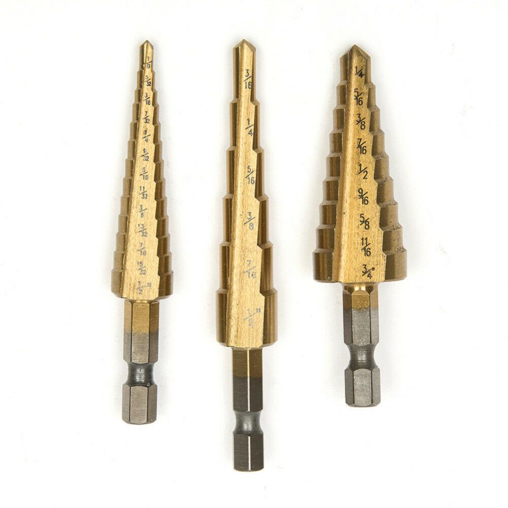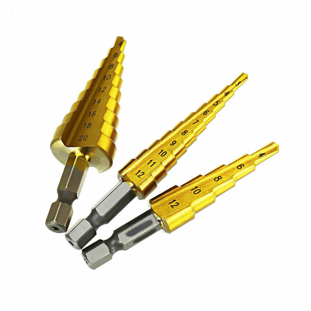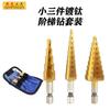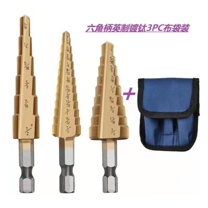 Venta caliente transfronteriza, taladro pagoda, taladro escalonado, vástago hexagonal, ranura recta, taladro escalonado chapado en titanio, escariador de tres piezas, abridor de agujeros
