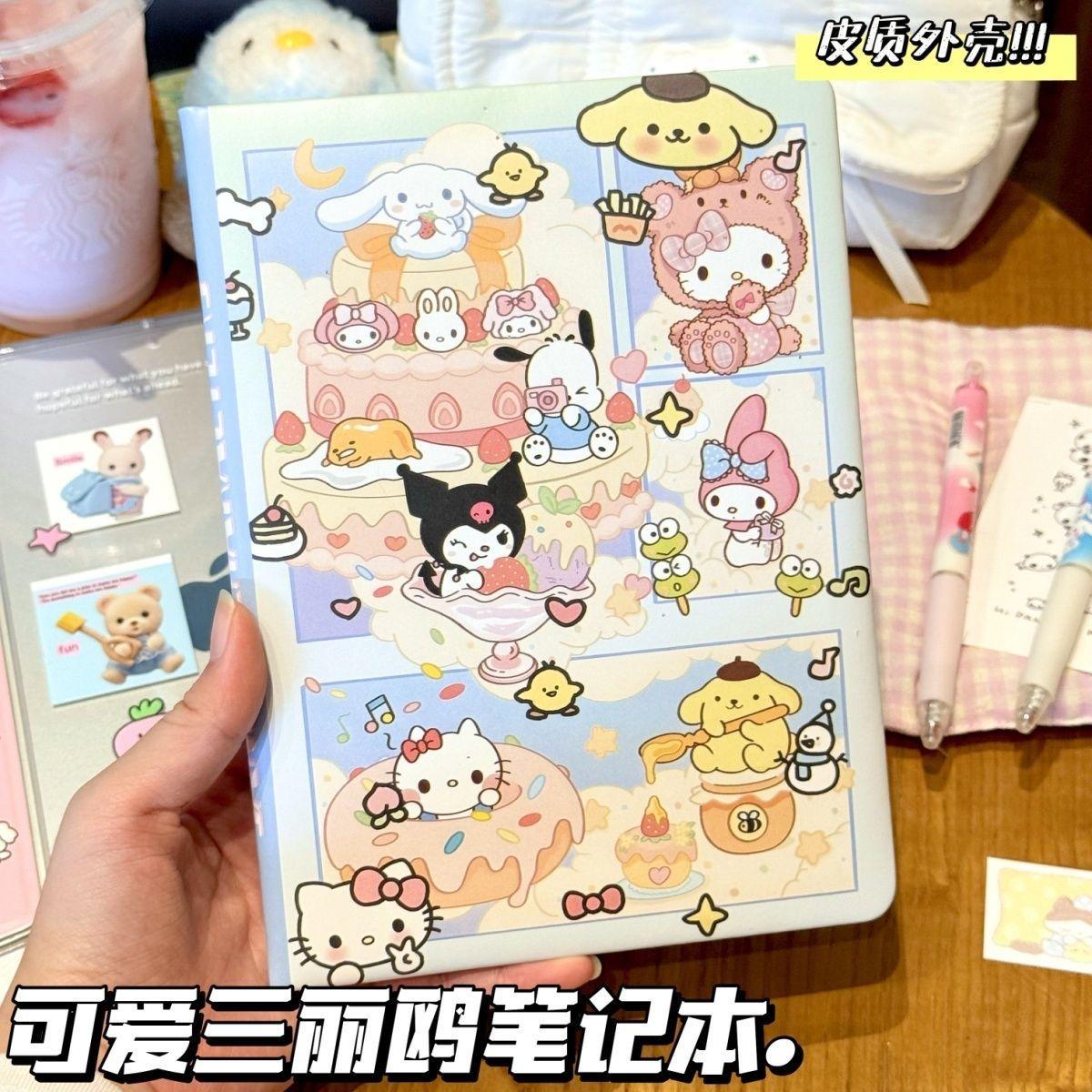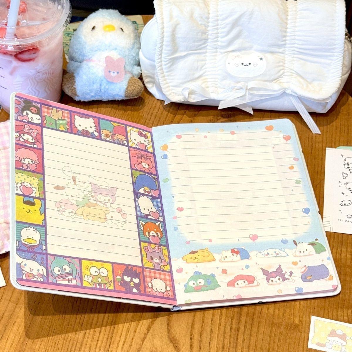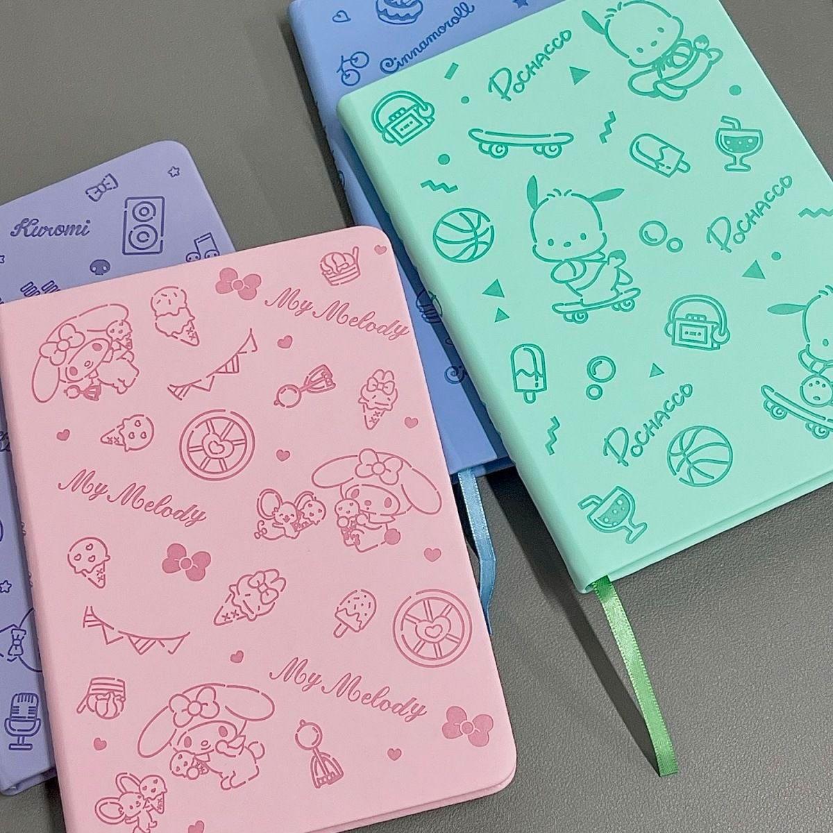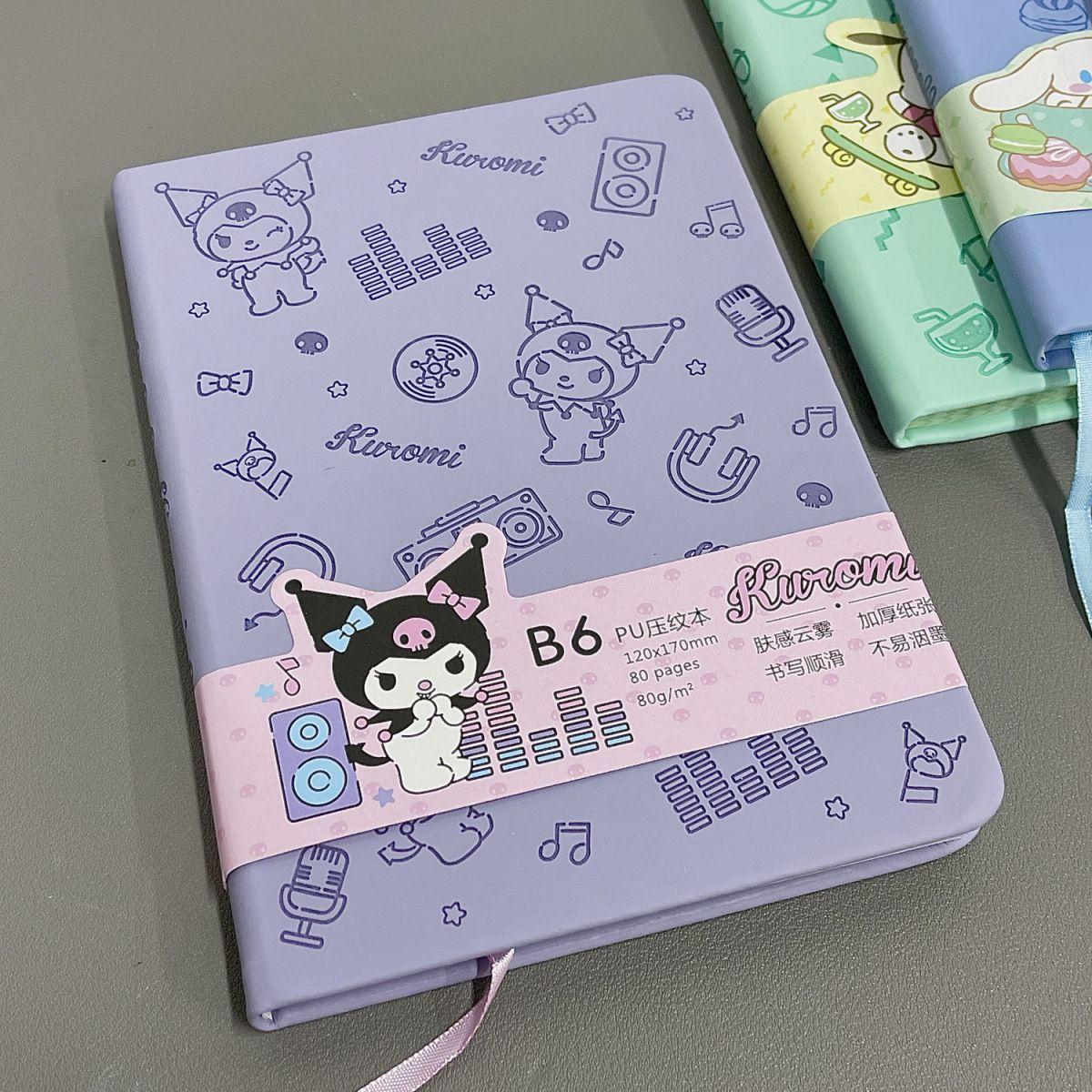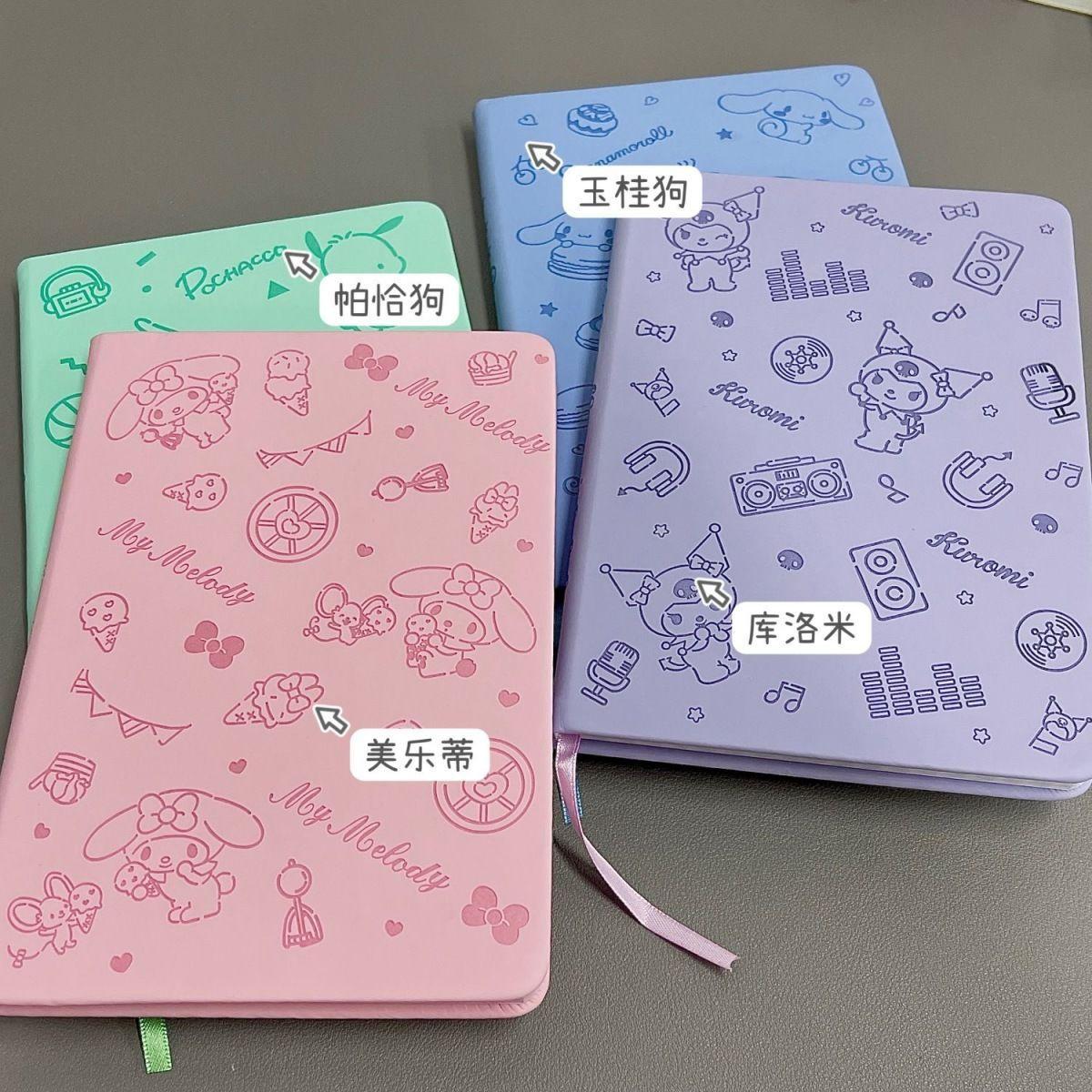 Lindo Cuaderno de Cuero Estampado Sanrio, Página para Colorear de Aspecto Sofisticado, Bloc de Notas de Dibujos Animados, Diario de Papelería para Estudiantes