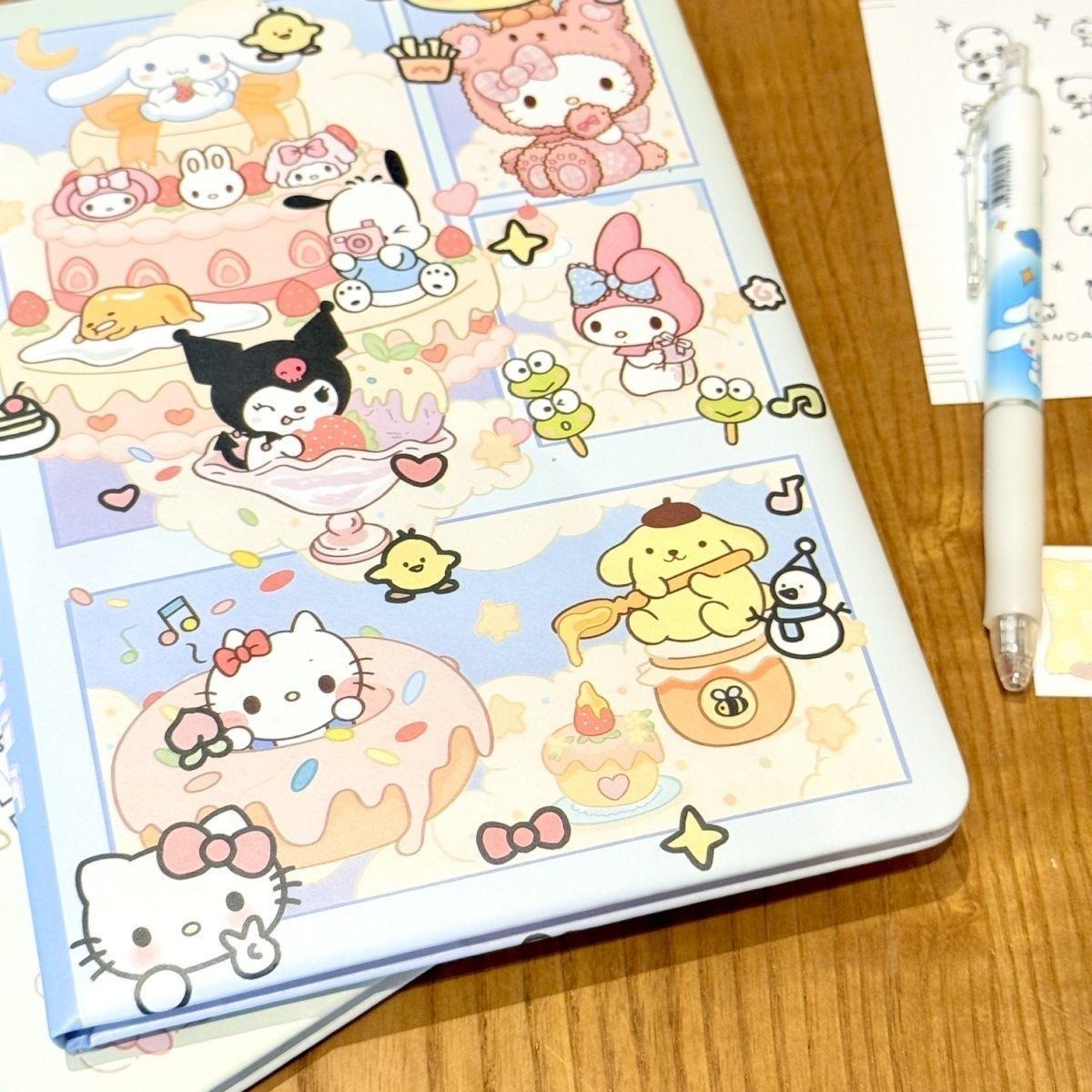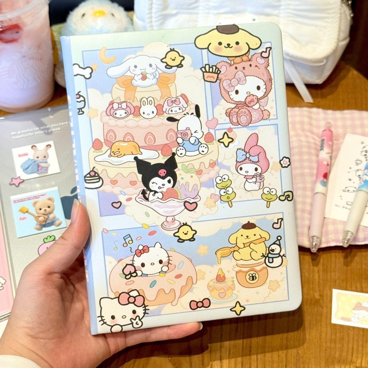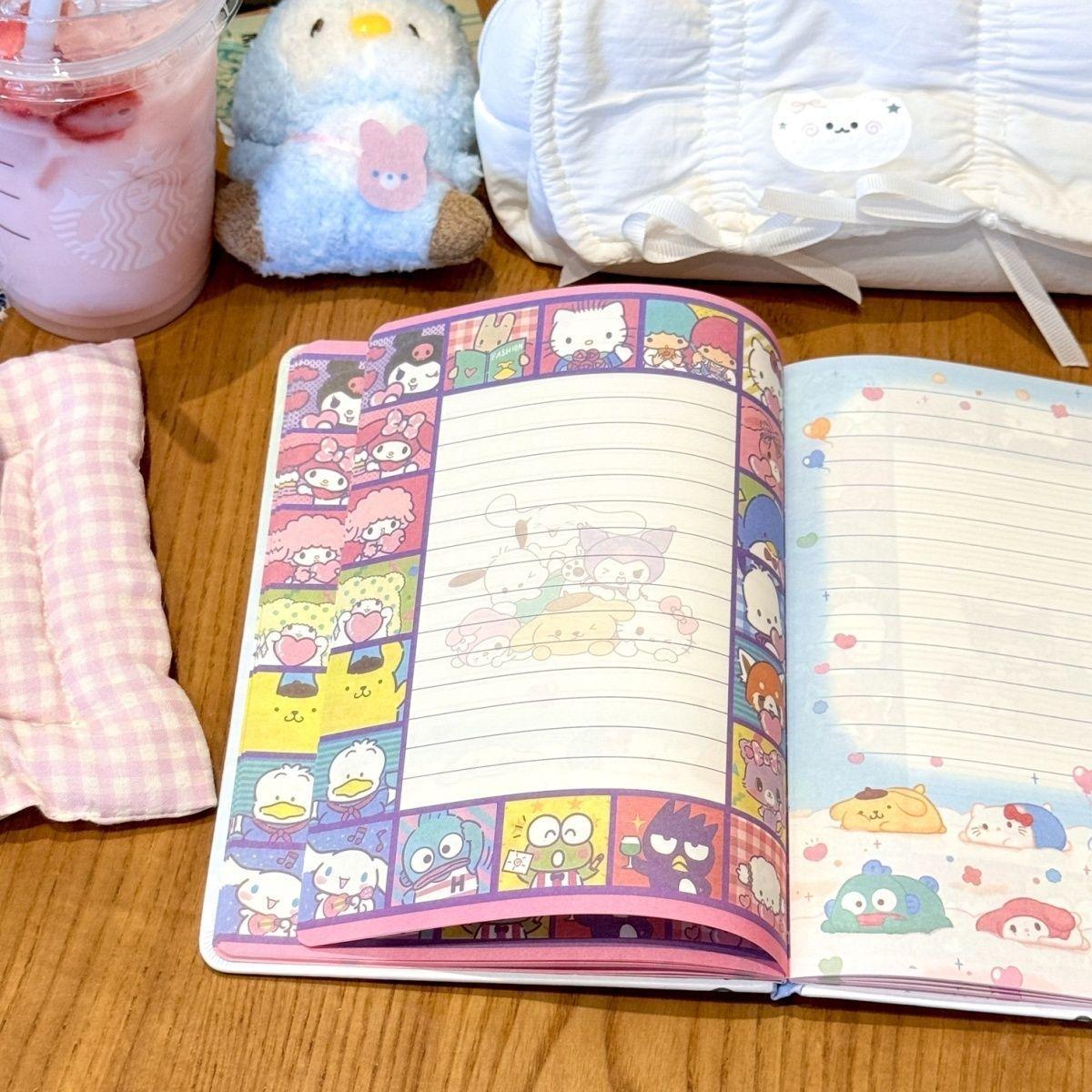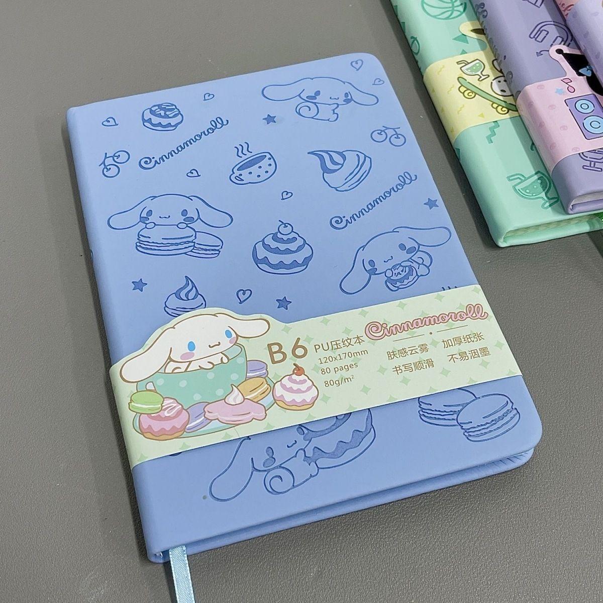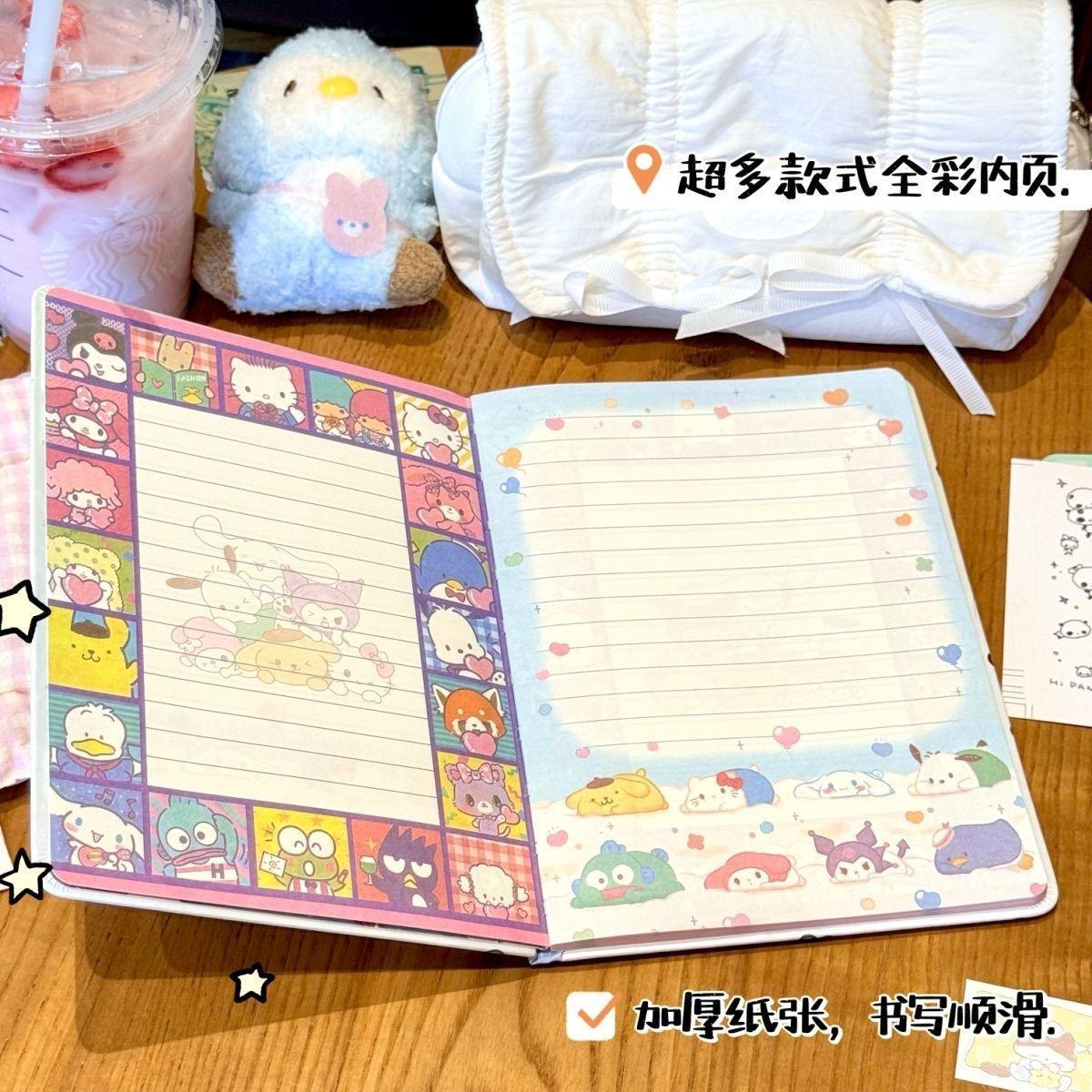 Lindo Cuaderno de Cuero Estampado Sanrio, Página para Colorear de Aspecto Sofisticado, Bloc de Notas de Dibujos Animados, Diario de Papelería para Estudiantes