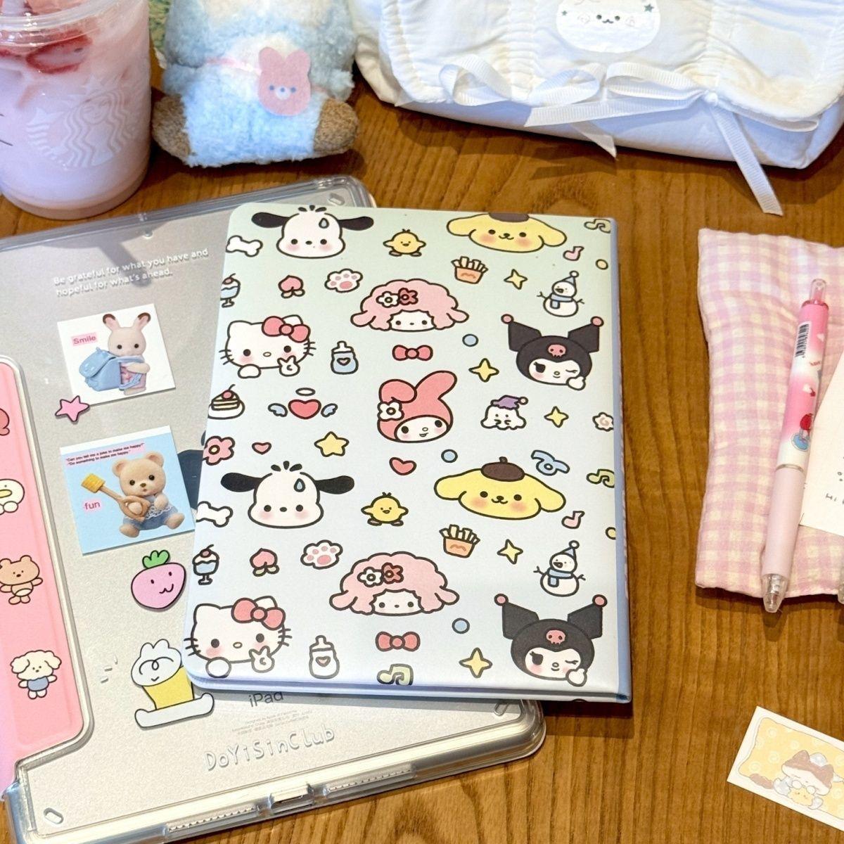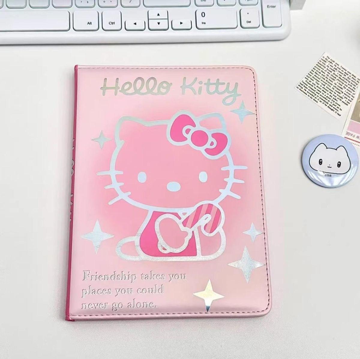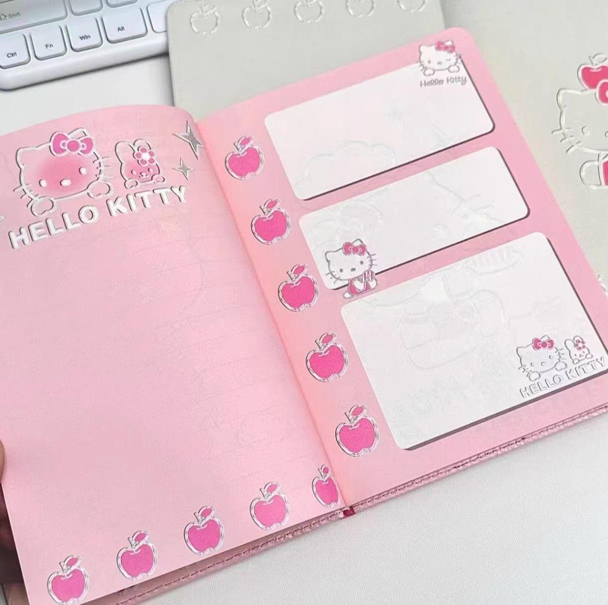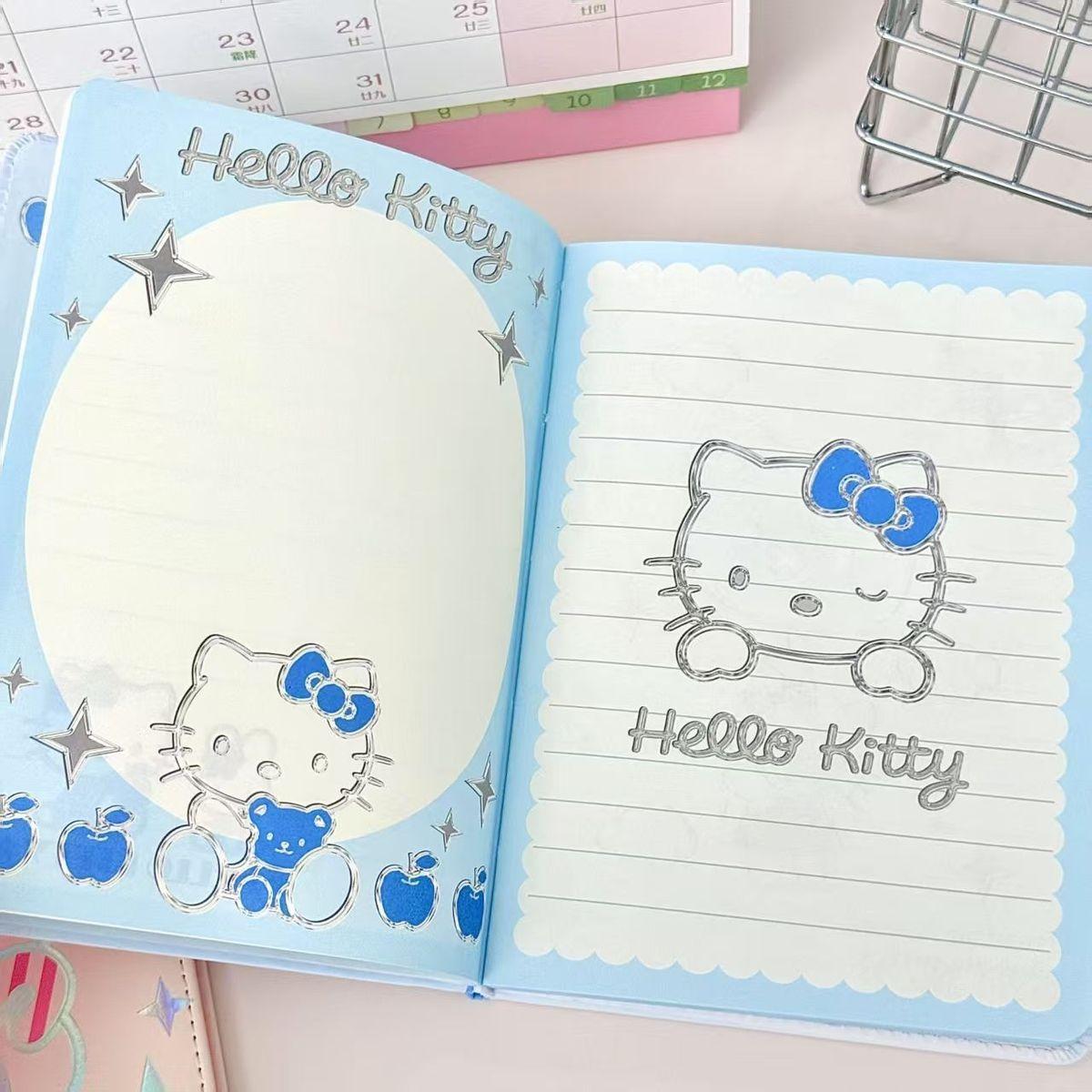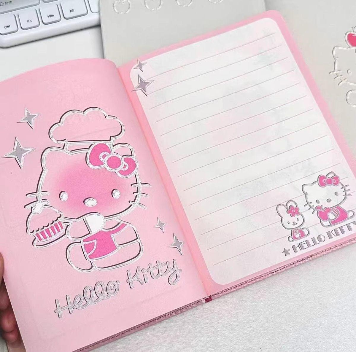 Lindo Cuaderno de Cuero Estampado Sanrio, Página para Colorear de Aspecto Sofisticado, Bloc de Notas de Dibujos Animados, Diario de Papelería para Estudiantes