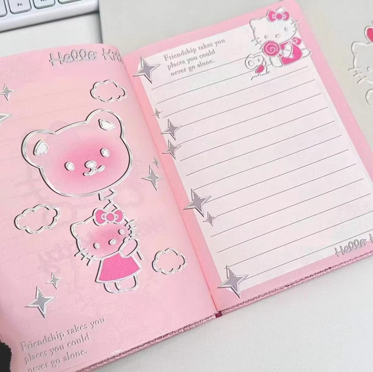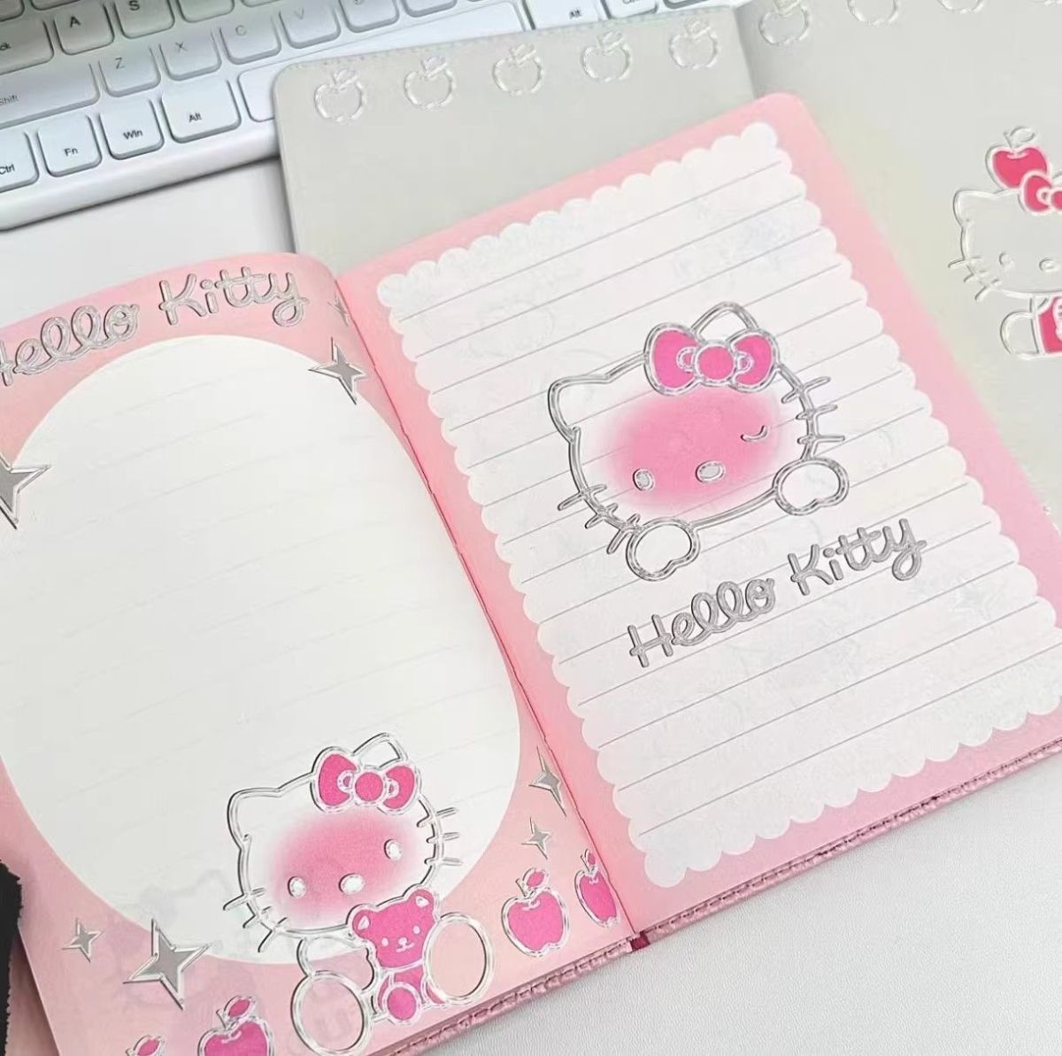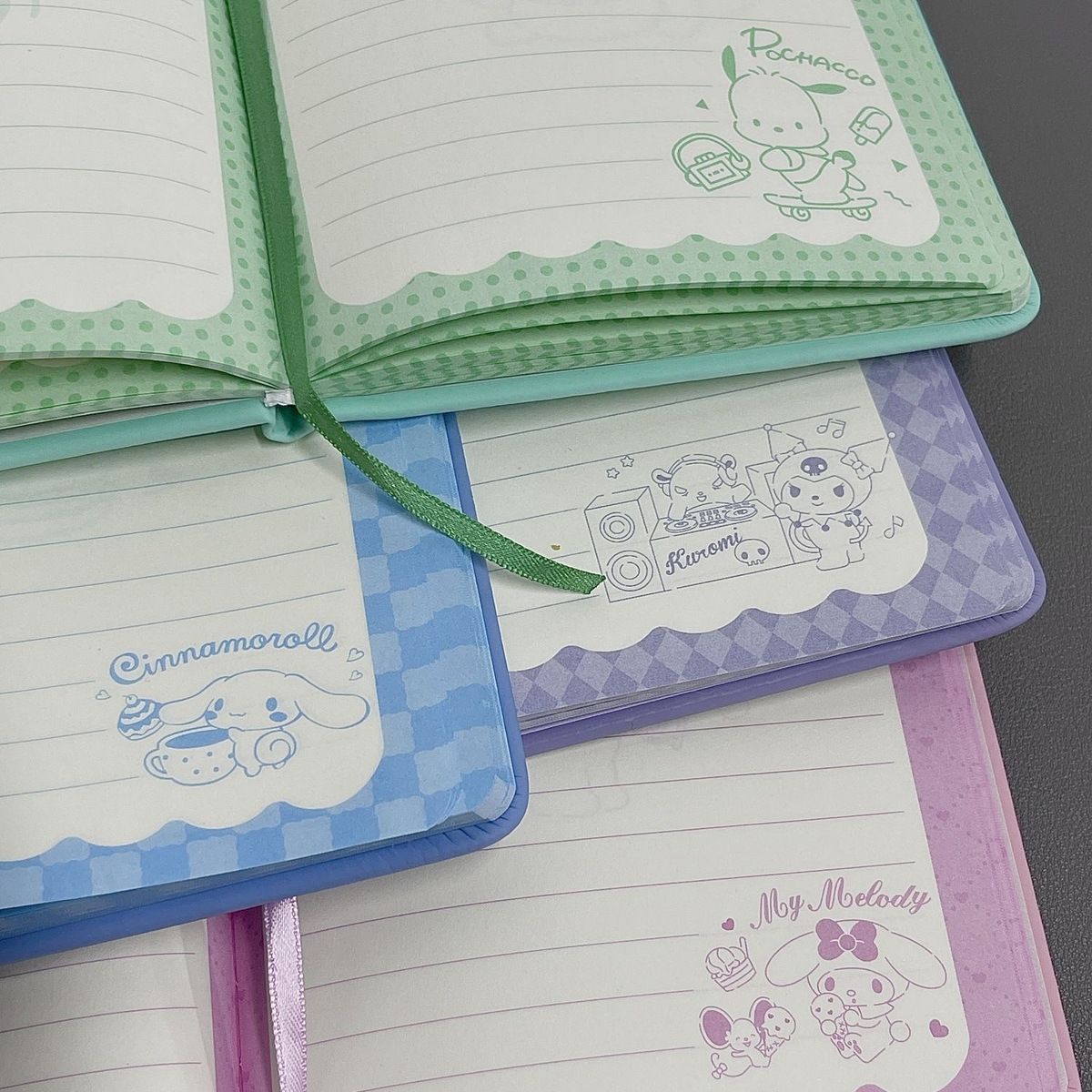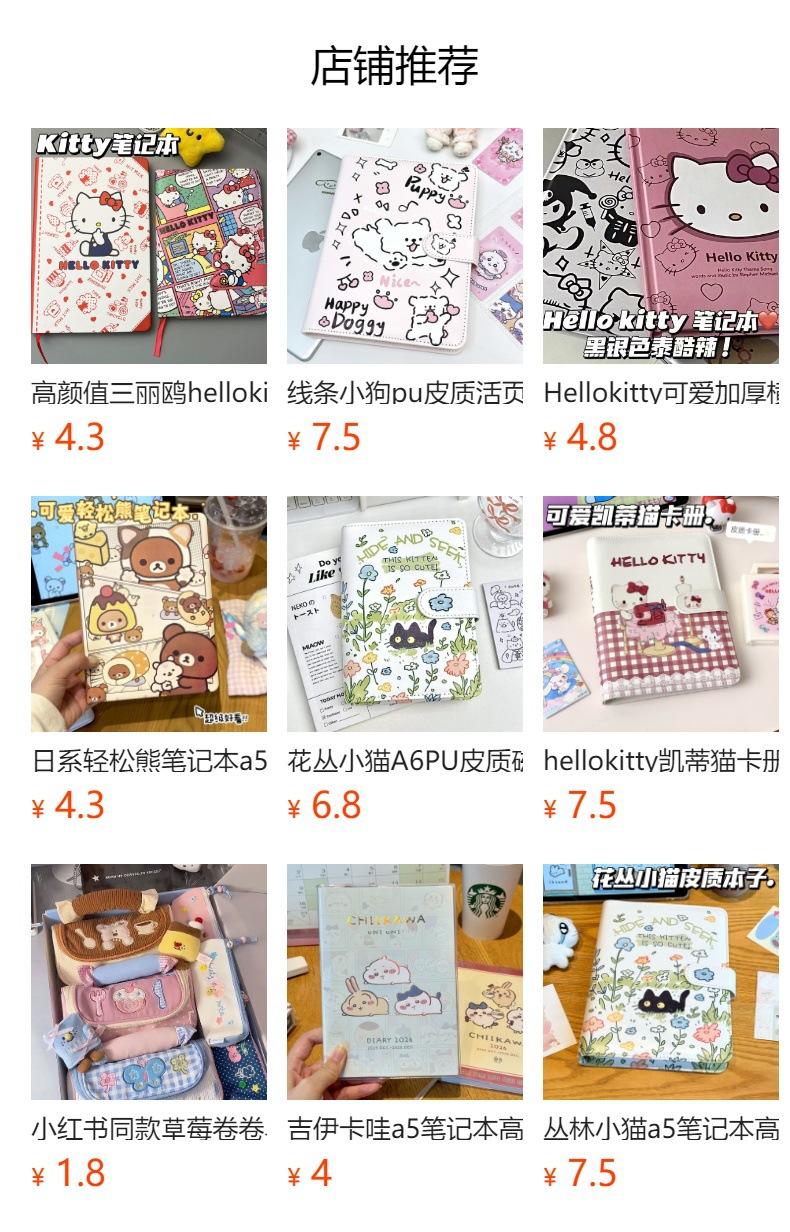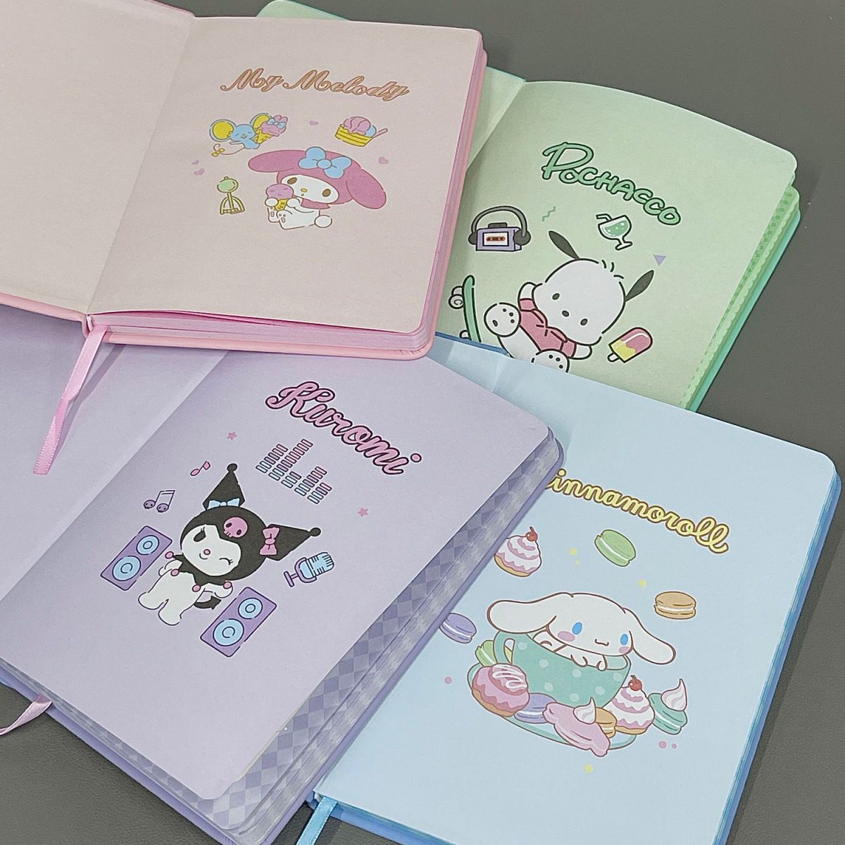 Lindo Cuaderno de Cuero Estampado Sanrio, Página para Colorear de Aspecto Sofisticado, Bloc de Notas de Dibujos Animados, Diario de Papelería para Estudiantes