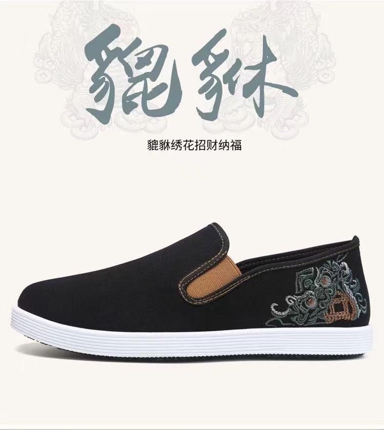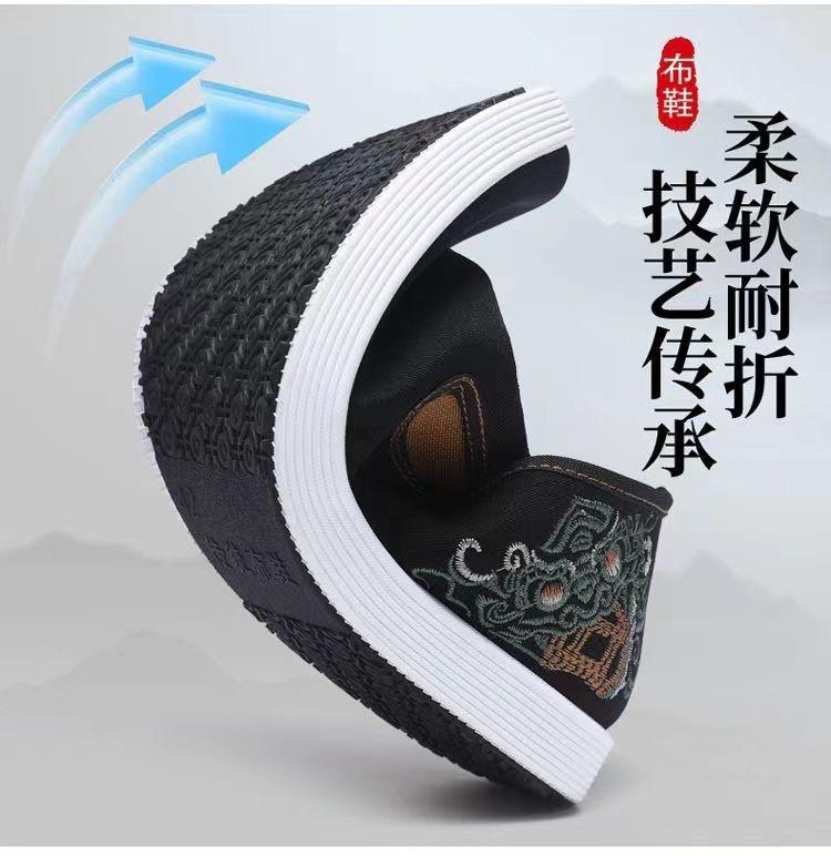 Zapatos de tela de Pekín antiguos zapatos militares zapatos de hombre zapatos de tela negra suela suave antideslizante transpirable casual zapatos de tela bordados suela de mil capas