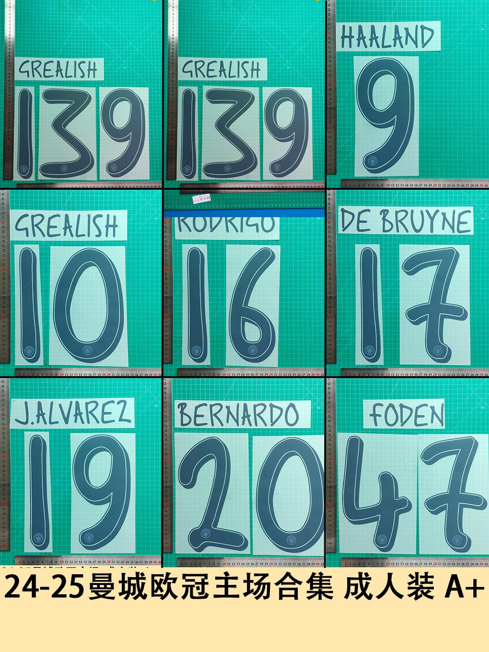 24-25 Manchester City Champions League Colección Local Vestido para Adulto A Estampado de Letras y Números de Jersey Número Transferencia de Calor Mapa