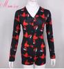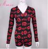 Mono ajustado de una pieza con botones y manga larga con cuello en V profundo sexy europeo y americano para mujer verano 2020