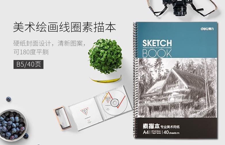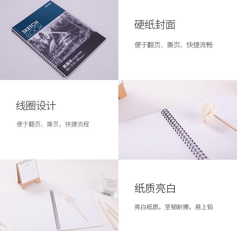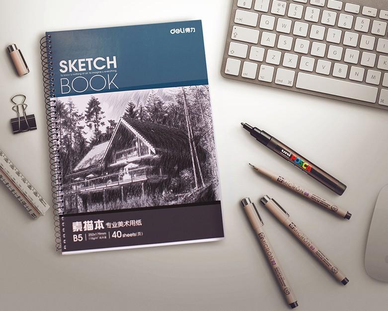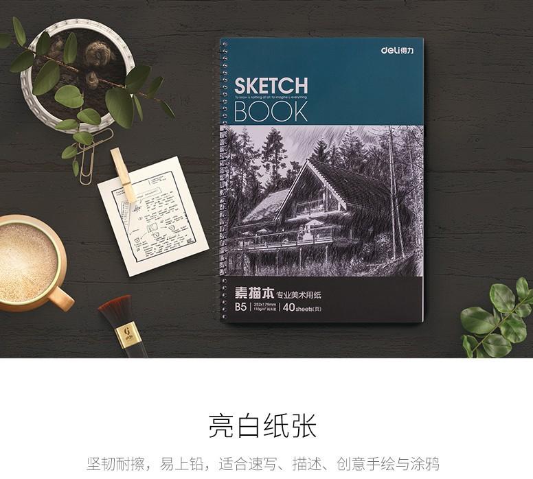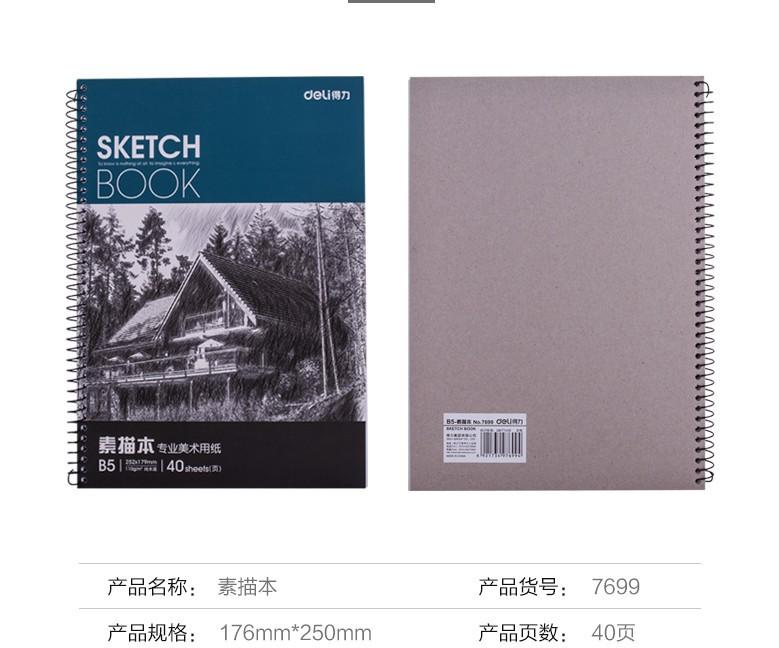 Deli 7699 cuaderno de bocetos B5 papel de arte estudiante boceto libro de pintura cuaderno de bocetos papel de boceto 40 hojas/libro