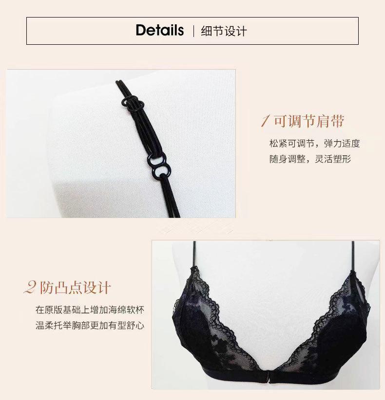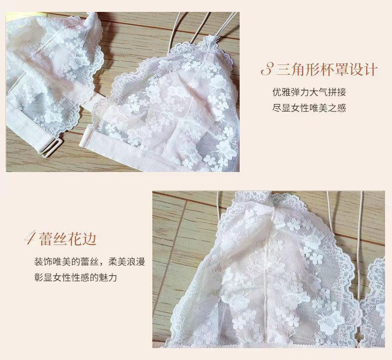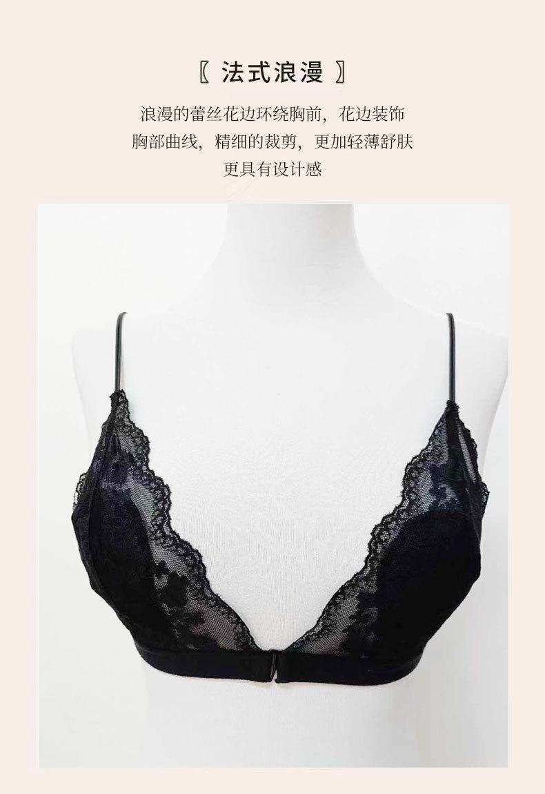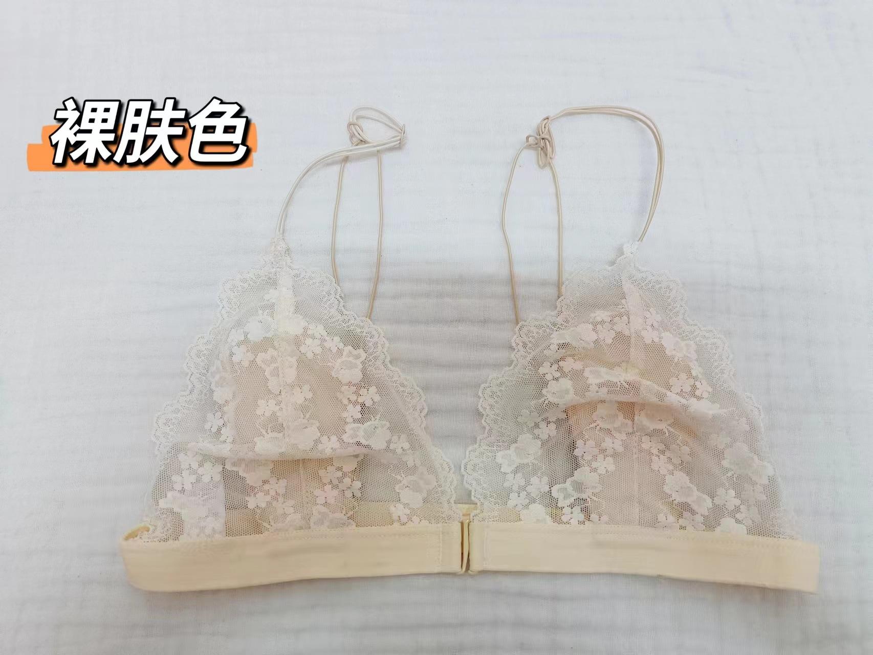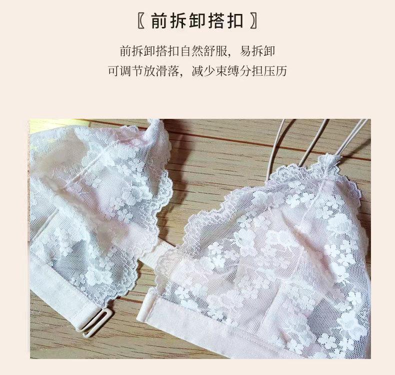 Estilo Francés Sin Aro de Acero Copa Triangular Pecho Pequeño Ropa Interior para Mujer Ultrafina Verano Encaje Deseo Puro Tirante Fino Hermosa Espalda Hebilla Delantera Sujetador