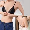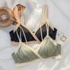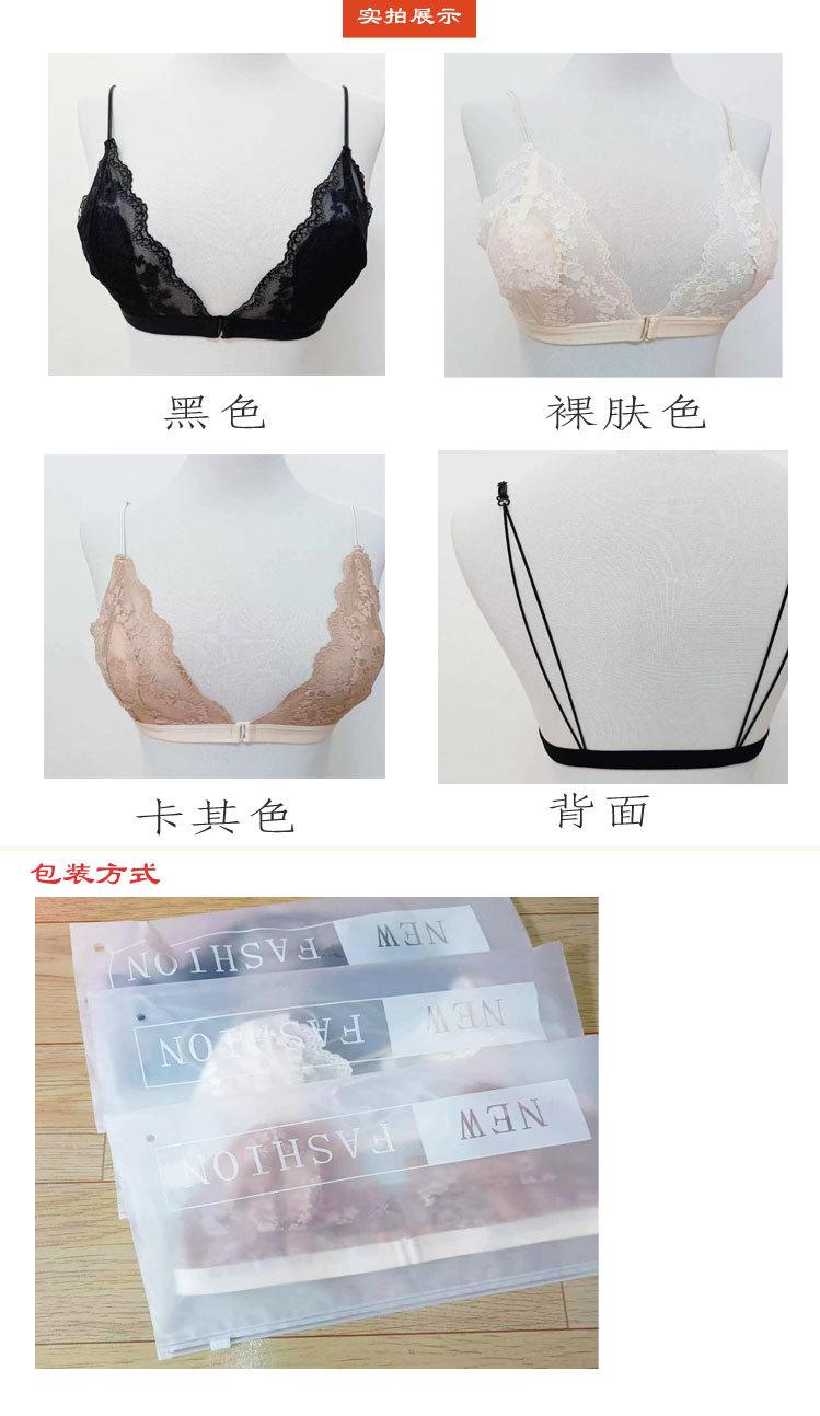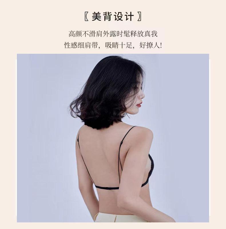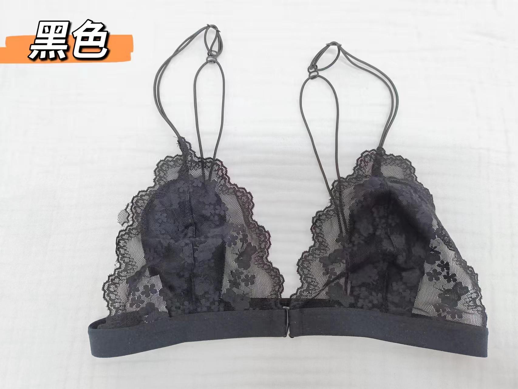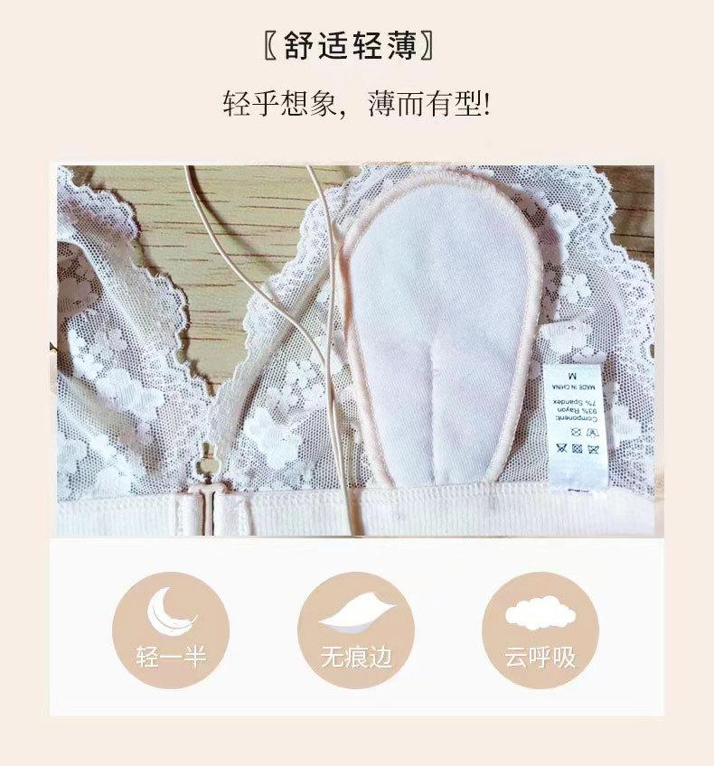 Estilo Francés Sin Aro de Acero Copa Triangular Pecho Pequeño Ropa Interior para Mujer Ultrafina Verano Encaje Deseo Puro Tirante Fino Hermosa Espalda Hebilla Delantera Sujetador
