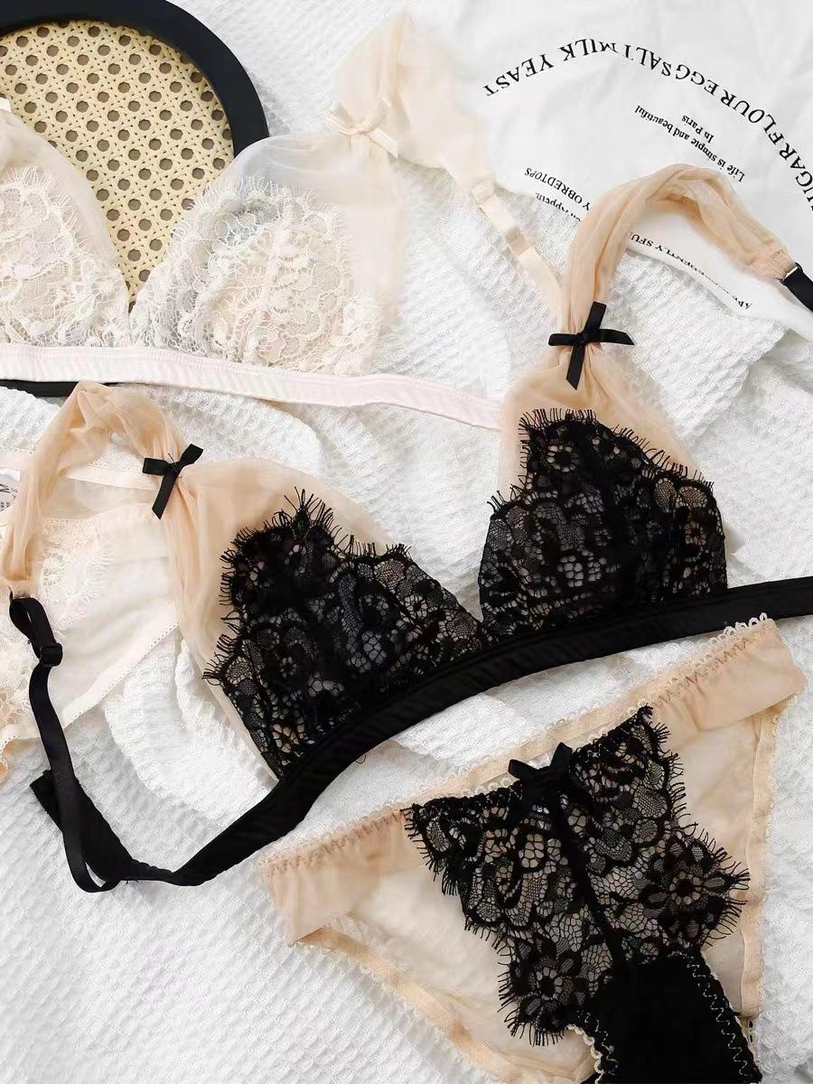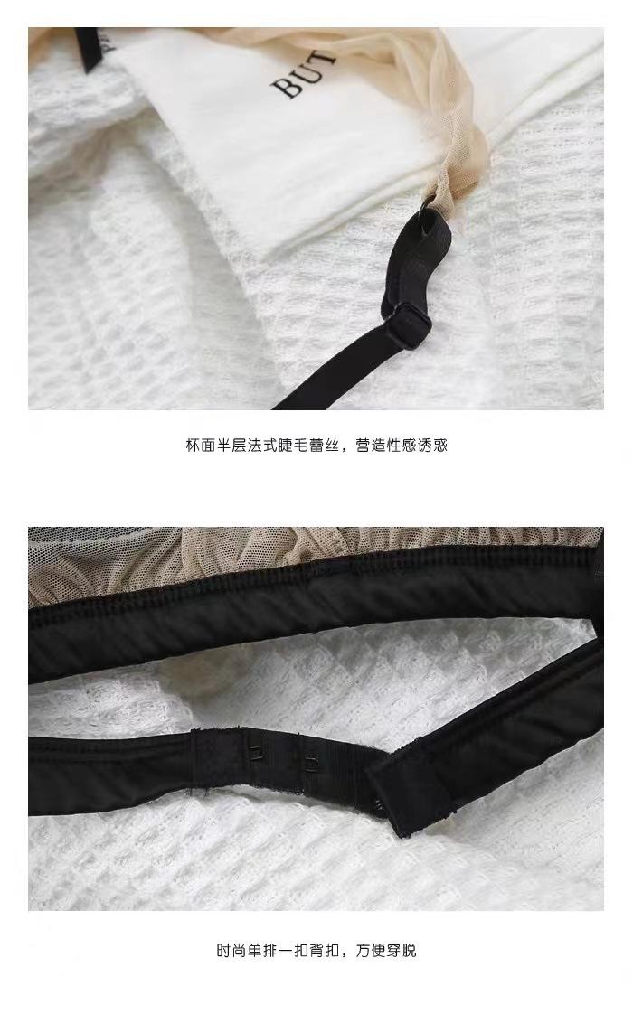 Nueva ropa interior sexy francesa para mujer, sujetador push up de pecho pequeño de verano de encaje fino, sujetador francés inalámbrico.