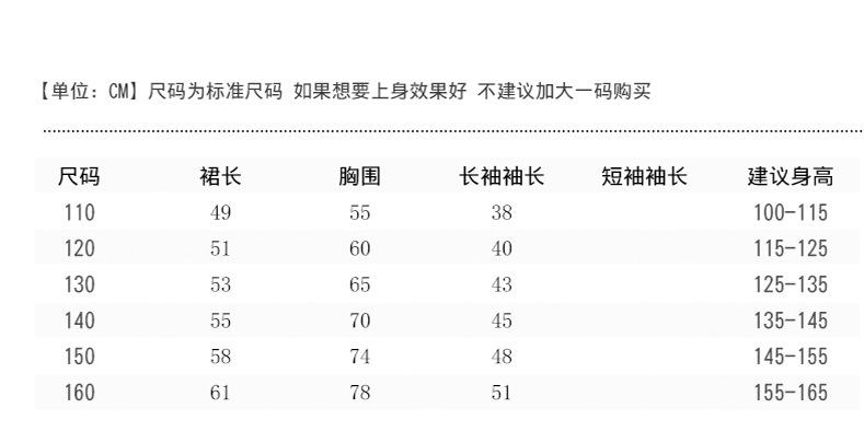 110cm, 120cm, 130cm, 140cm, 150cm, 160cm
