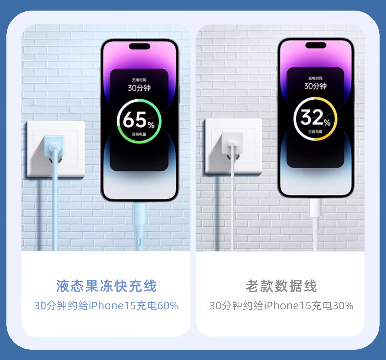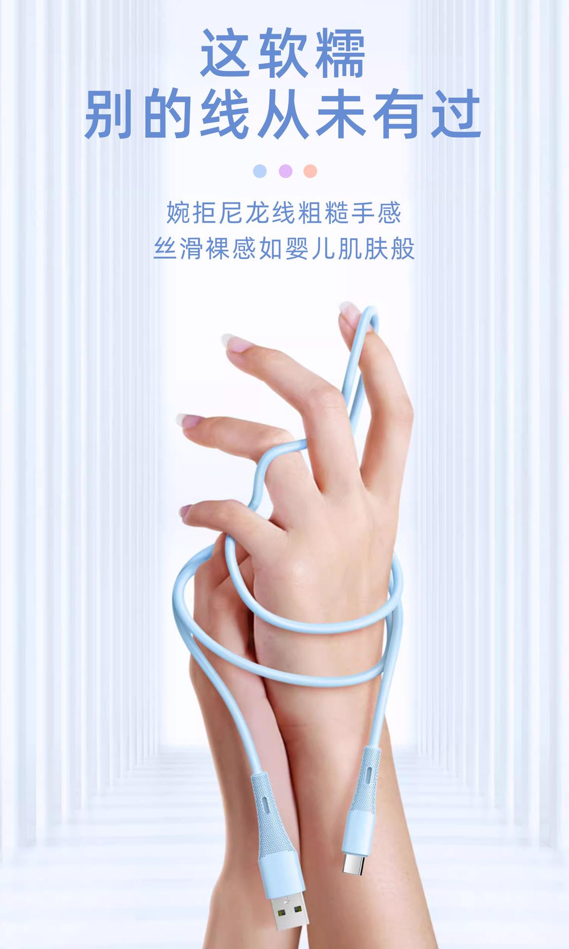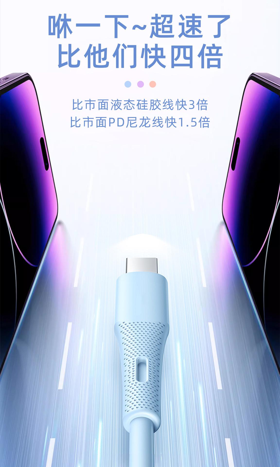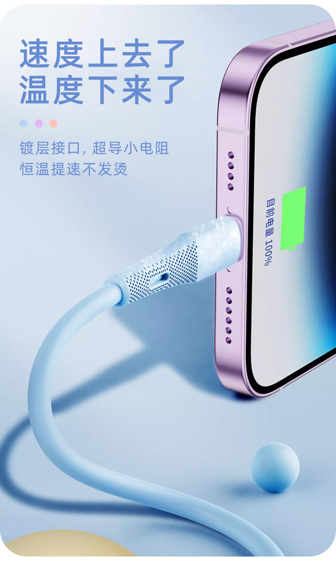 Cable de datos de carga rápida de silicona líquida tipo C de doble cabezal de 60 W para cargador de teléfono móvil Apple 15 de 27 W y Huawei