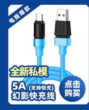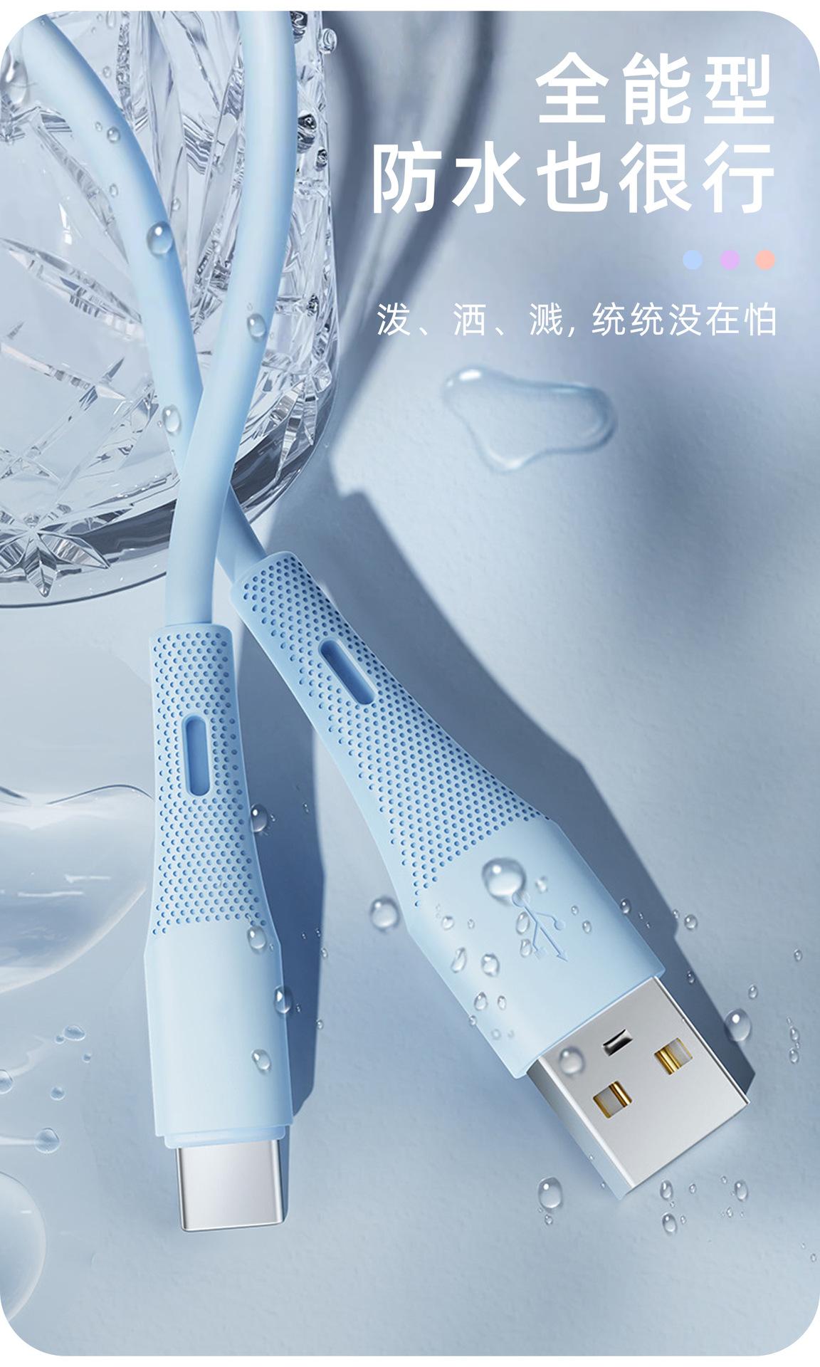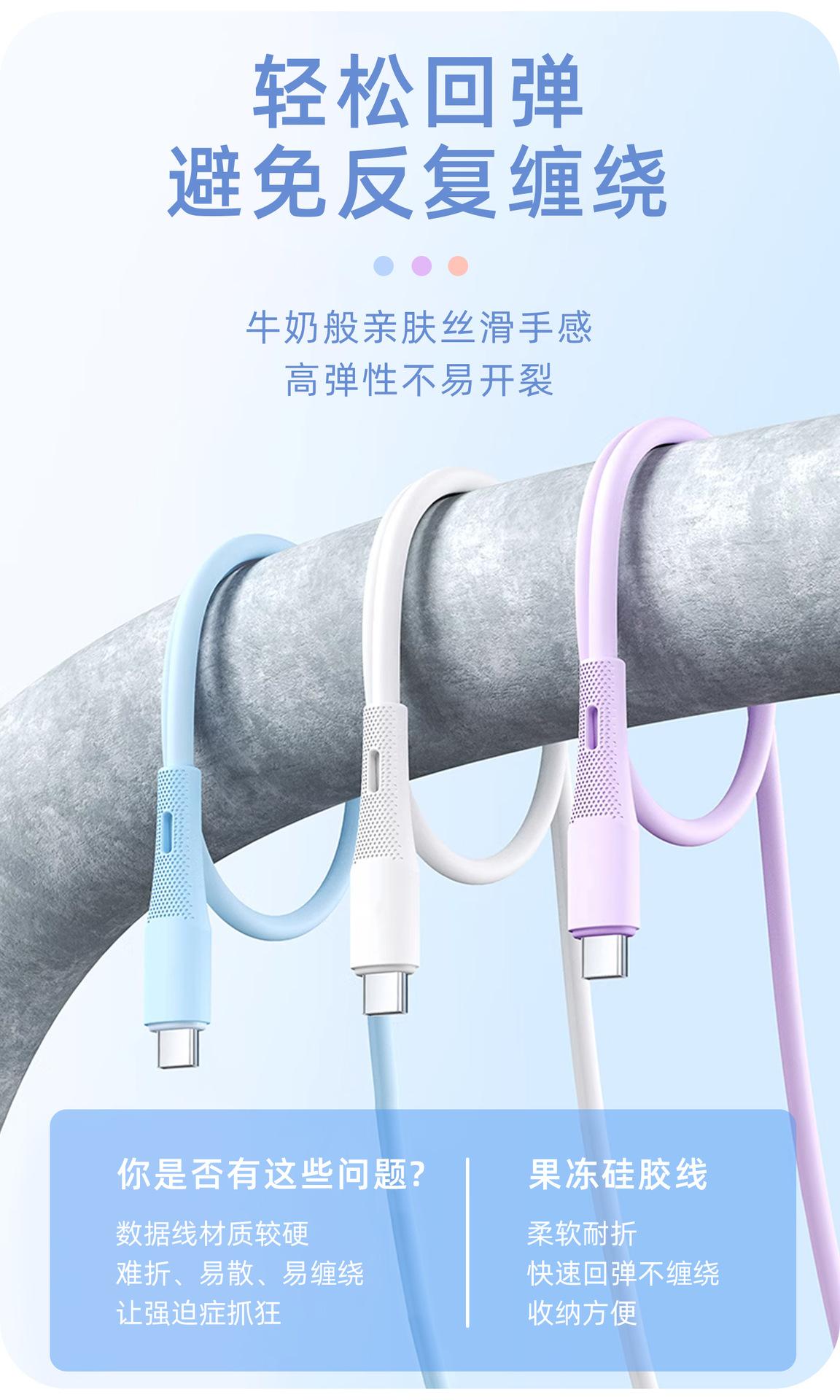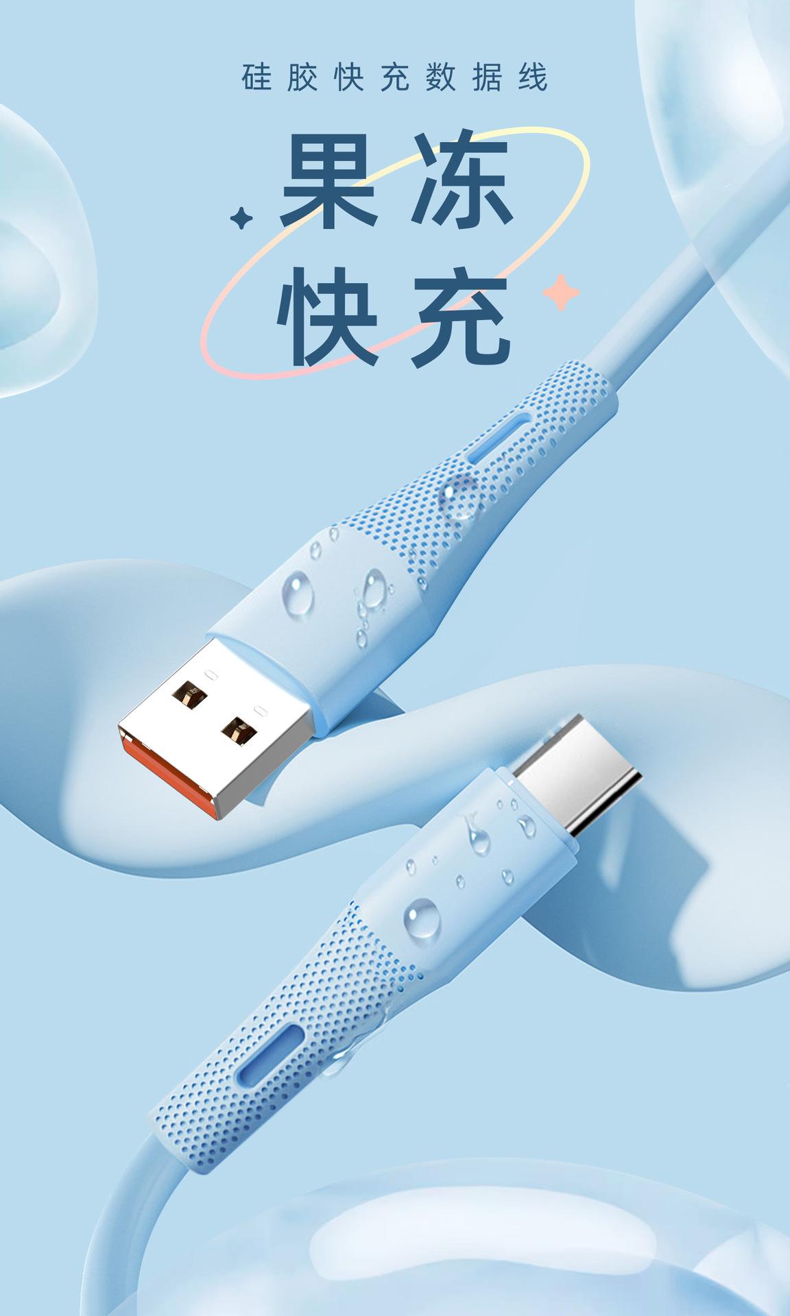 Cable de datos de carga rápida de silicona líquida tipo C de doble cabezal de 60 W para cargador de teléfono móvil Apple 15 de 27 W y Huawei