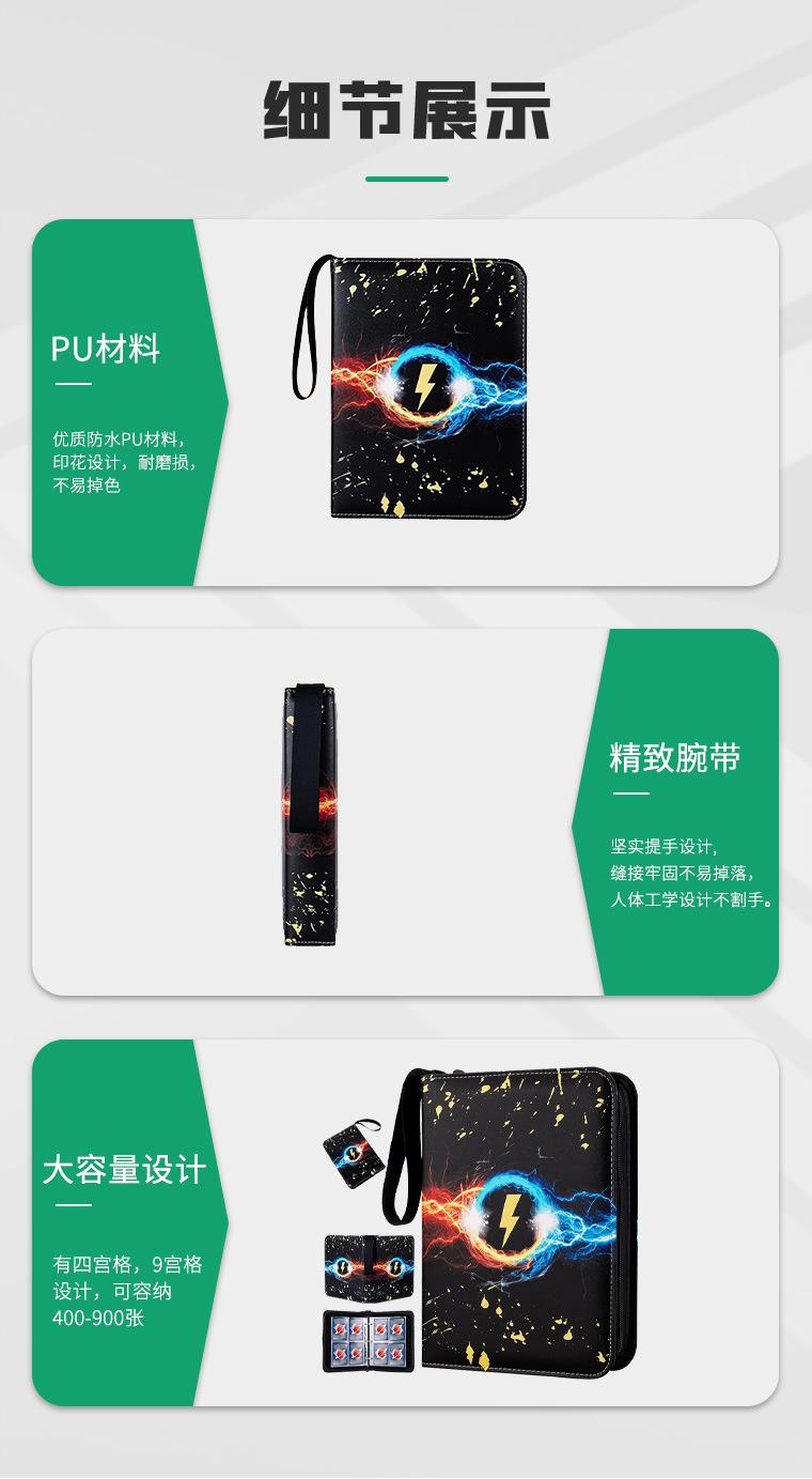 Libro de Almacenamiento de Cartas Pokémon de Venta Caliente Transfronterizo Libro para Cartas de Juego de Gran Capacidad Diseño Simple Cremallera Pu Bolsa para Cartas de Juego