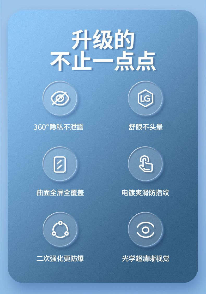 Explosion-proof, Anti-fingerprint, Anti-fall, Full screen, Anti-peeping