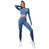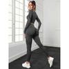 Traje de yoga deportivo de 2 piezas, de 7 colores, estilo europeo y americano, sin costuras, lavado, hueco y esmerilado, de manga larga, cintura alta, pantalones de realce de cadera para mujer