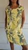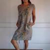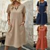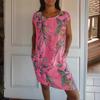 Ropa de mujer transfronteriza de Amazon 2024 Europa y Estados Unidos transfronteriza nueva falda de verano de algodón y lino con cuello redondo y bolsillo estampado