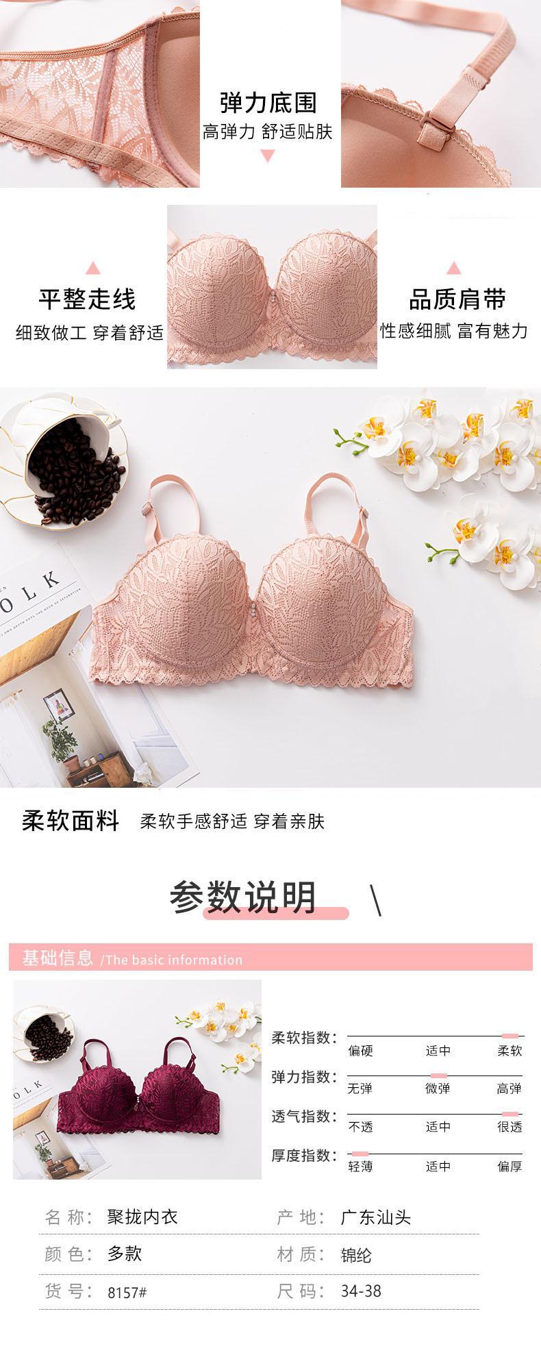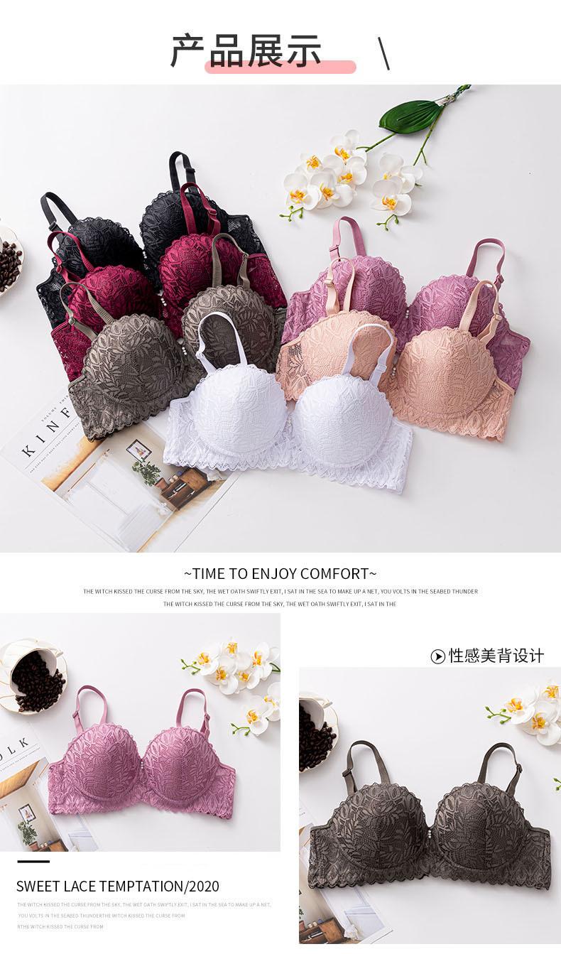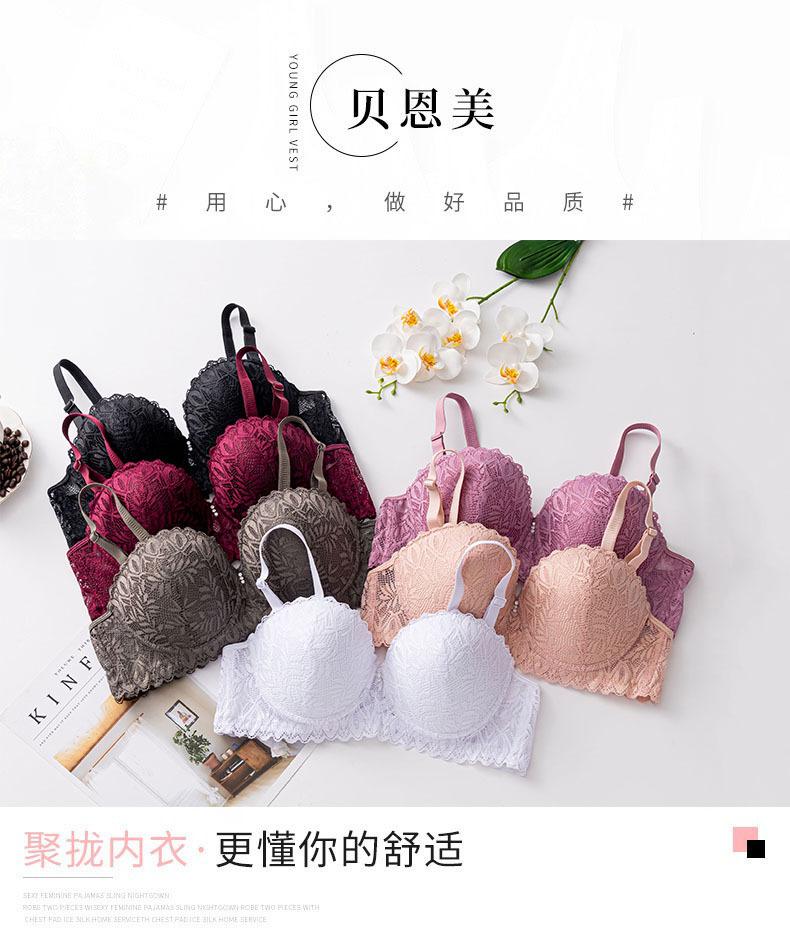 Europa y Estados Unidos sexy encaje transfronterizo recogido ropa interior para damas con aro de acero copa delgada comercio exterior ajuste sujetador venta al por mayor al contado