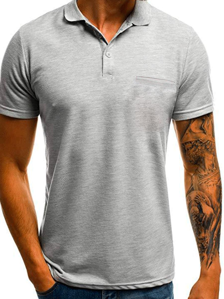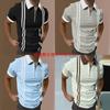 Nueva camiseta casual de manga corta con solapa de color liso para hombre