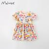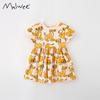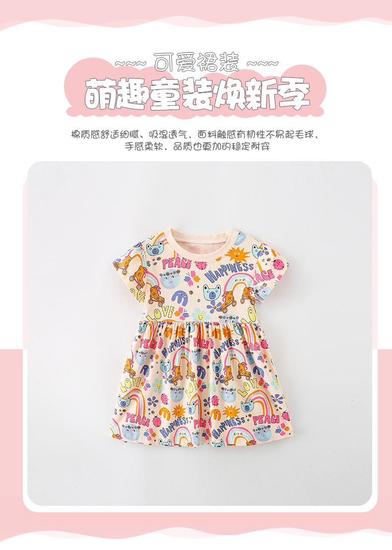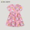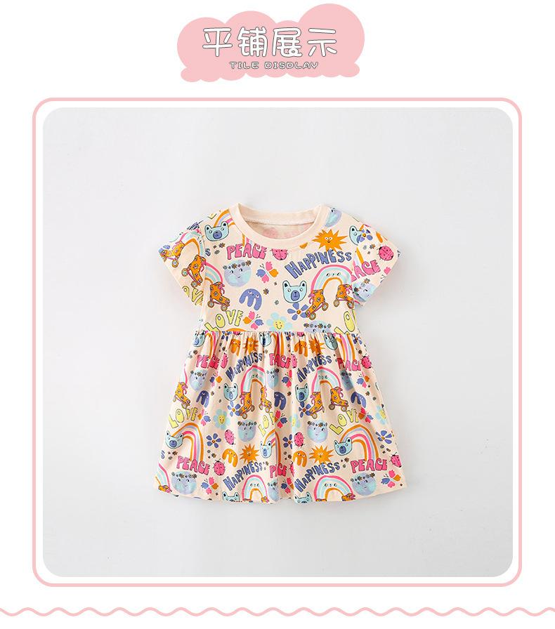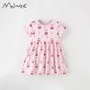Vestido de princesa para niñas, estilo europeo y americano, informal, estampado, de manga corta y cuello redondo.