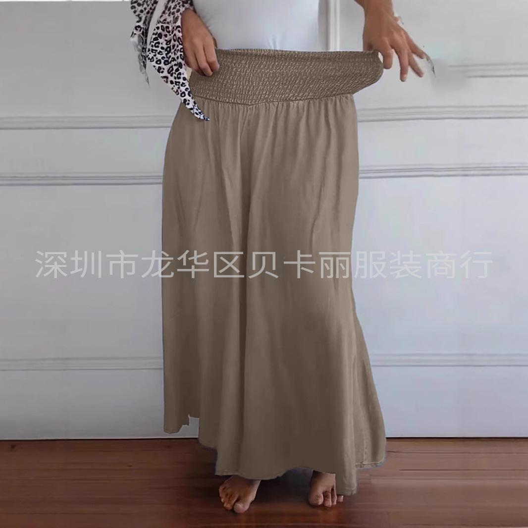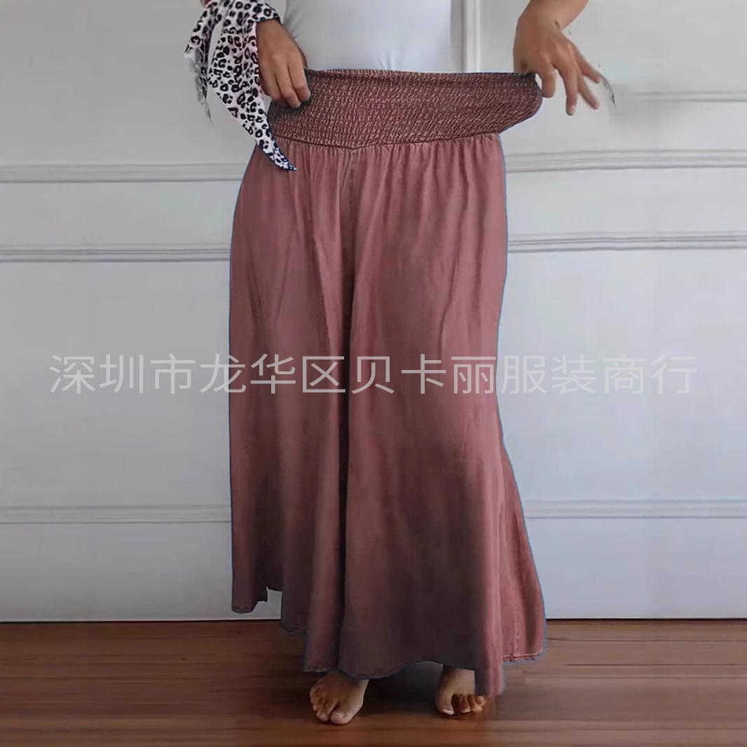 2024 Amazon Europeo y Americano Nuevo Más Vendido Moda para Mujer Casual Pierna Ancha Cintura Elástica Pantalones Anchos