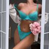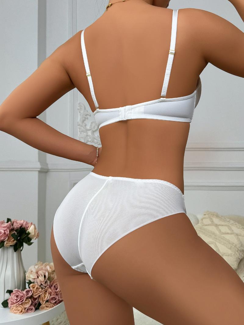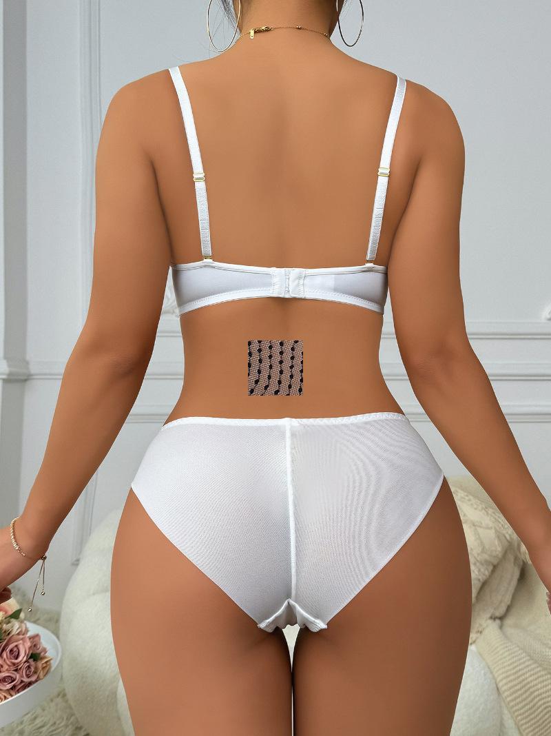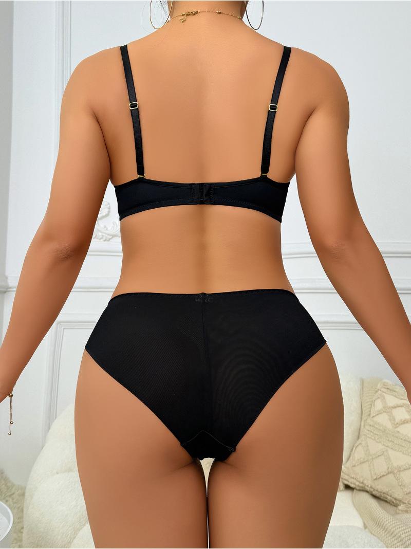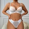 Ropa interior sexy europea y americana con realce, ajustable, de profundo escote en V, transfronteriza, de encaje, tentación, encantador, conjunto de sujetador y ropa interior