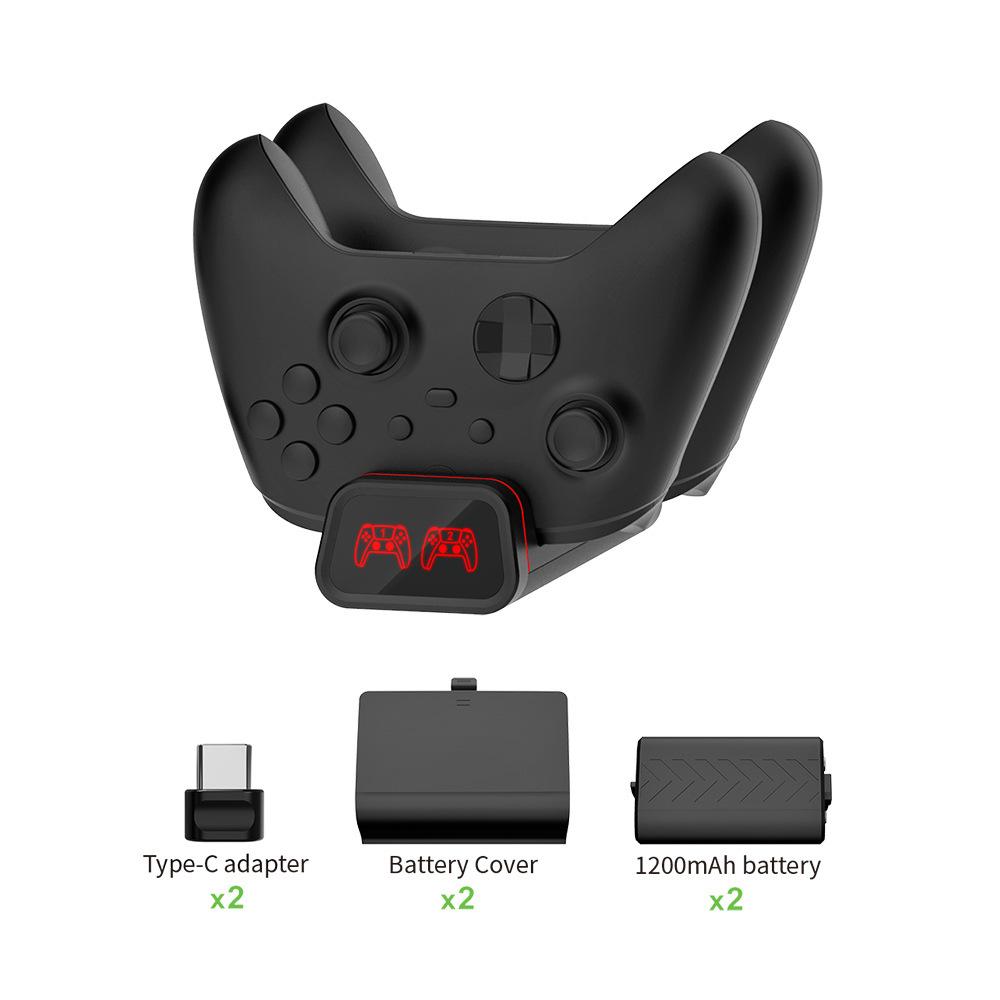 3. Viene con 2 adaptadores TIPO C, 2 paquetes de baterías de 2,4 V 1200 mAh, una cubierta de batería para Xbox sx/Xbox ss y un cable de carga de 80 cm;