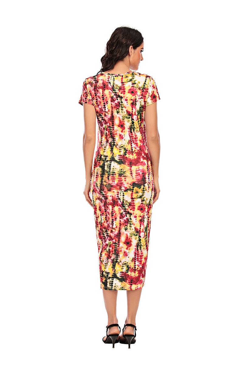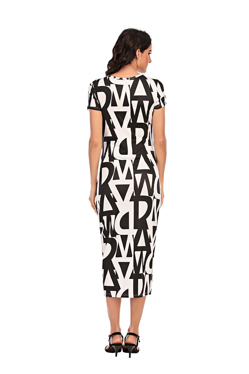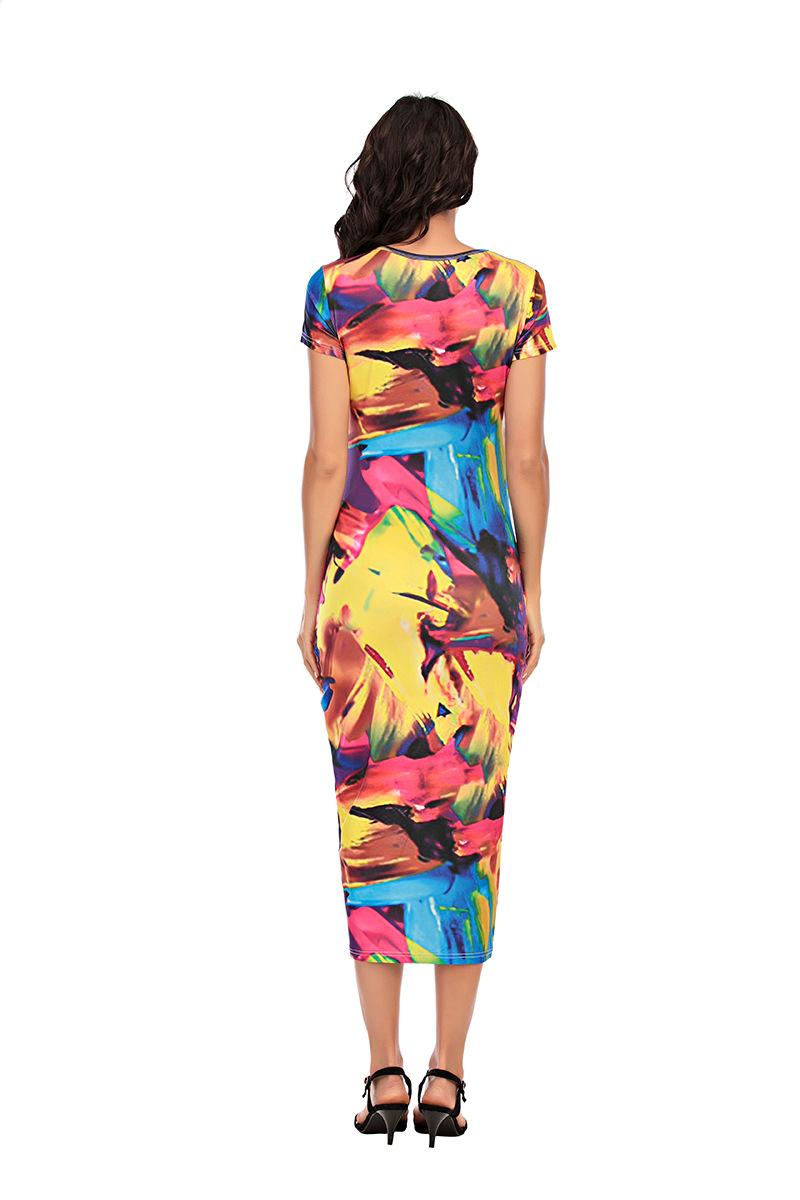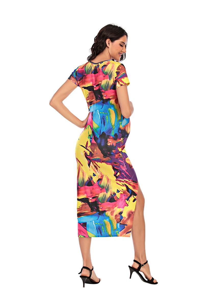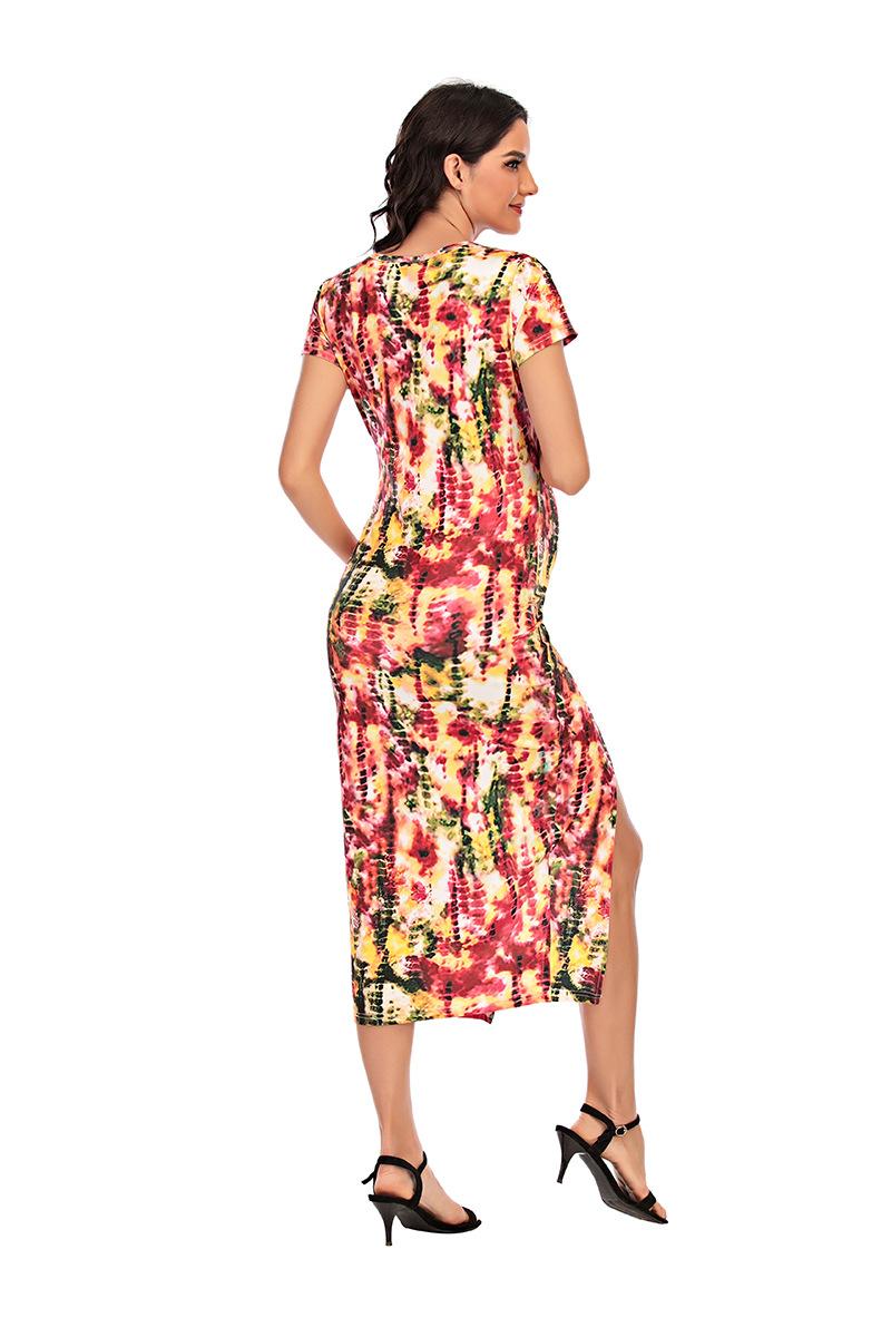 6185# AliExpress impresión digital ropa europea y americana para mujer nuevo cuello redondo manga corta abertura vestido de maternidad vestido en stock