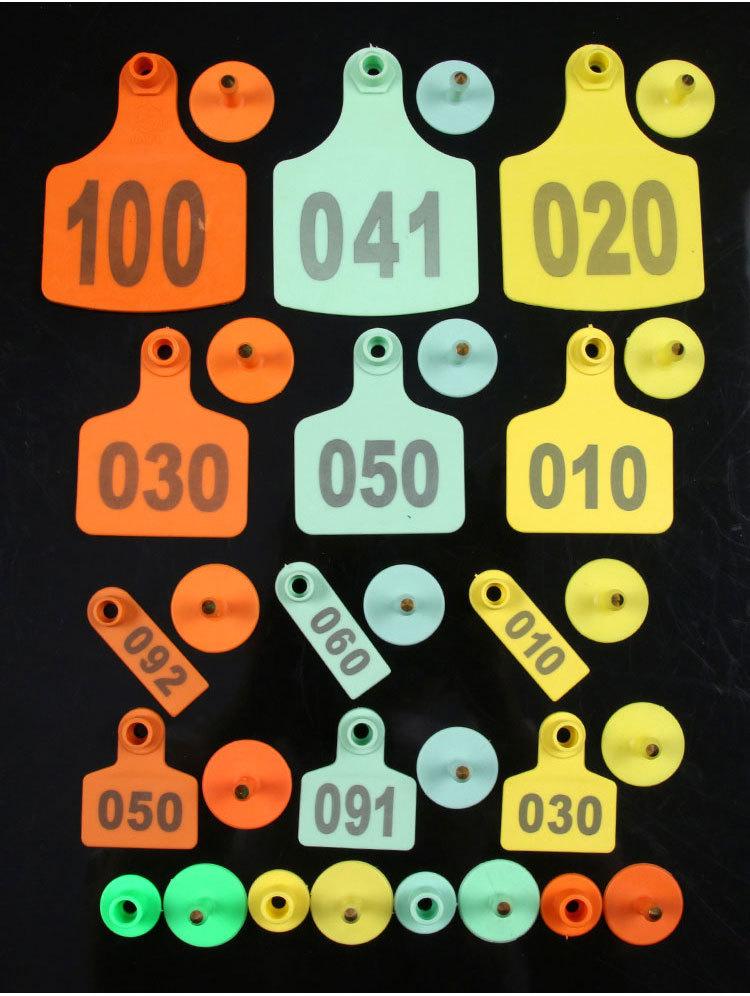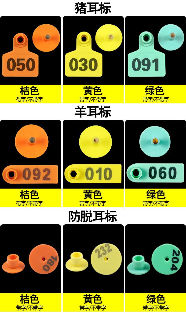 100 sets of green sheep ear tag with characters, 100 sets of yellow sheep ear tag with characters, 100 set of ...