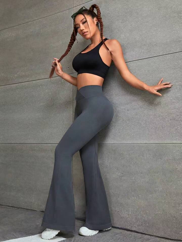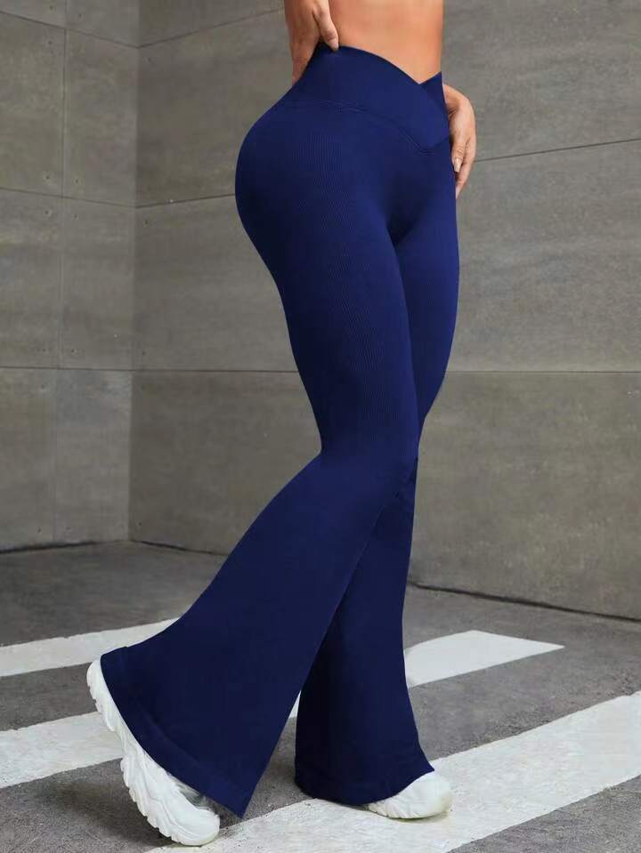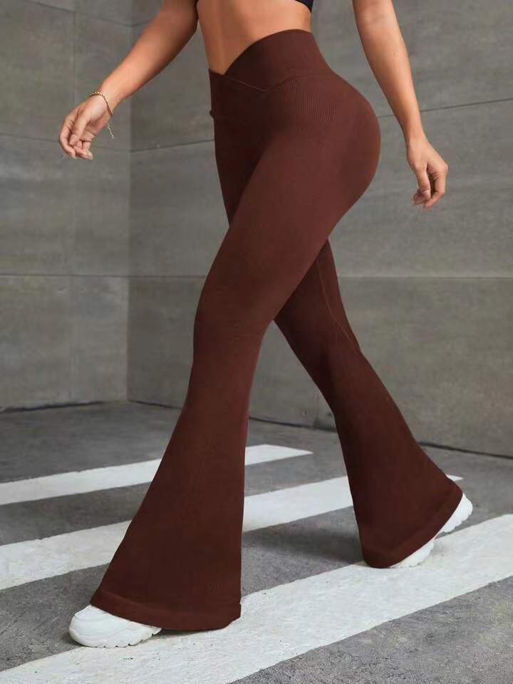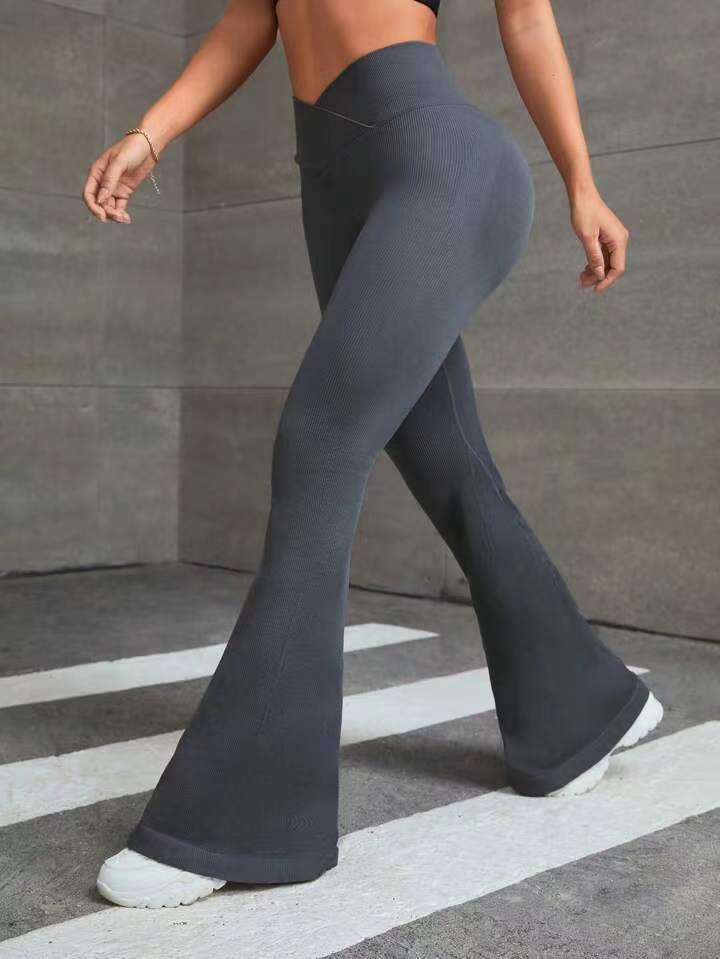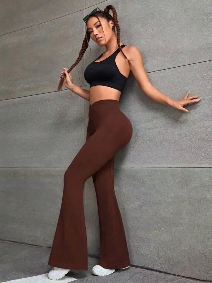 Pantalones acampanados de cintura alta con escote en V, sencillos y ajustados, populares en Europa y América, pantalones de fitness de cintura alta con diseño de melocotón para mujer, pantalones de yoga elásticos para exteriores