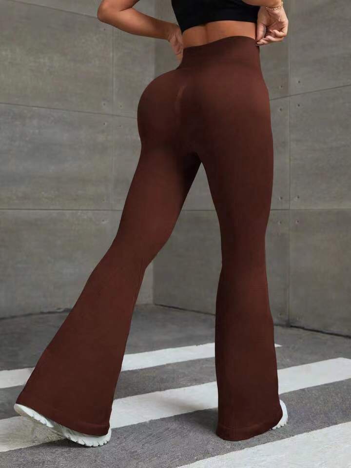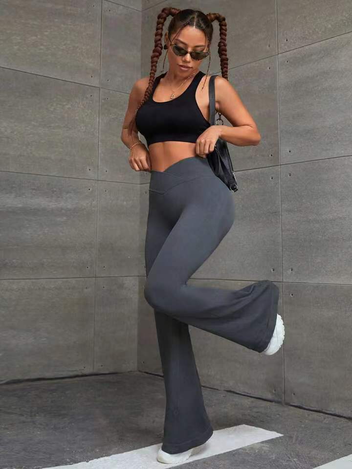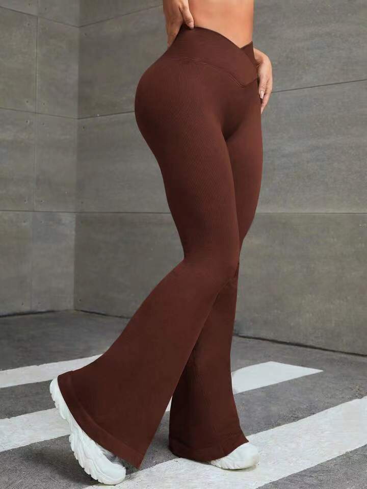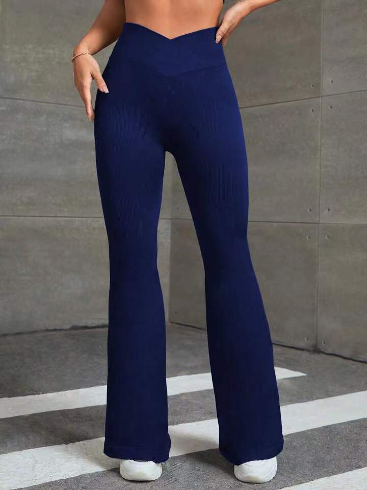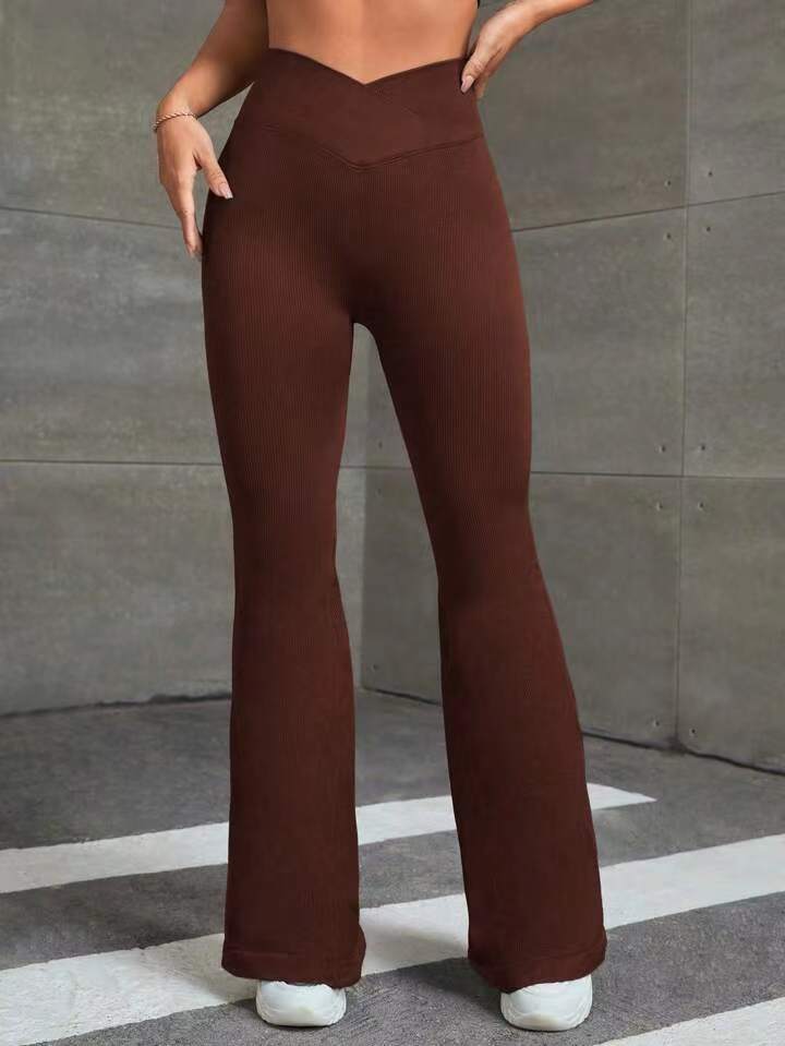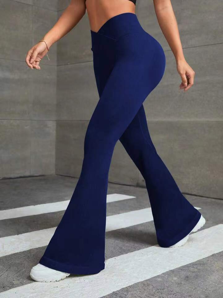 Pantalones acampanados de cintura alta con escote en V, sencillos y ajustados, populares en Europa y América, pantalones de fitness de cintura alta con diseño de melocotón para mujer, pantalones de yoga elásticos para exteriores