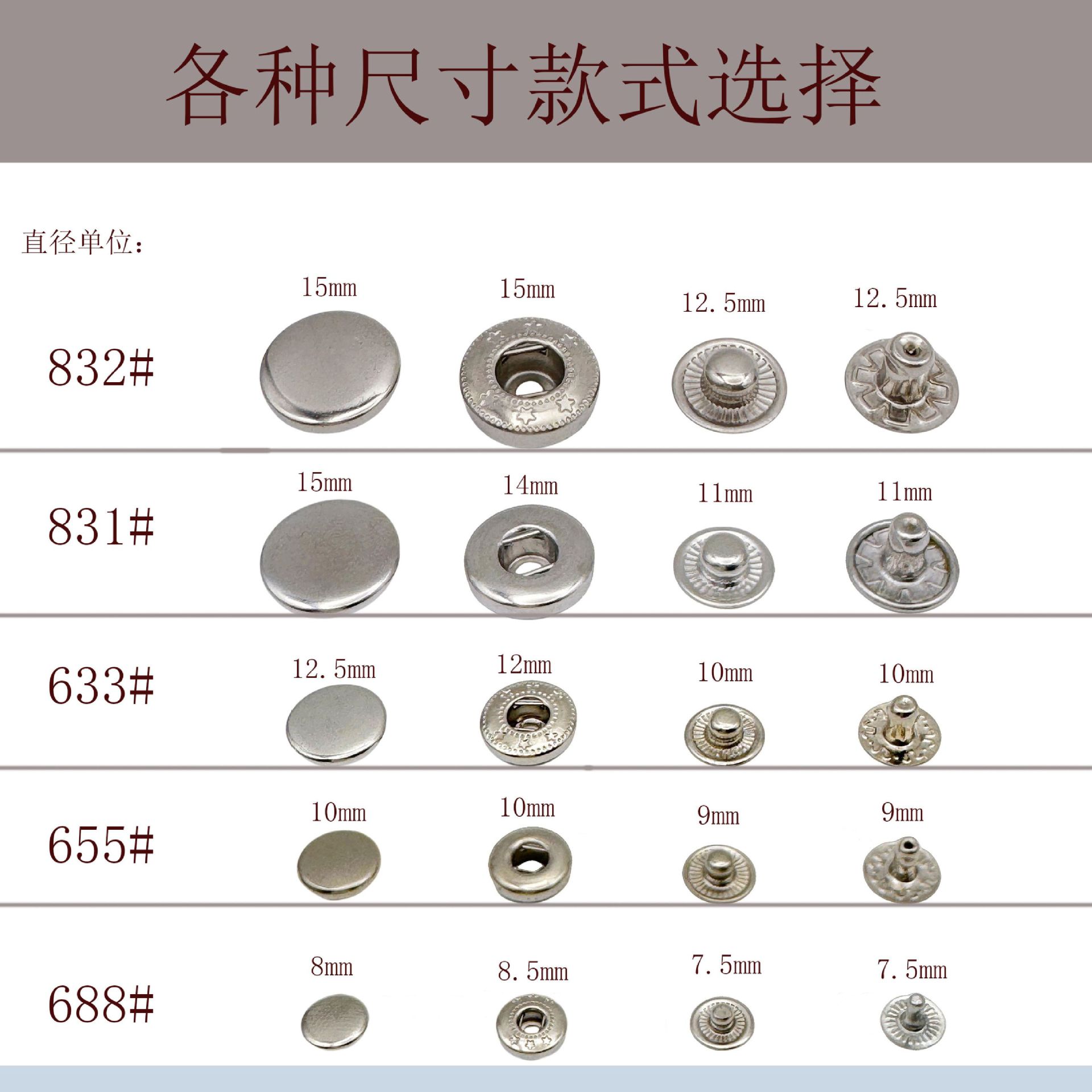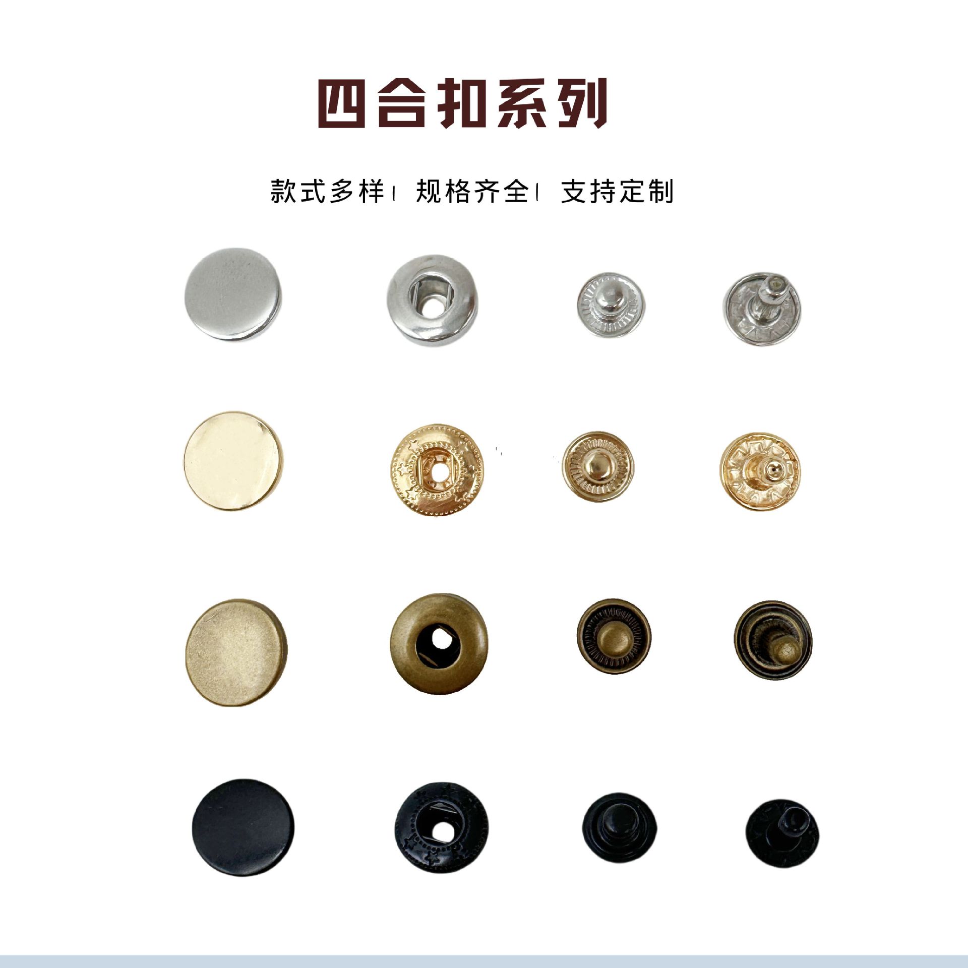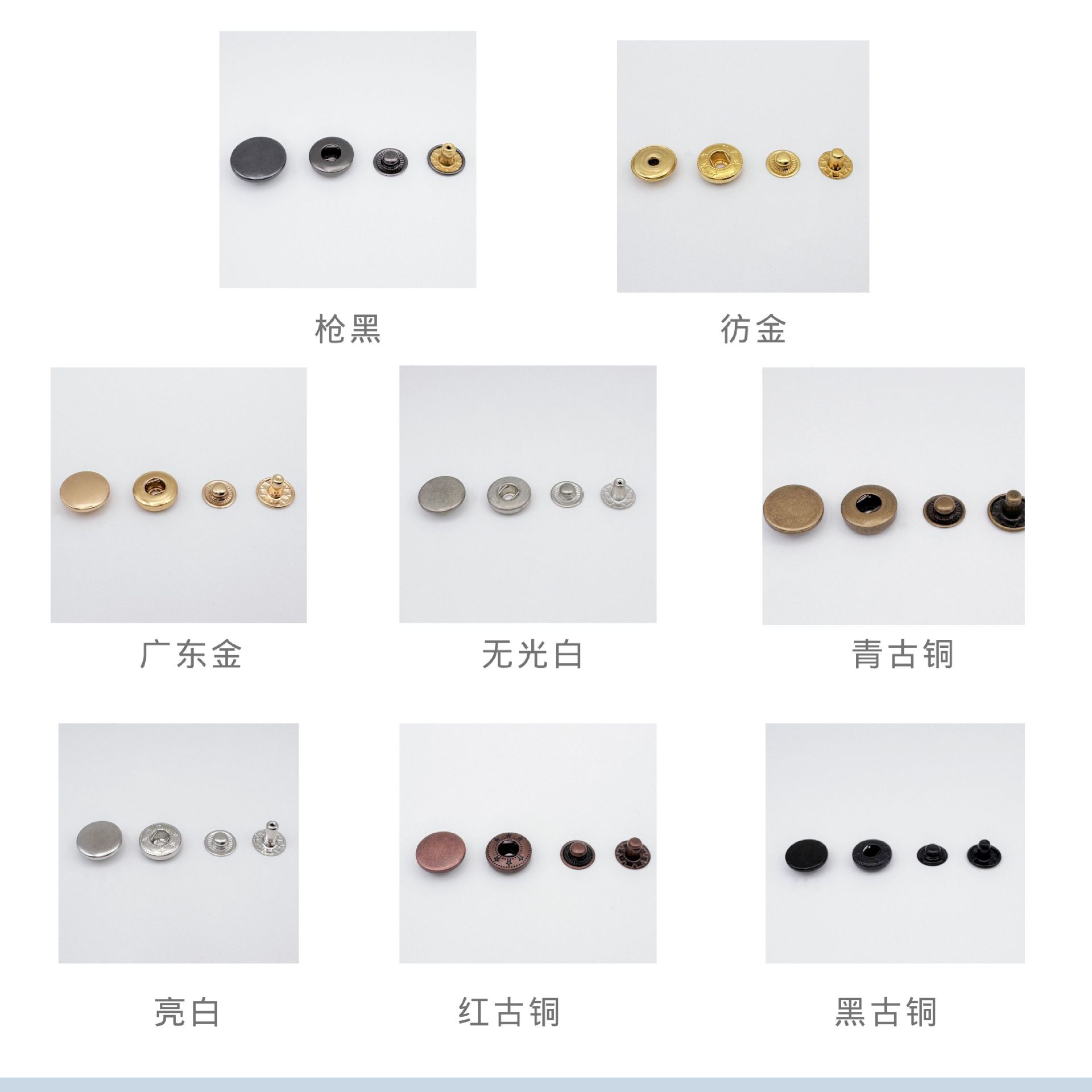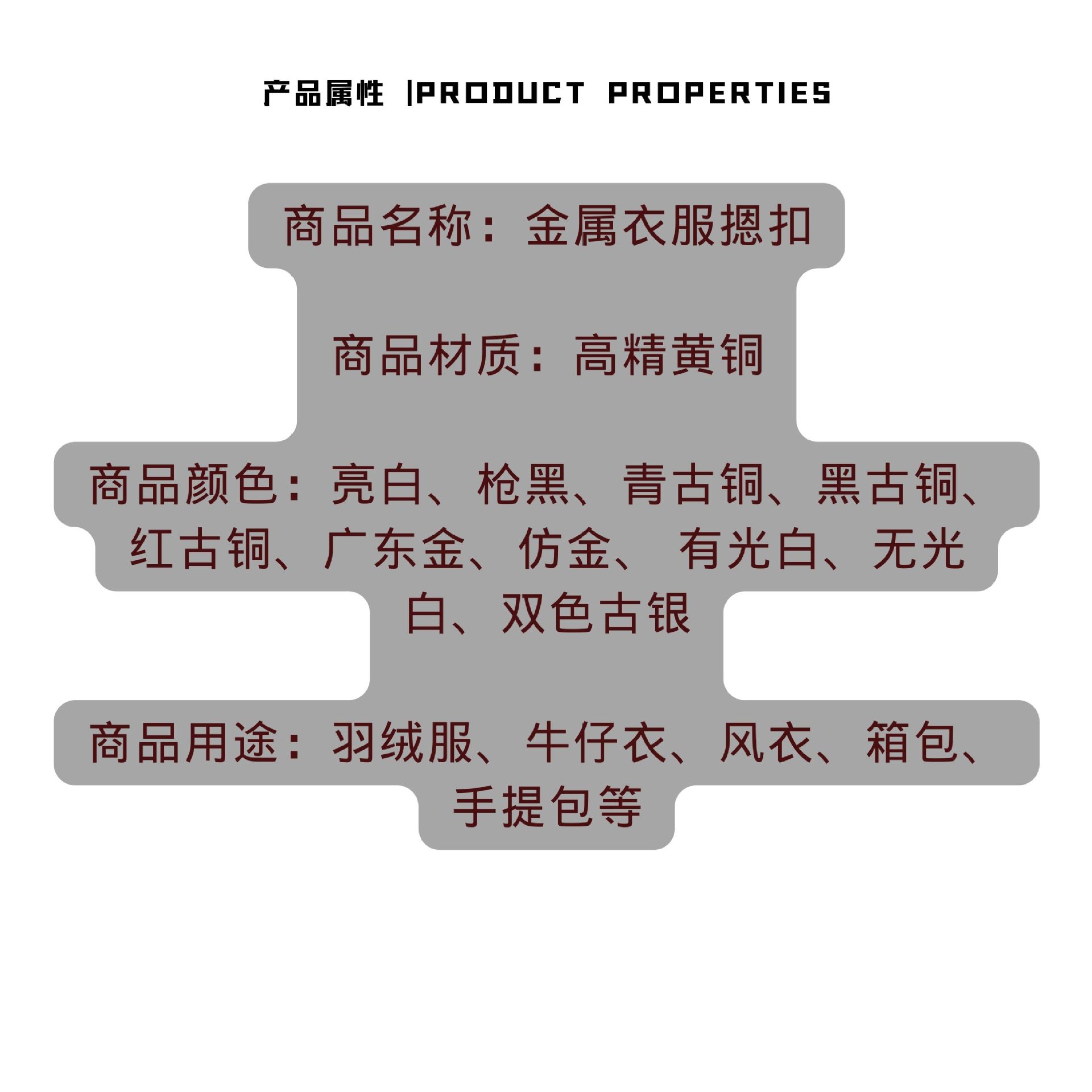 8#Copper buckle imitation gold, 8#Bright white copper buckle, 8#Copper surface button gun black, 8#Copper buck...