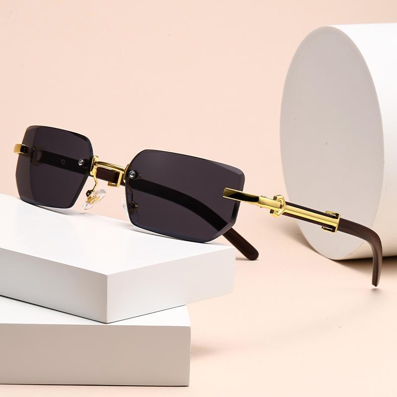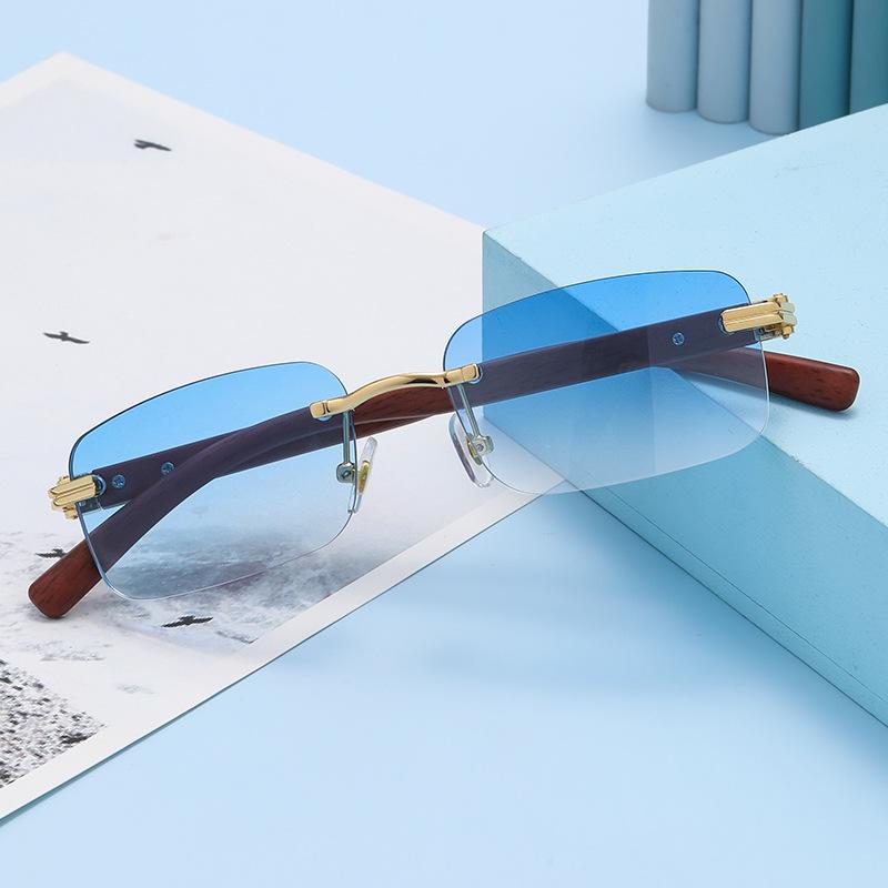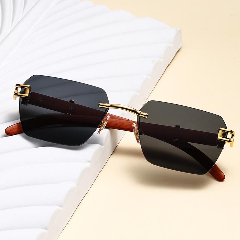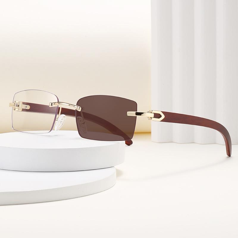 | Nuevas Gafas de Sol de Alta Gama Sin Montura Moda Protección Solar Adelgazantes para la Cara Versátiles Patillas Imitación Madera Venta Directa de Fábrica de Gafas de Sol | ¥8.8 |